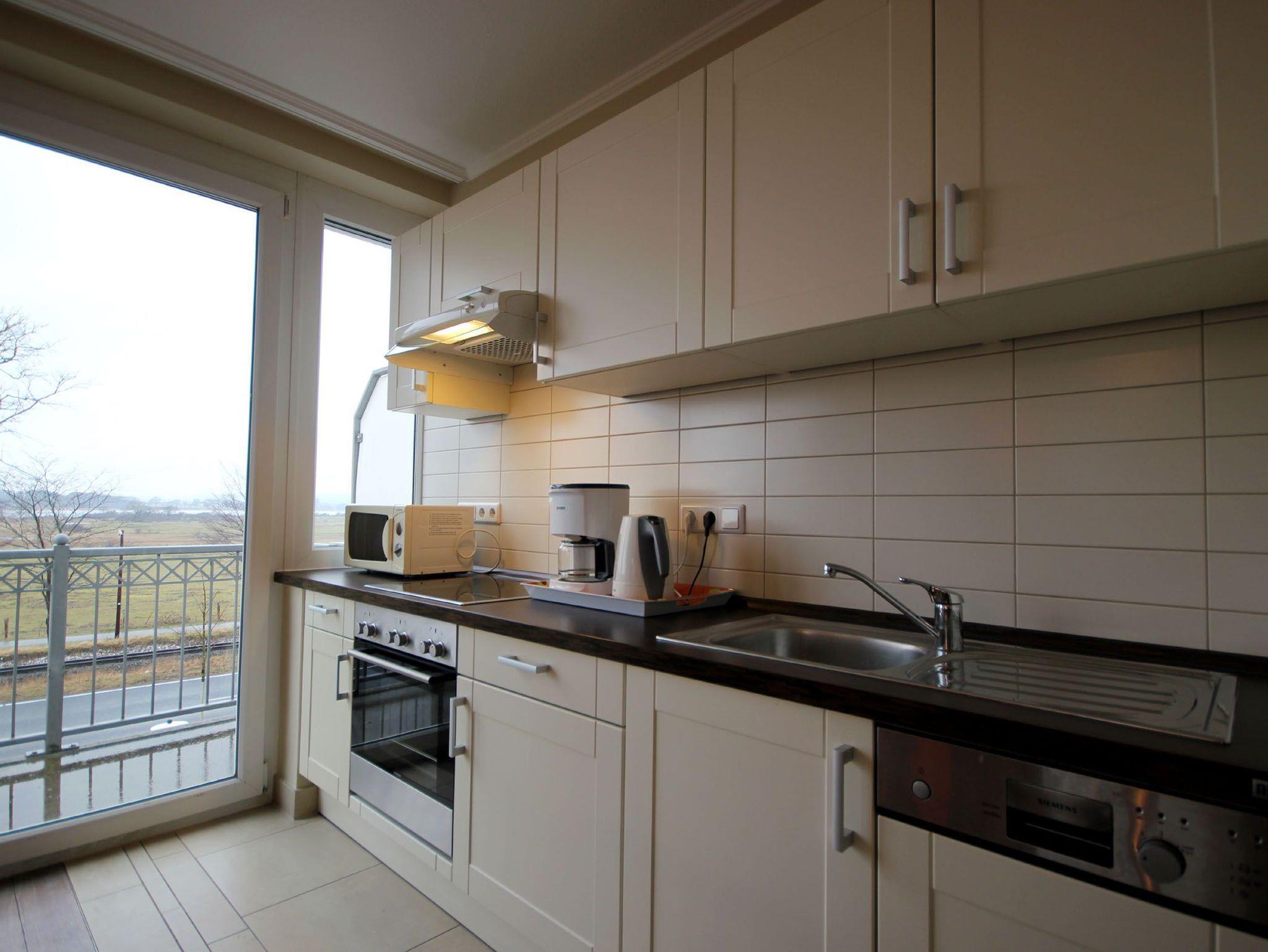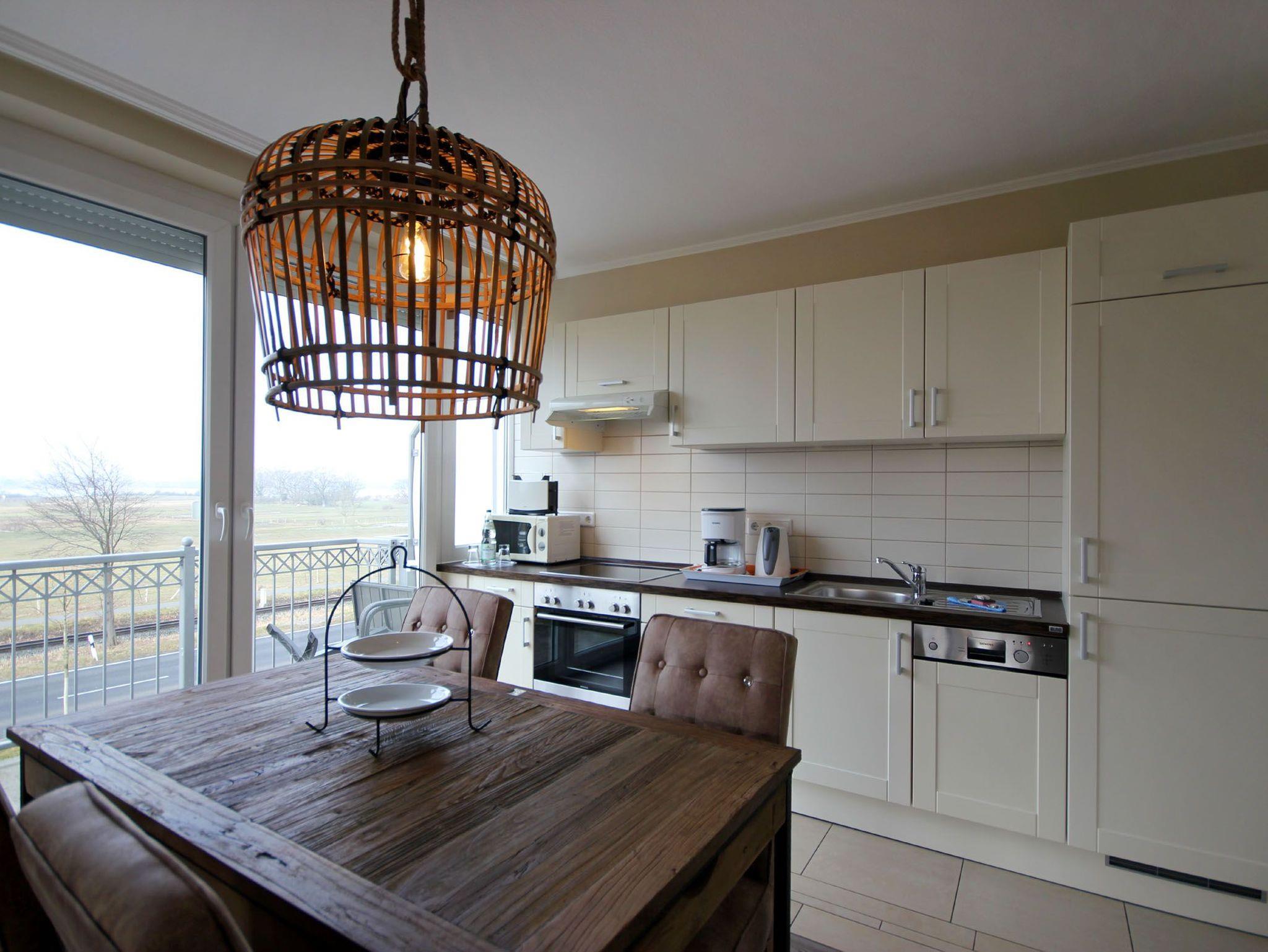 Ihre 2-Zimmer Ferienwohnung 65RB9 Stranddistel mit Balkon befindet sich im 1. Obergeschoss und ist ca. 48 qm groß sowie für bis zu 4 Personen gut geeignet. Neben dem gemütlichen Wohnbereich mit Zugang zum Balkon mit Blick auf den Selliner See, gehört eine Sitzecke mit Schlaffunktion, ein Essbereich, Flachbild TV sowie WLAN zur Nichtraucherwohnung. Im Schlafzimmer erwartet Sie ein Doppelbett sowie ein Kleiderschrank. Zudem können Sie eine voll ausgestattete und im Wohnbereich integrierte Küchenzeile mit Geschirrspüler, Backofen, Wasserkocher, Toaster, Kaffeemaschine sowie umfangreiches Küchengeschirr nutzen. Das moderne Badezimmer erwartet Sie mit Waschtisch, WC und Dusche. Einen Parkplatz sowie eine Fahrradunterstellmöglichkeit befinden sich direkt am Objekt.