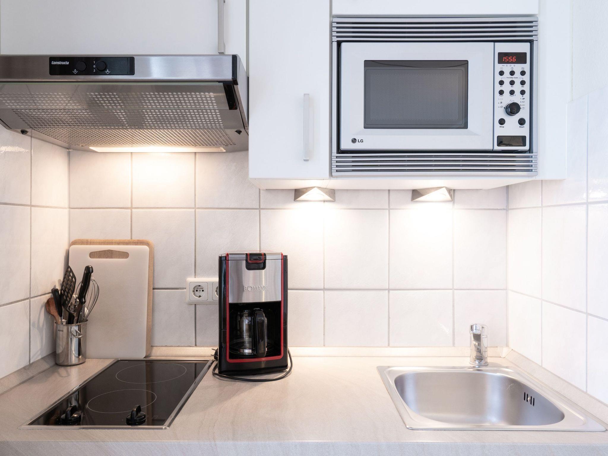 Die Ferienwohnung verfügt über kostenfreies WLAN und die Erstausstattung an Bettwäsche ist inklusive. Der kombinierte Wohn-/Schlafbereich mit Verdunklung verfügt über ein Doppelbett. Darüber hinaus verfügt die Ferienwohnung über ein Bad mit Dusche/WC und Föhn. Die voll ausgestattete Pantry mit Mikrowelle, Kaffeemaschine und Toaster lässt keine Wünsche offen. Ein Fernseher inkl. 3 Sky-Sender rundet die gute Einrichtung ab.