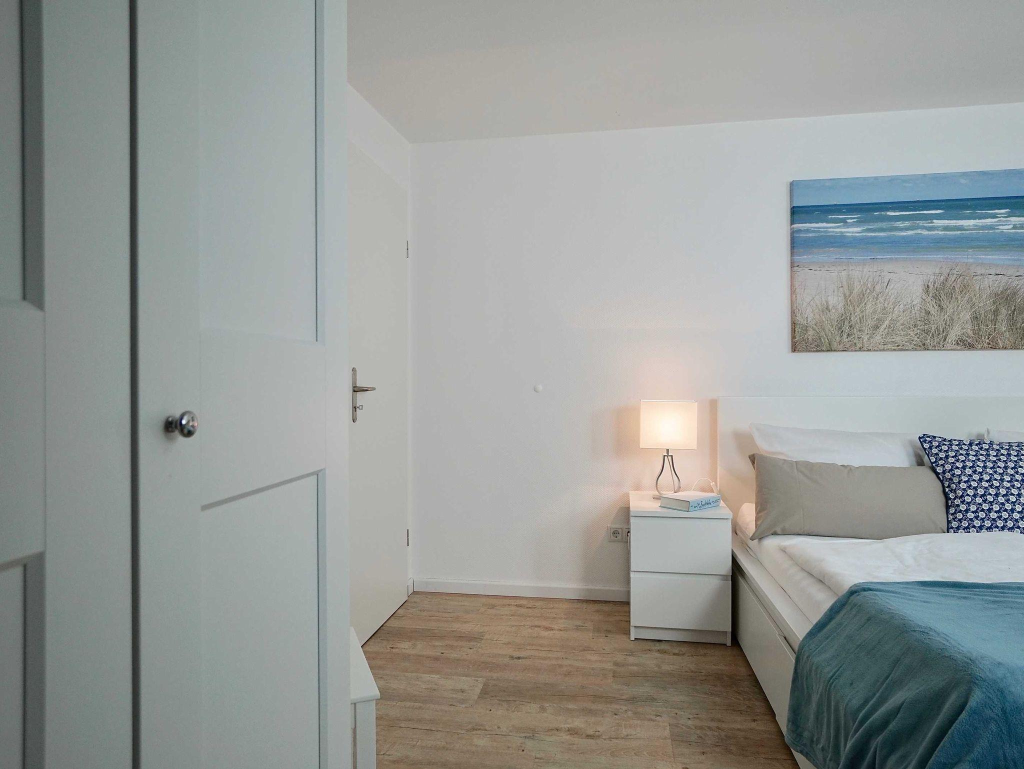 Starten Sie hier idyllisch in Ihren Urlaubstag und genießen Sie ein leckeres Frühstück direkt auf Ihrem Balkon. Die Ausrichtung der Balkone sind nach Süd bzw. Nord. Eine Treppe führt Sie direkt in den Küchenbereich, in dem die große Küchenzeile über alles verfügt, was das Herz zum Kochen begehrt. Nutzen Sie den Backofen sowie das moderne 4-Platten-Cerankochfeld und lassen Sie doch den Geschirrspüler das Abwaschen übernehmen. Am großzügigen Esstisch finden alle Gäste dieser Wohnung bequem Platz. Von hier aus erreichen Sie auch die beiden separaten Schlafzimmer, die jeweils mit einem bequemen Doppelbett und einem großen Kleiderschrank ausgestattet sind. Ebenso grenzt hier das Tageslicht durchflutete, moderne Bad mit 2 Waschbecken, WC und ebenerdiger Dusche an.