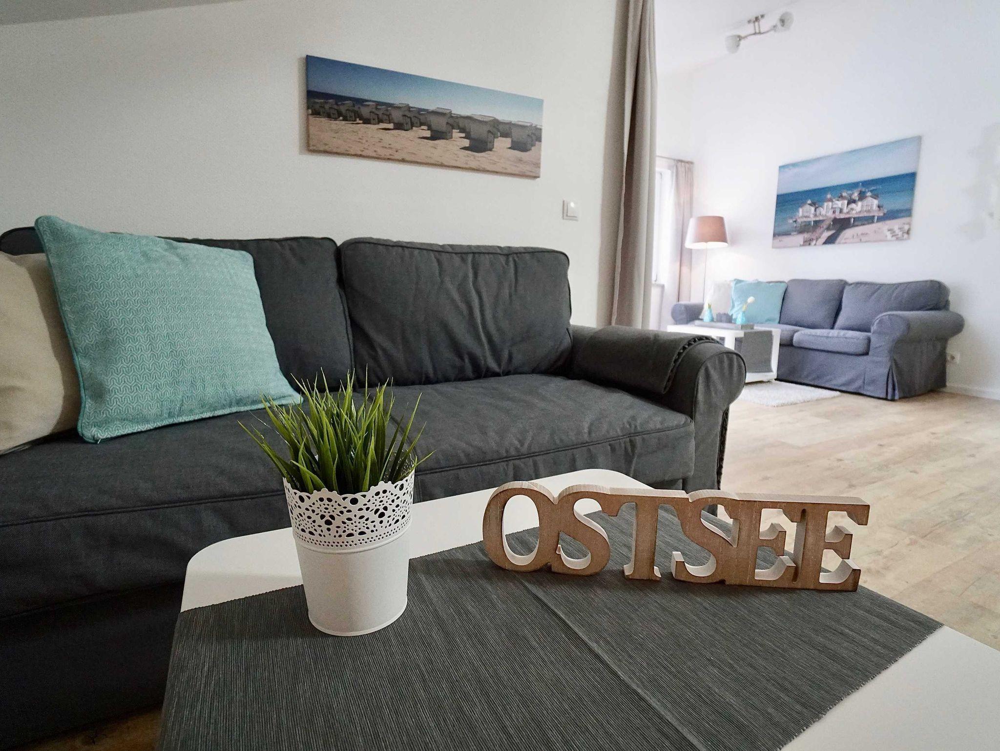 Dieses große Ferienappartement bietet Ihnen mit seinen 85- 90 m² sehr bequem Platz für bis zu sechs Personen. Das Appartement Wittow liegt im Dachgeschoss und erstreckt sich über zwei Ebenen. Somit haben 6 Urlaubsgäste sehr großzügig Platz zur Erholung. Das Haus verfügt über keinen Aufzug. Der WLAN-Zugang und ein SodaStream steht Ihnen kostenfrei zur Verfügung. Auf der unteren Ebene finden Sie einen großzügigen Wohnbereich, der über ein Schlafsofa verfügt, auf dem je 1-2 Personen einen Schlafplatz finden können oder einfach vor dem Flachbild-Fernseher entspannen können. Direkt von hier haben Sie einen Zugang zum schönen gemütlichen Balkon, der zu dieser Wohnung gehört.