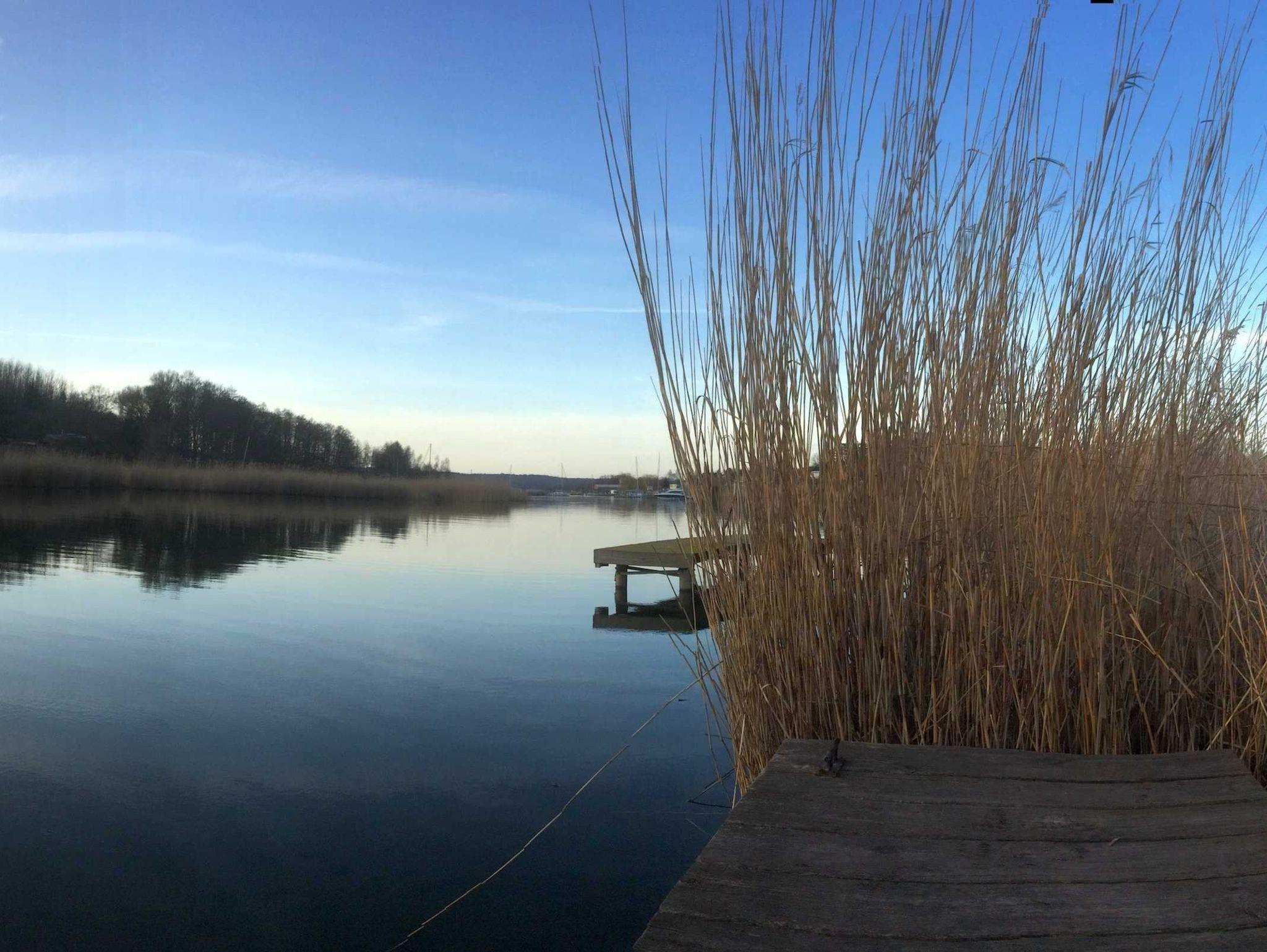 Am Ende des Ortes, 800 m vom Jachthafen entfernt, befindet sich das Ferienhaus „Kapitänsblick mit zwei Ferienwohnungen direkt am Reetgürtel mit eigenem Bootssteg.