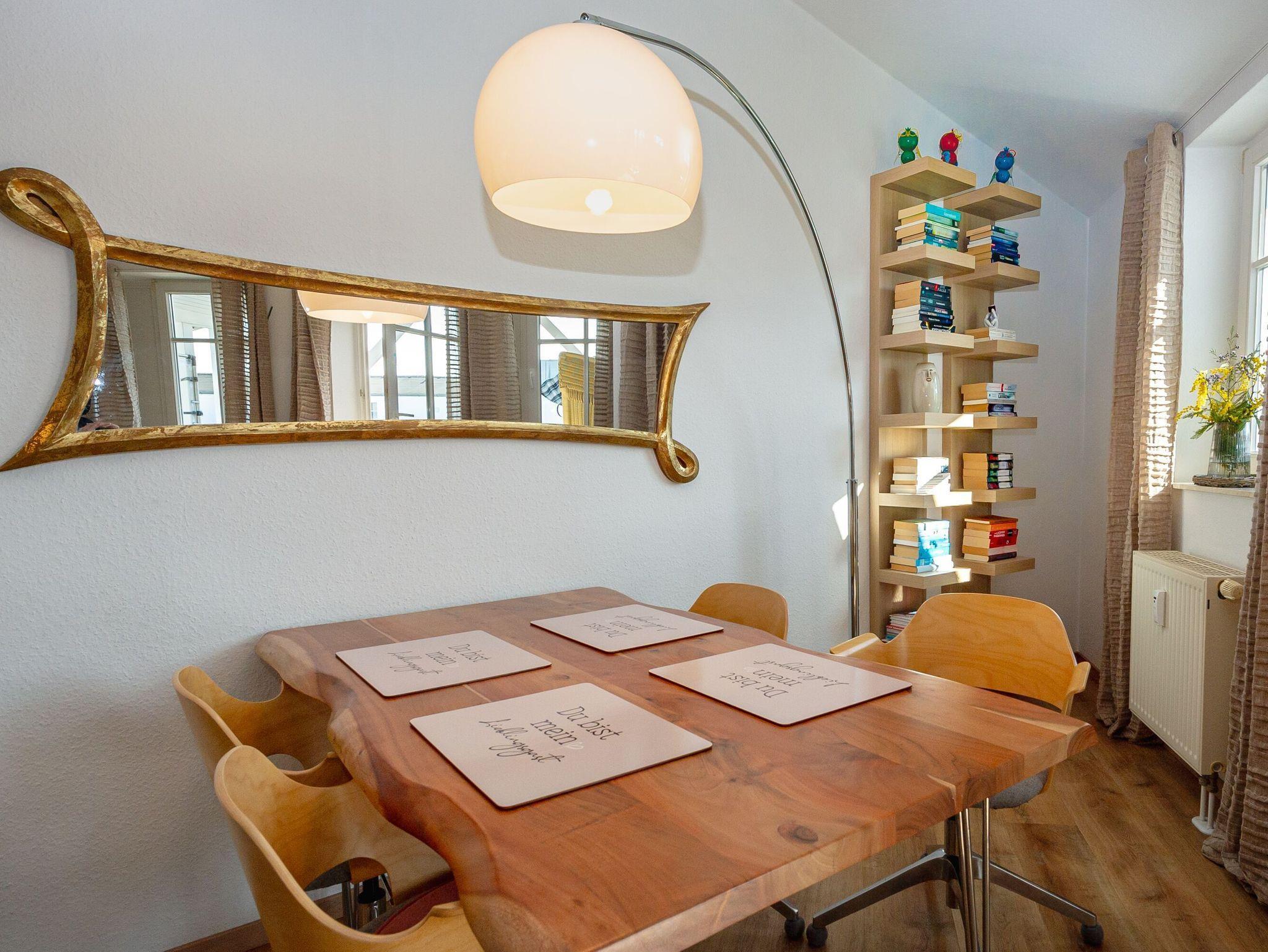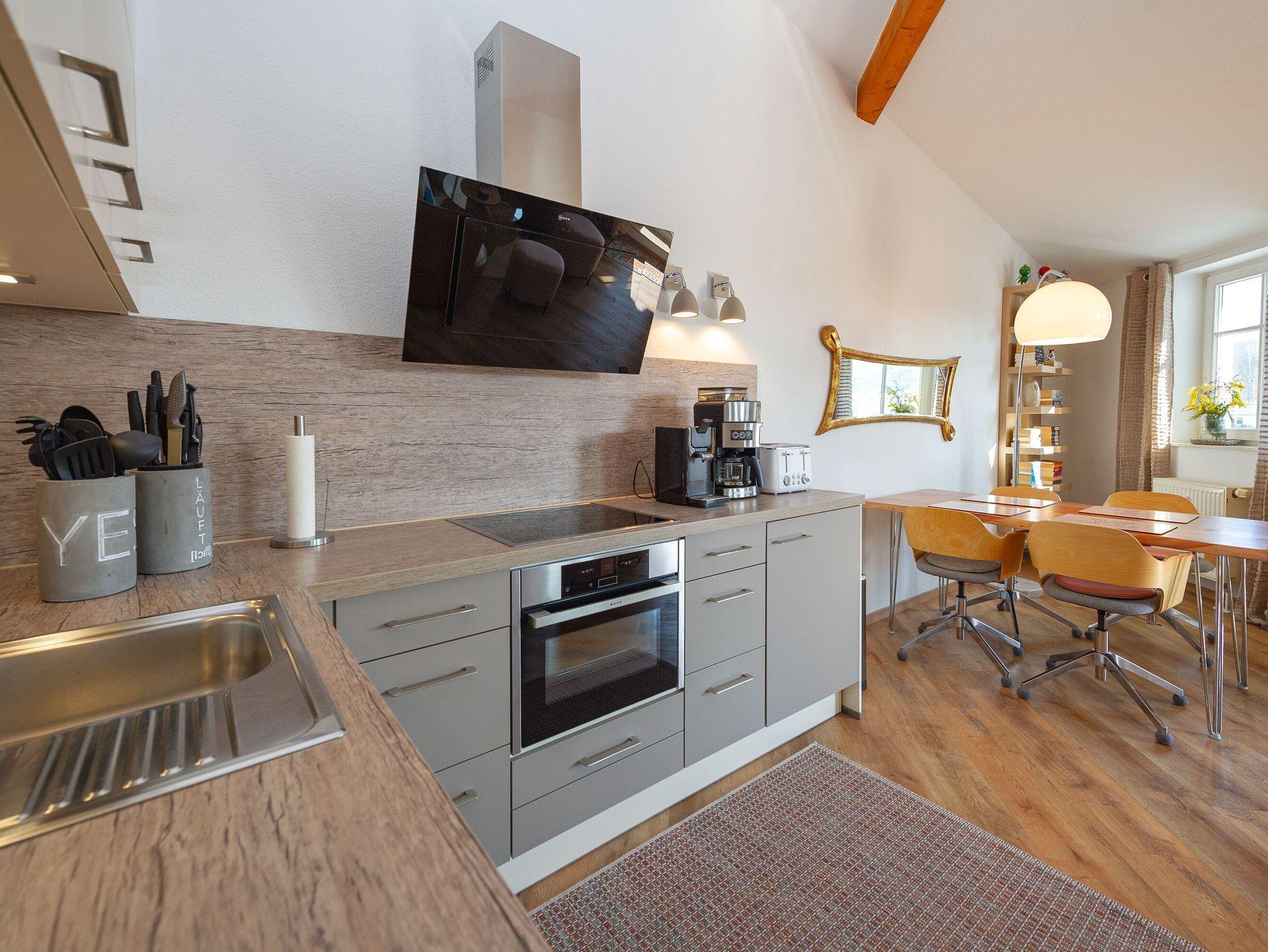 Erleben Sie Ihren Urlaub in einer charmanten Ferienwohnung im obersten 3.Stockwerk, die durch ihre außergewöhnliche Atmosphäre besticht. Das lichtdurchflutete Wohnzimmer mit offener Küche und hohen Wänden wird von stilvollen Dachschrägen eingerahmt, die ein behagliches und gleichzeitig großzügiges Wohngefühl schaffen.