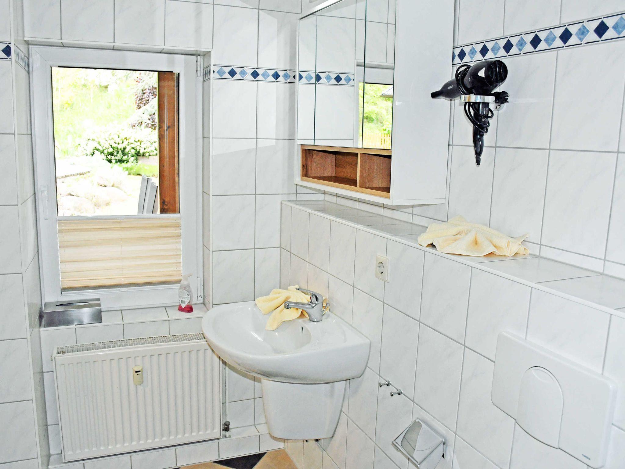 Das Bad ist mit Dusche, WC und Waschtisch ausgestattet und verfügt über Tagelslicht.