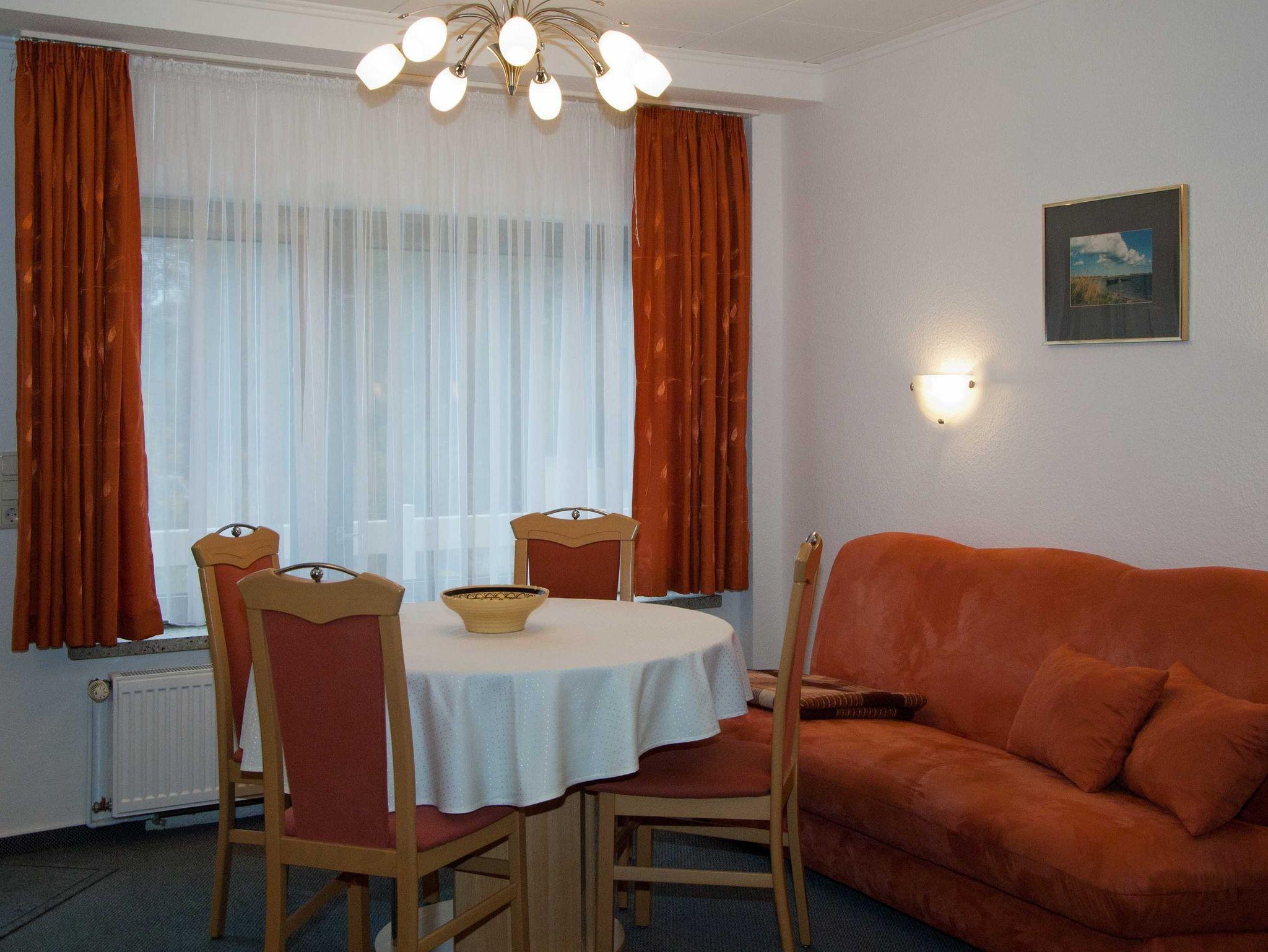 Die modern eingerichtete 65 m² große Nichtraucher-Ferienwohnung befindet sich im Parterre eines Wohnhauses. Sie verfügt über einen Wohn/Schlafraum mit einer Sitzgarnitur und einem Doppelbett sowie über SAT-TV und Radio. Durch den ersten Schlafraum (Durchgangzimmer) gelangen Sie in das zweite Zimmer, dann weiter in das Bad mit Dusche und WC. Eine Mini-Küche mit 2-Platten-Ceranfeld ist nebenan.