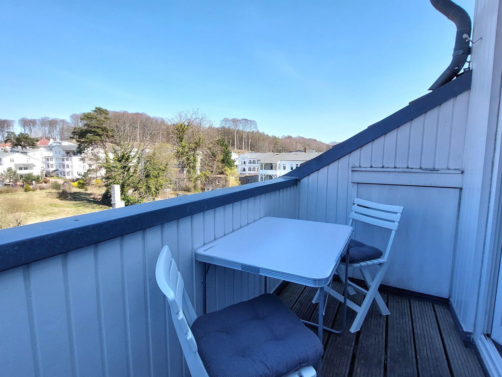 Ihre freundliche 1-Raum Ferienwohnung 61RB24 befindet sich in der 3. Etage. Sie hat eine Größe von ca. 30 qm und ist für max. 2 Personen eingerichtet. Die Wohnung verfügt über einen kombinierten Wohn- und Schlafraum, eine Küchenzeile und ein Badezimmer. Ein Doppelbett, 1,40 m breit, steht unseren Gästen zur Verfügung, sowie ein gemütlicher separater Essplatz. Ebenso kann ein schöner Nordostbalkon mit Blick über Sellin genutzt werden. Zum Badezimmer gehört eine komfortable Dusche, Waschtisch und WC. Im Wohnbereich finden Sie ein CD-Radio, TV mit Videofunktion, ein gratis WLAN-Netz, einen Kleiderschrank und eine kleine Garderobe im Flur. Zur Küchenzeile gehört unter anderem ein 4-Platten Herd, Backofen, Toaster, Wasserkocher, Kaffeemaschine sowie das benötigte Inventar. Ein wohnungseigener PKW-Parkplatz steht Ihnen in der Tiefgarage, 1,89 m Höhe, kostenfrei zur Verfügung.