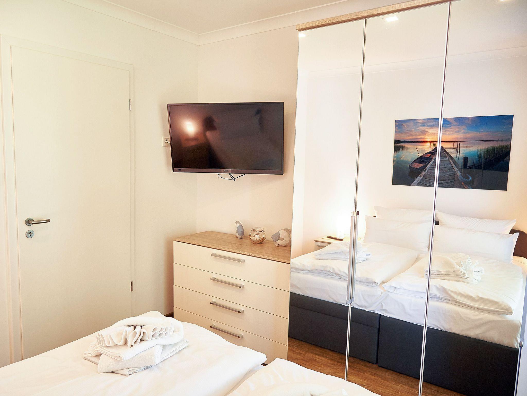 Das Doppelbett im zweiten Schlafzimmer kann wahlweise auch in zwei Einzelliegen aufgeteilt werden.