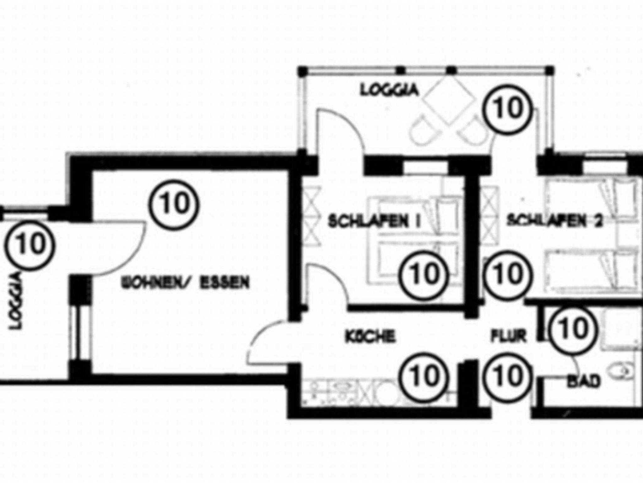 Die schöne Drei-Zimmer Ferienwohnung Nr. 10 mit einer Größe von 61 m² für bis zu 6 Personen liegt im 2. Obergeschoss und hat die folgende Einrichtung / Ausstattung: