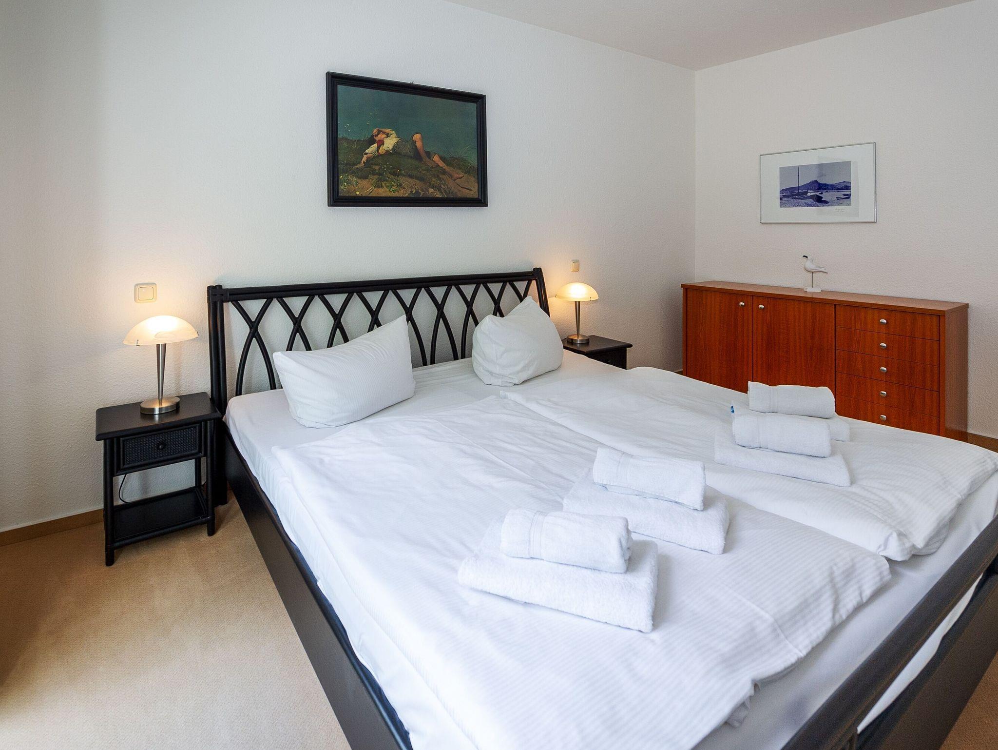 Ihre Unterkunft hat darüber hinaus zwei separate Schlafzimmer mit jeweils einem Doppelbett und ein Badezimmer mit Dusche/WC, Waschbecken, Spiegel, Kosmetikspiegel und Fön.