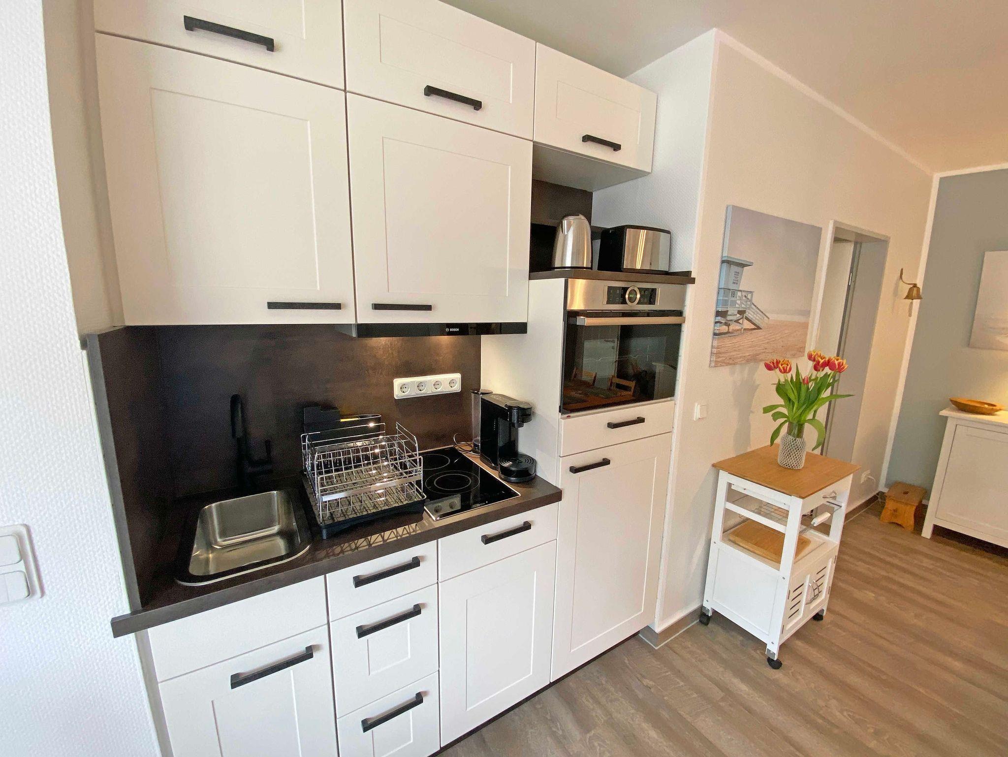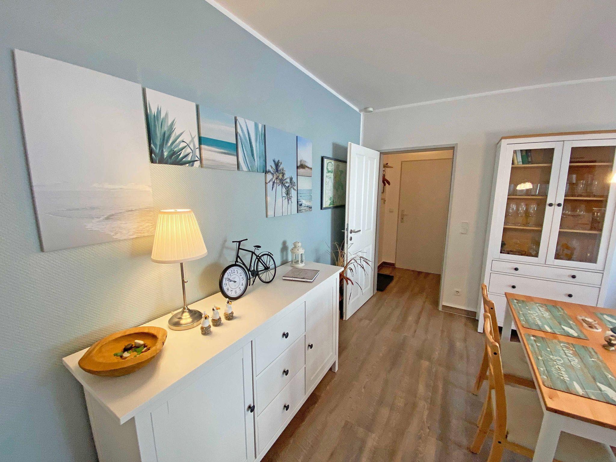 Die modern gestaltete 2-Raumferienwohnung 07 (Nichtraucher) im 1. Obergeschoss des ?Haus Holstein? hält für Sie alles bereit, was Sie für einen erholsamen Urlaub brauchen. Die Wohnung umfasst ca. 48 m² und verfügt für max. 2 Personen über einen komfortablen Wohnbereich mit einer Couch, 2 Relax Sesseln, kostenfreies WLAN, eine Radio/CD-Anlage mit USB-Anschluss sowie einen Smart-TV. Die ebenfalls hier gelegene kleine Einbauküche lässt keine Wünsche offen. Sie können mit einem Backofen, einem Geschirrspüler, einem 2 Zonen-Cerankochfeld mit Dunstabzugshaube und einem Kühlschrank mit einem Gefrierfach alles so zubereiten, wie Sie es von zu Hause kennen. Natürlich finden Sie hier auch eine Mikrowelle, den Wasserkocher, Toaster, Senseo Padmaschine und die Kaffeemaschine für einen guten Start in Ihren Urlaubstag. Angrenzend komplettiert ein Essbereich diesen Raum. Im Schlafzimmer stehen für Sie ein Boxspringbett (1,60m x 2,00m) und zwei Nachtschränke sowie eine Verdunklungsmöglichkeit. Außerdem verstauen Sie hier Ihre Kleidung im Kleiderschrank und einer Kommode. Vom Schlafzimmer gelangen Sie, wie auch vom Wohnbereich, auf Ihren bestuhlten Balkon (Westen) wo Sie bei abendlicher Sonne den Ausklang eines wunderschönen Urlaubstages genießen können. Das innenliegende Bad ist mit einem WC, einer Dusche sowie einem Waschtisch ausgestattet. Hier finden Sie neben einem Spiegelschrank auch einen Fön. Zur Wohnung gehört ein kostenfreier PKW-Stellplatz Nr.07, der sich am Haus befindet. Im Keller des Gebäudes stehen für Sie eine Waschmaschine und ein Trockner gegen Gebühr zur Verfügung. Auch für Ihre Fahrräder finden Sie geschützte Abstellmöglichkeiten. Haustiere sind nicht erlaubt. Die Erstausstattung eines Wäschepaketes (komplette Bettwäsche, 1 Duschhandtuch, 1 kleines Handtuch) können Sie bis 14 Tage vor der Anreise gegen einen Aufpreis dazu buchen oder durch eigene ergänzen. Ab 2 gebuchten Paketen erhalten Sie einmalig 1 Geschirrtuch und einen Duschvorleger dazu.