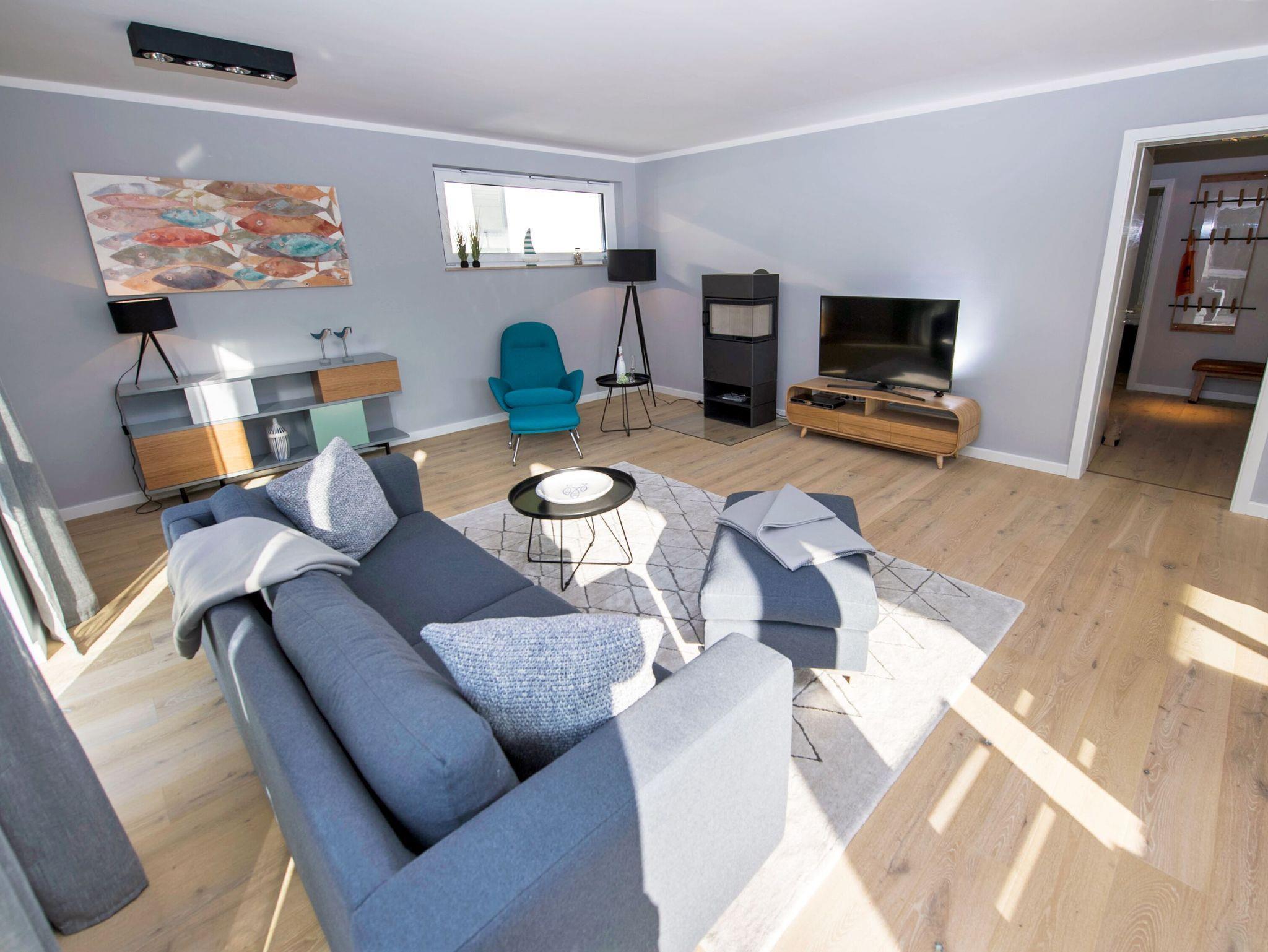 Fühlen Sie sich wohl in den zwei separaten Schlafzimmern mit ihren komfortablen Boxspringbetten und starten Sie Ihr individuelles Verwöhnprogramm in dem modernen maritimen Wannen-/Duschbad. Wenn es draußen langsam kühler wird, sorgen die Fußbodenheizung und der Kamin im Wohnbereich für eine wohlige Atmosphäre und warme Füße.