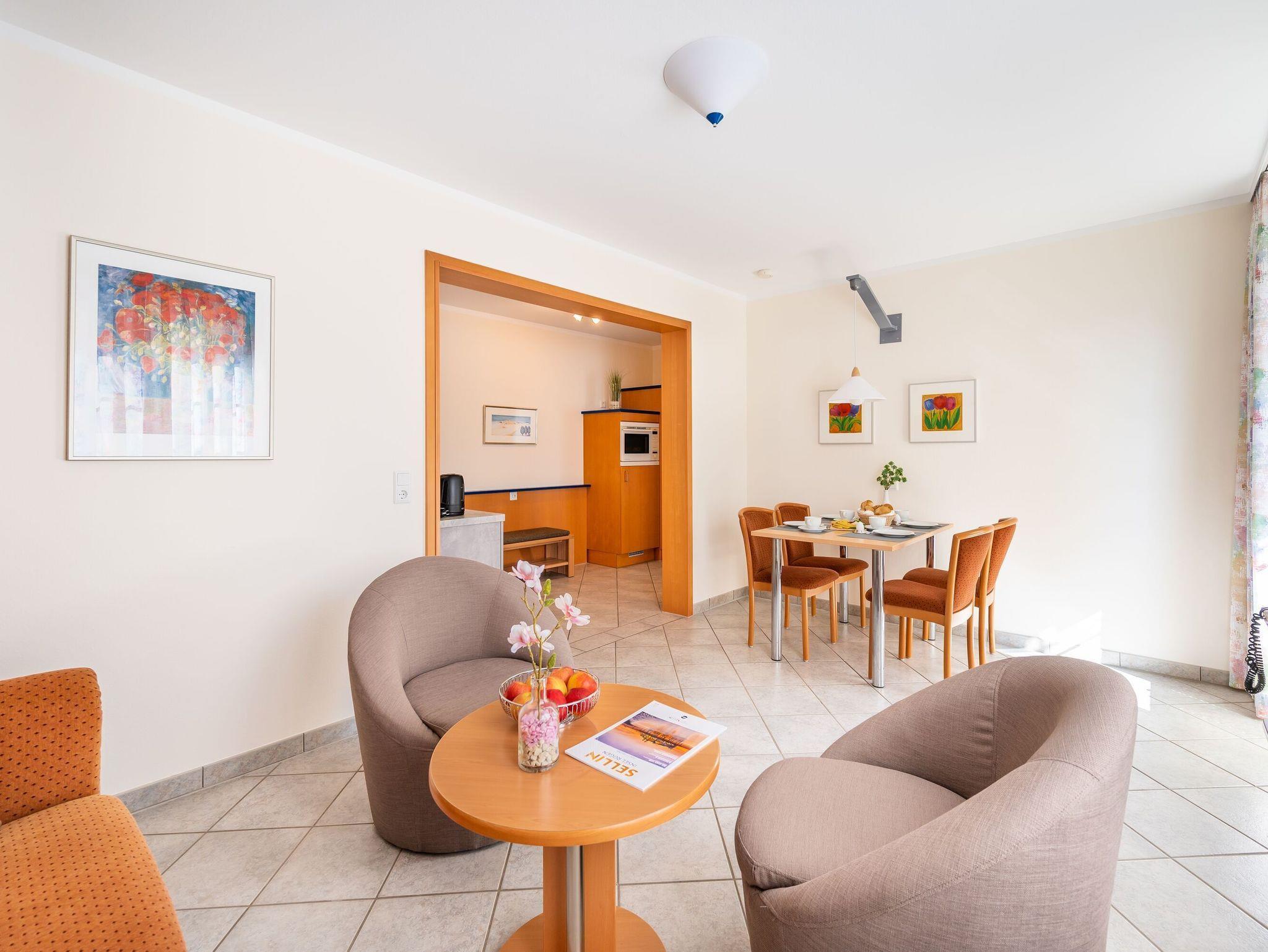 Die freundlich eingerichtete Wohnung 1 in der Ferienanlage Margaretha ist ca. 44m² groß und für bis zu 4 Personen ausgelegt.