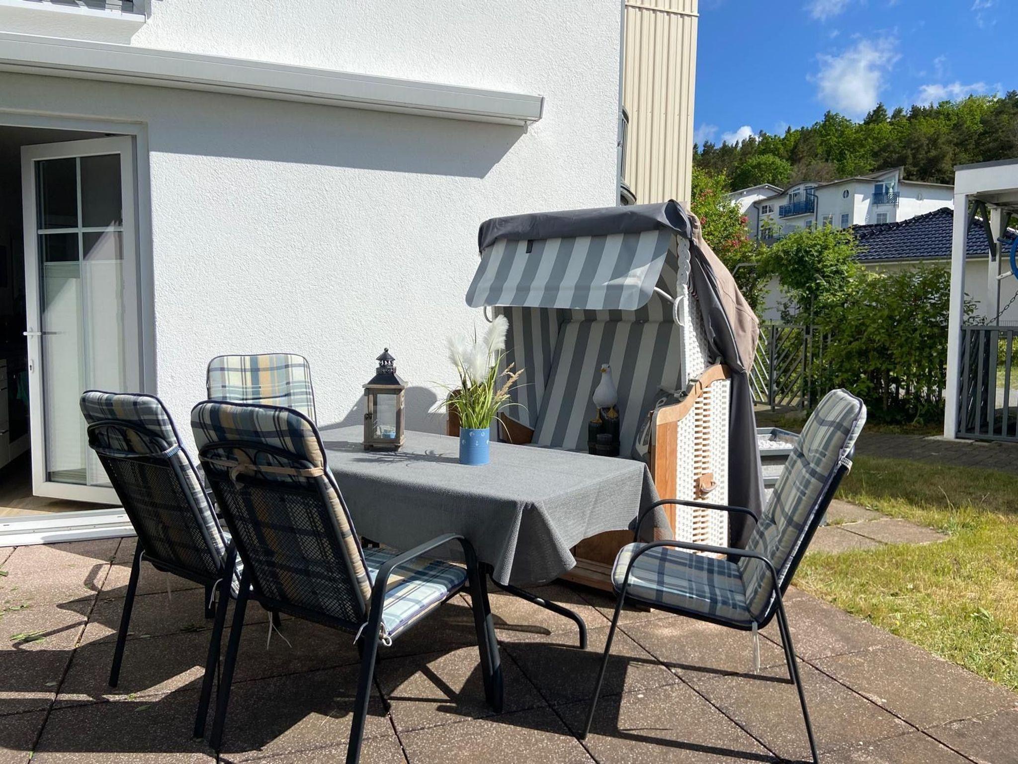 • möblierte Terrasse mit Blick auf den Selliner See