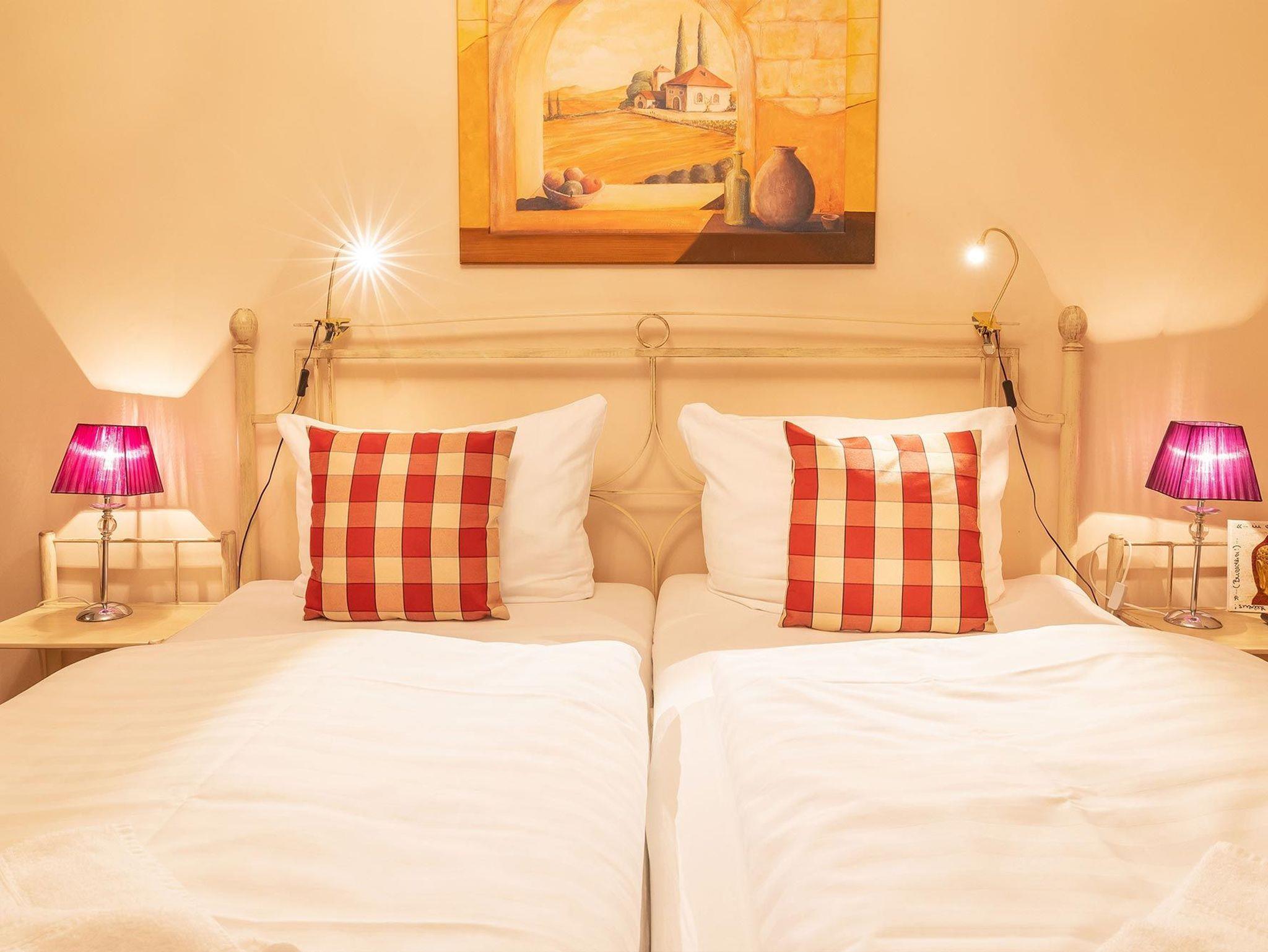 Als Ruckzugsort erwartet Sie in den beiden Schlafzimmern jeweils ein stilvolles Metallbett (180x200 cm) und ein großer geräumiger Kleiderschrank. Die Ferienwohnung verfügt über ein modernes Duschbad.