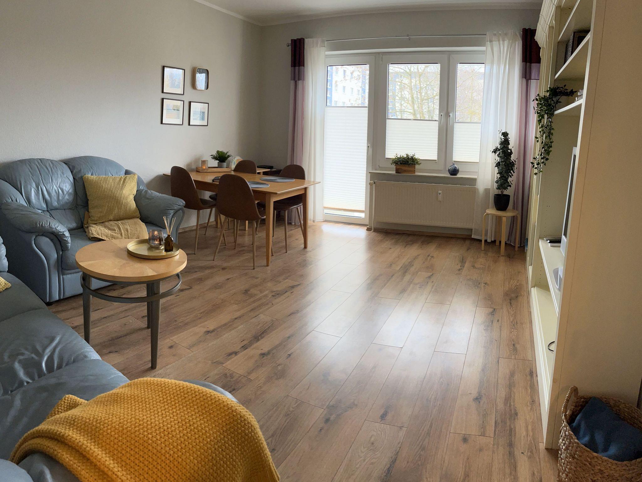 Die Wohnung ist modern eingerichtet, komplett mit Laminat verlegt sowie mit Plissee ausgestattet.