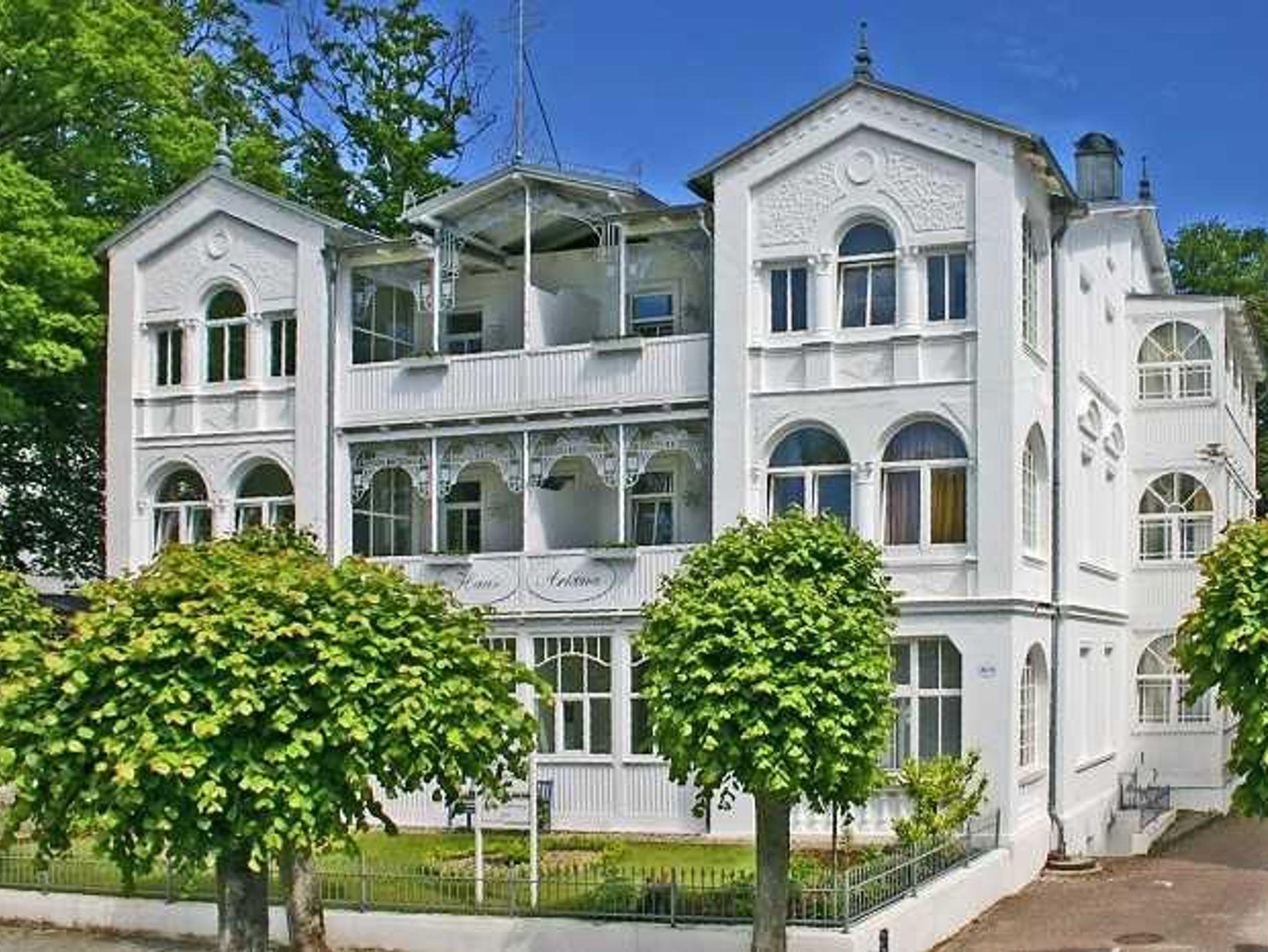 Unser Appartementhaus ist eine im Stil der Bäderarchitektur sanierte, wunderschöne alte Villa. Sie befindet sich ruhig gelegen an der Hauptpromenade des Ostseebads Sellin, der historischen, zur Seebrücke und zum feinsandigen Badestrand führenden Wilhelmstraße. Wir bieten mit vier verschiedenen Appartementgrößen gemütliche Ferienunterkünfte. Unsere Gäste können einen WLAN-Internetanschluss im ganzen Haus kostenlos nutzen. Pkw-Stellplätze befinden sich direkt am Haus.