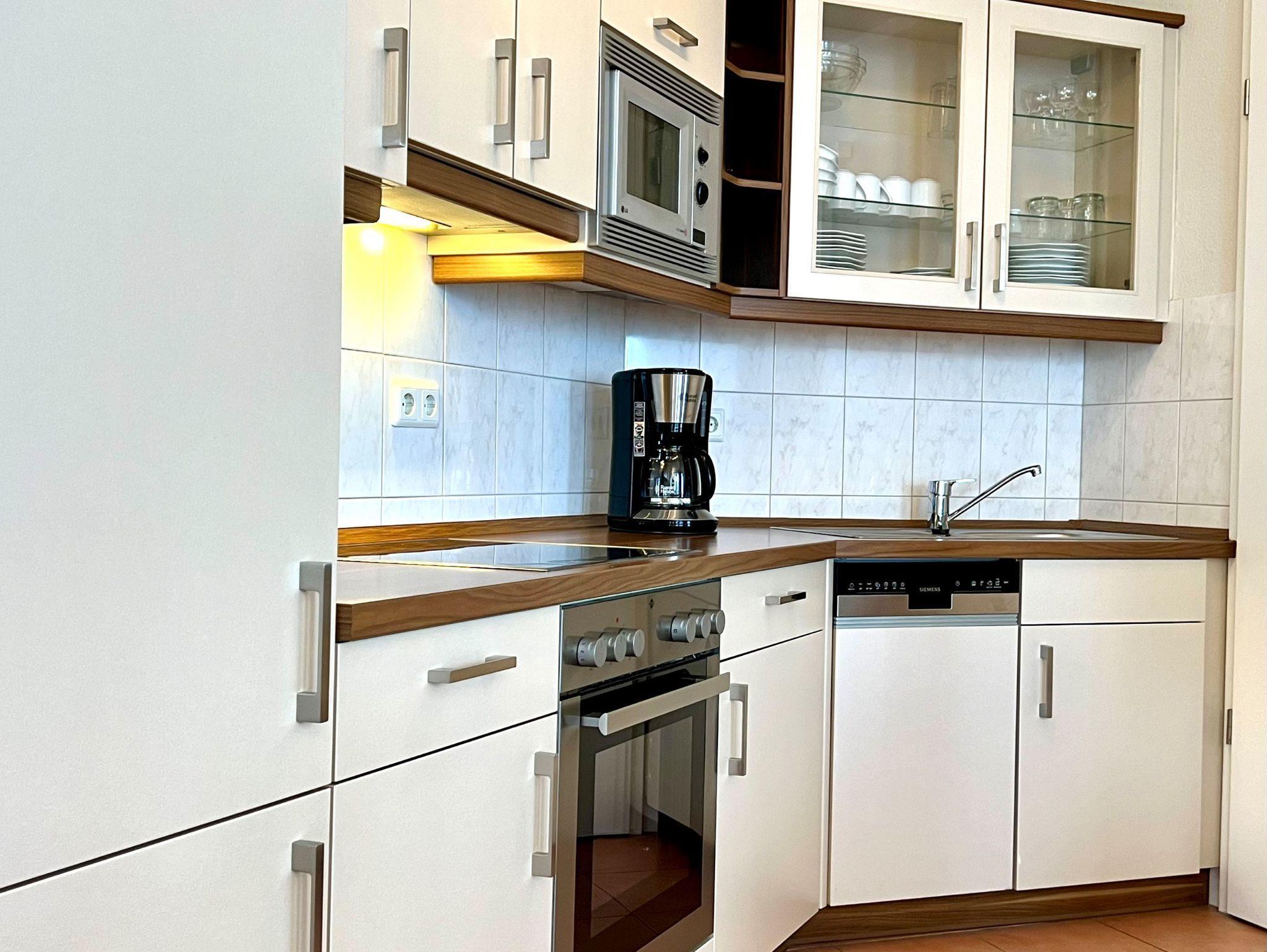Die Ferienwohnung verfügt über kostenfreies WLAN und die Erstausstattung an Bettwäsche ist ebenfalls inklusive. Das Schlafzimmer ist mit einem Doppelbett ausgestattet und verfügt über Verdunklungsmöglichkeiten. Im Wohnzimmer befindet sich zudem eine Doppelschlafcouch. Ein Bad mit Dusche und ein separates WC stehen den Gästen zur Verfügung. Die offene Küche ist voll ausgestattet mit Backofen, Mikrowelle, Geschirrspüler, Kaffeemaschine und Toaster. Ein Fernseher mit 3 Sky-Sendern rundet die Ausstattung ab.