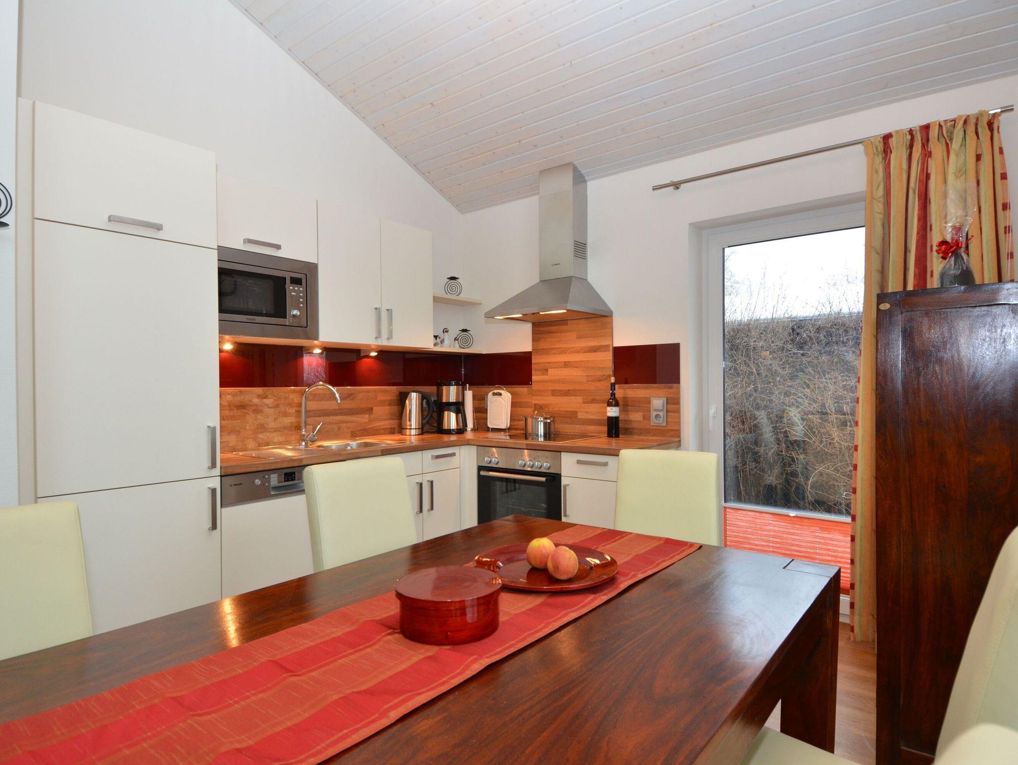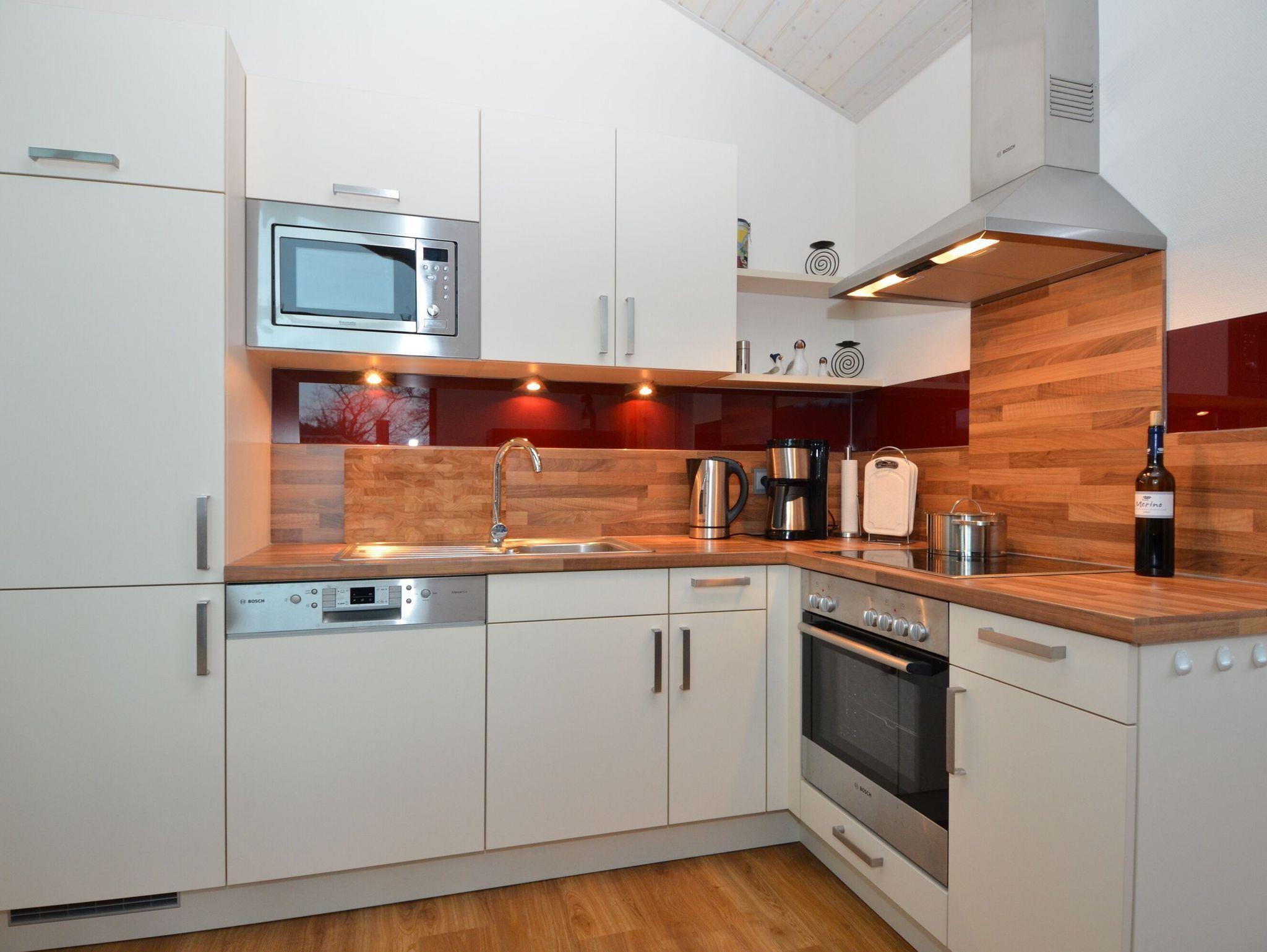 Die harmonisch im Wohnbereich integrierte, erstklassige BOSCH-Küchenzeile verfügt über einen Herd mit Cerankochfeld, einen Backofen, Kühlschrank, Spülmaschine, Mikrowelle, Kaffeemaschine, Toaster, Wasserkocher und diverses Kleininventar, das die Ausstattung komplettiert.