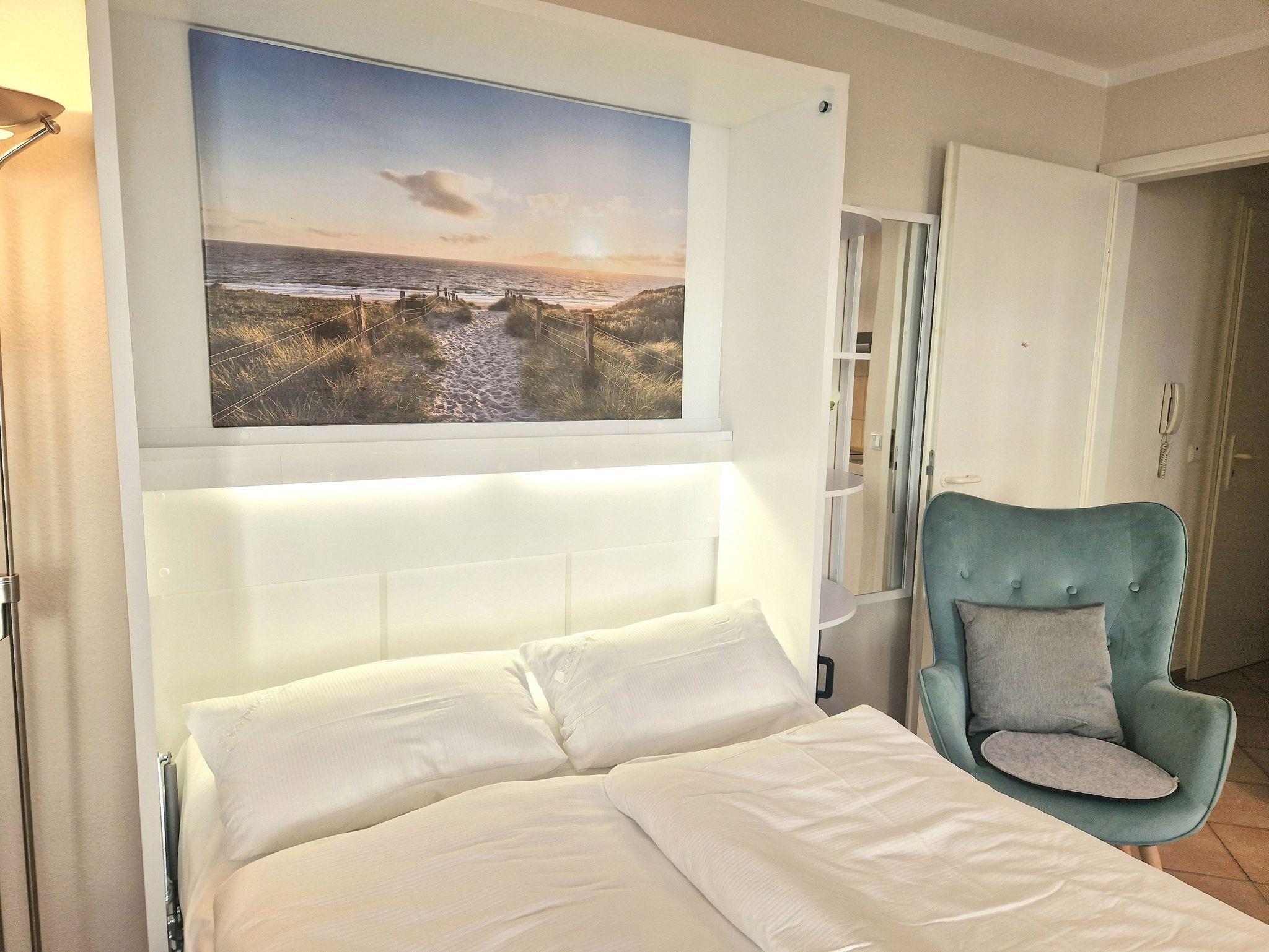 Die Ausstattung umfasst einen Smart-TV, eine Bluetooth Soundbar, eine Kaffeemaschine (Filter) sowie eine Kaffeepadmaschine, eine Mikrowelle mit Grillfunktion, ein Multifunktionsmixer, Bettwäsche, einen Balkon, eine kleine Küche, einen Fahrradkeller, WLAN und einen Fernseher mit Sky-Sendern. Außerdem bieten wir einen Brötchenservice an, damit Sie jeden Morgen frische Brötchen genießen können. In der Küche steht Ihnen ein digitaler Schnellkochtopf der Firma Krups zur Verfügung, mit dem Sie eine Vielzahl verschiedener Gerichte zubereiten können. Rezepte sind digital abrufbar und bieten Ihnen eine große Auswahl an Kochideen. Zusätzlich lässt sich das Gerät auch als Air Fryer nutzen.