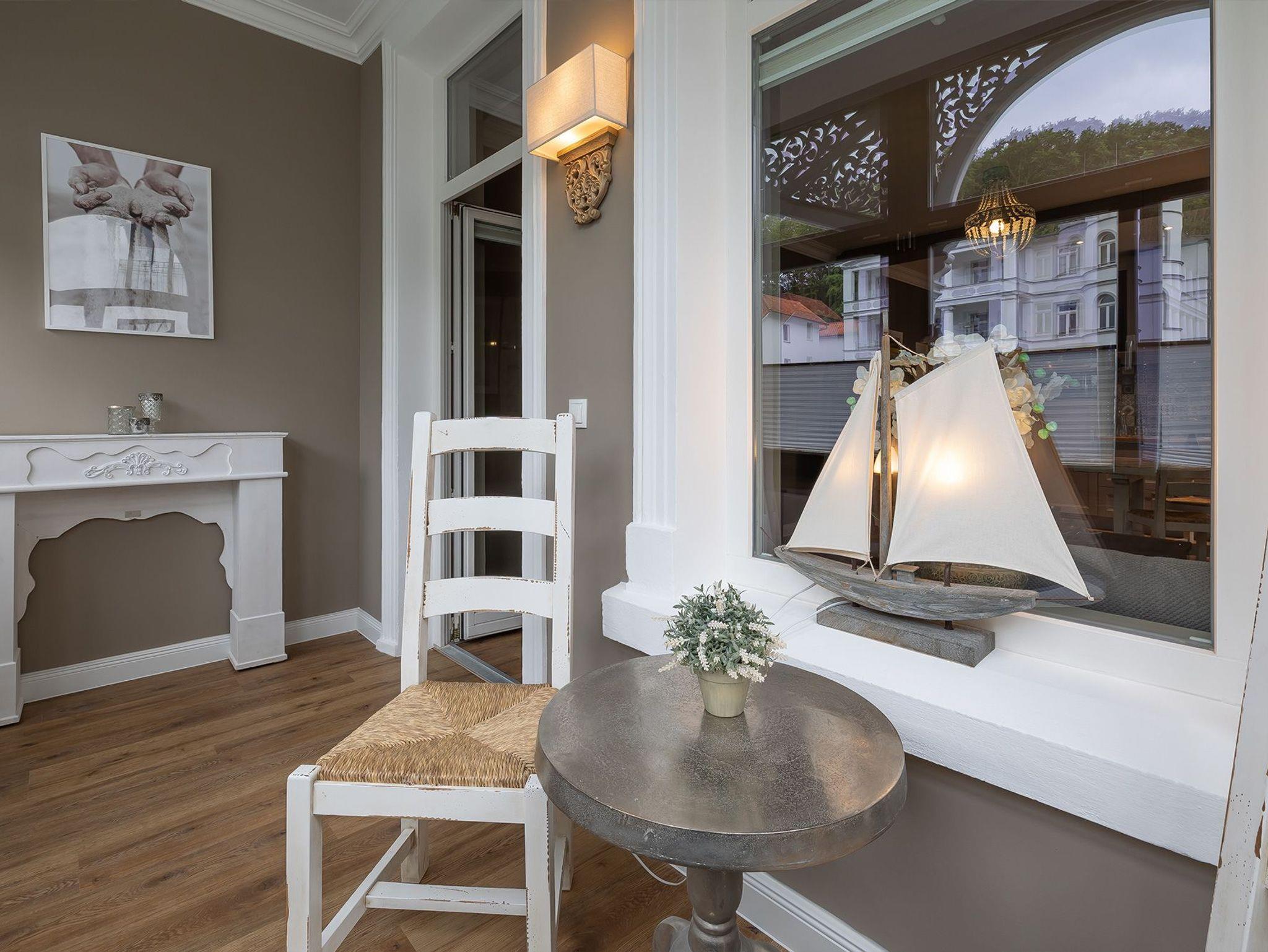 Die separate Küche ist mit einem Cerankochfeld, Backofen und Spülmaschine ausgestattet. Dazu kommen eine Kaffeepad Maschine der Marke Tassimo, Kühlschrank mit Gefrierfach, Wasserkocher, Toaster und eine Vielzahl an Küchenhelfern hinzu. Hier können Sie kleine Köstlichkeiten gerieren und Sie im Wintergarten mit Blick auf die Wilhelmstraße genießen. Ein Hochstuhl für unsere kleinen Gästen, steht Ihnen kostenfrei zur Verfügung.