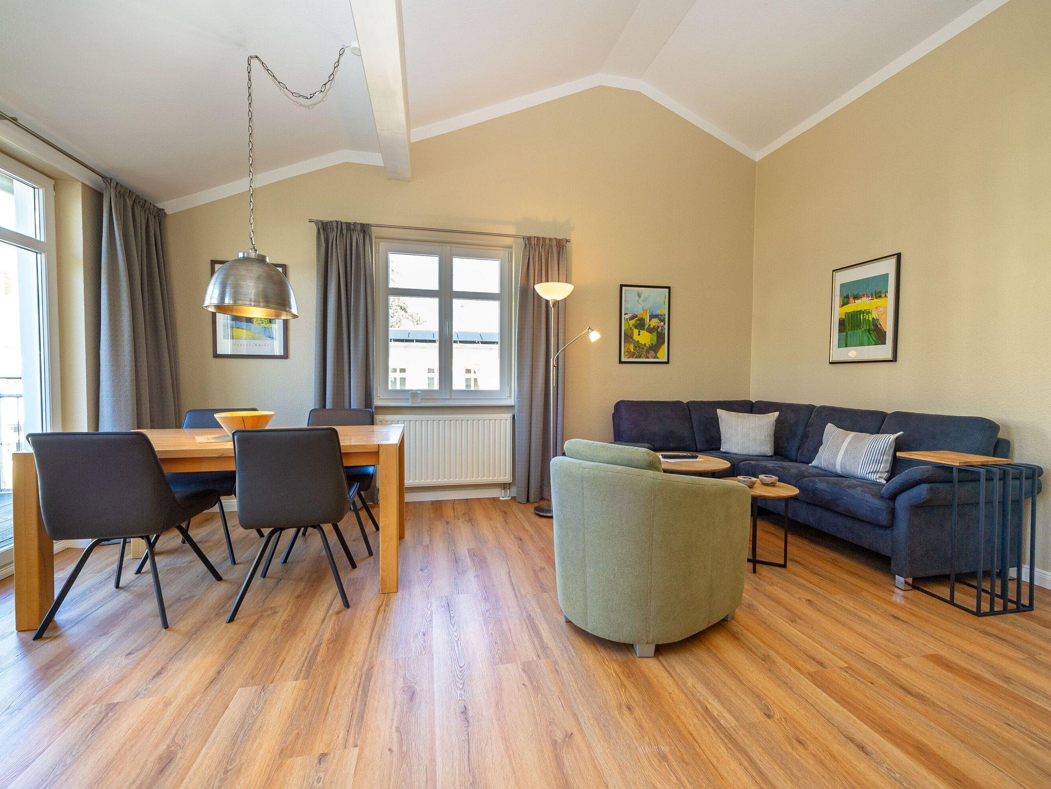 Appartement 20 Seestern: Dieses sehr schöne 3-Raum-Appartement mit einer Wohnfläche von ca. 72 m² erwartet Sie im Dachgeschoss des hinteren Hauses und bietet Ihnen eine große möblierte Dachterrasse zur sonnigen Süd-West-Seite.