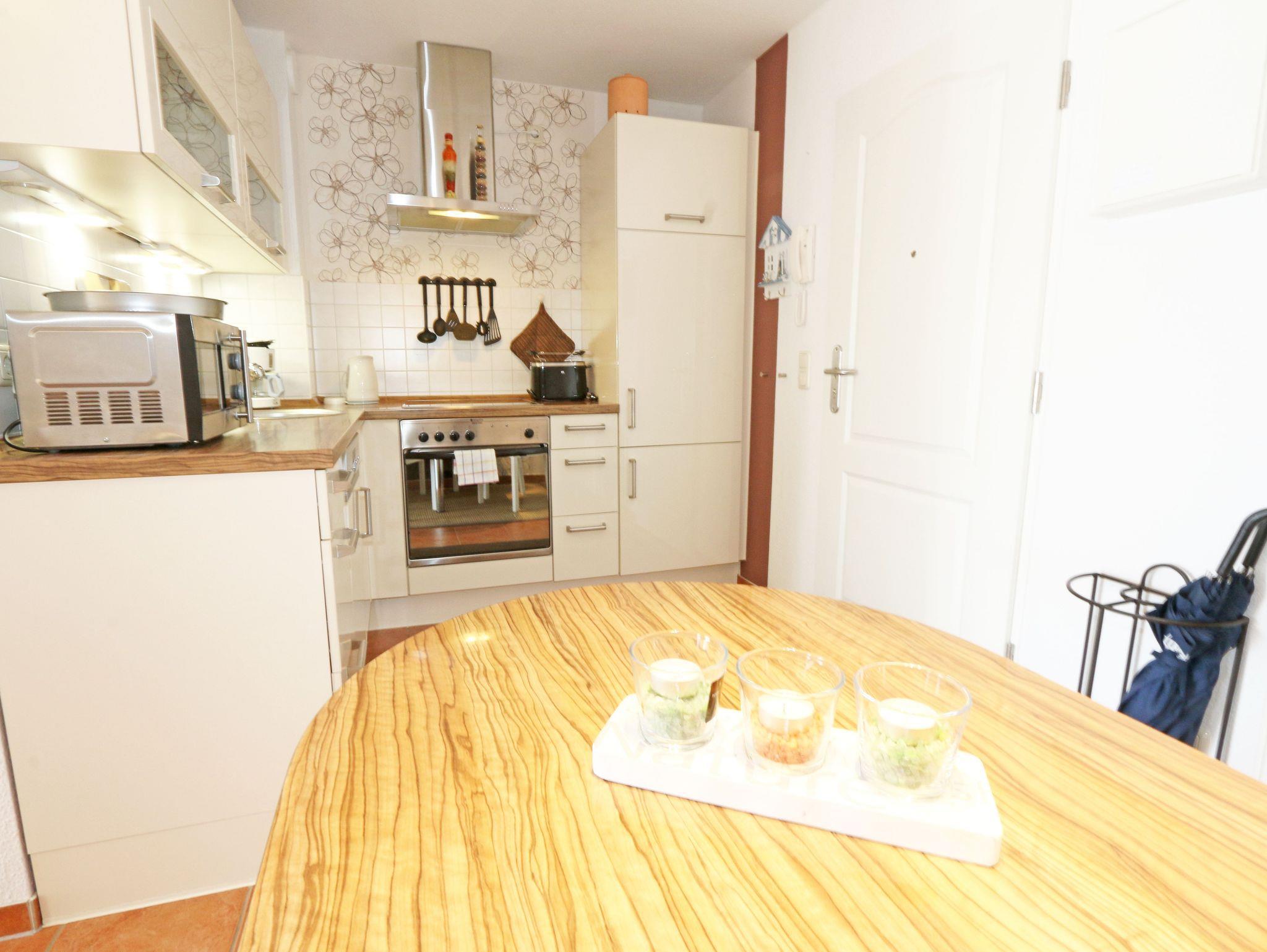 Die Nichtraucherferienwohnung Das Boot befindet sich in der ersten Etage und umfasst ca. 54 m² Wohnfläche. Sie bietet somit ausreichend Platz für max. 4 Erwachsene + 1 Kleinkind bis 3 Jahre im Kinderreisebett. Der, durch zwei große Fenster, helle und lichtdurchflutete Wohnbereich verfügt über eine Eckcouch mit Couchtisch, eine Leselampe sowie eine Anrichte. Ein Smart-TV, eine Mini-Stereo-Anlage mit DAB-Radio, mit CD- und Blue-Ray-Player und auch ein kostenfreier Internetanschluss (WLAN) runden den technischen Bereich ab. Aber auch ohne Technik können Sie sich durch die große Auswahl an Urlaubslektüre für Klein und Groß lesen. Die komplett eingerichtete Küchenzeile mit einem Essbereich umfasst einen 4 Zonenceranfeld, einen Backofen, eine Dunstabzugshaube, einen Kühlschrank mit Gefrierfach, einen Geschirrspüler, eine Mikrowelle, eine Kaffeemaschine, einen Wasserkocher, einen Toaster, einen Eierkocher und diverse Küchenutensilien. Das Schlafzimmer, welches auch mit einem LED-Flachbildschirm ausgestattet ist, verfügt über ein Doppelbett (1,60m x 2,00m) , verstellbaren Lattenroste, 2 Nachttischablagen und einen Kleiderschrank. Im Bad finden Sie neben einer Glasdusche, einem WC und einem Waschtisch, einen Handtuchheizkörper sowie einen Fön. Der großzügige und bestuhlte Balkon (Süd) mit Sonnenschirm lädt bei einem Glas Wein zum Verweilen ein. Sie können den Balkon vom Wohn- und Schlafbereich erreichen. Die Räumlichkeiten können durch Elektro-Rollo´s verdunkelt werden. Für einen glatt ablaufenden Urlaubstag stehen Ihnen ein Bügelbrett und ein Bügeleisen zur Verfügung. 2 kleine Haustiere sind mit Ihrem eigenen Schlafplatz sind gegen eine Gebühr gern gesehene Gäste. Ein PKW-Stellplatz (Das Boot) ist direkt am Hochufer inklusive. Die Erstausstattung eines Wäschepaketes (komplette Bettwäsche, 1 Duschhandtuch, 1 kleines Handtuch) können Sie bis 14 Tage vor Anreise gegen einen Aufpreis dazu buchen oder durch eigene ergänzen. Ab 2 gebuchten Paketen erhalten Sie einmalig 1 Geschirrhandtuch und 1 Duschvorleger hinzu.