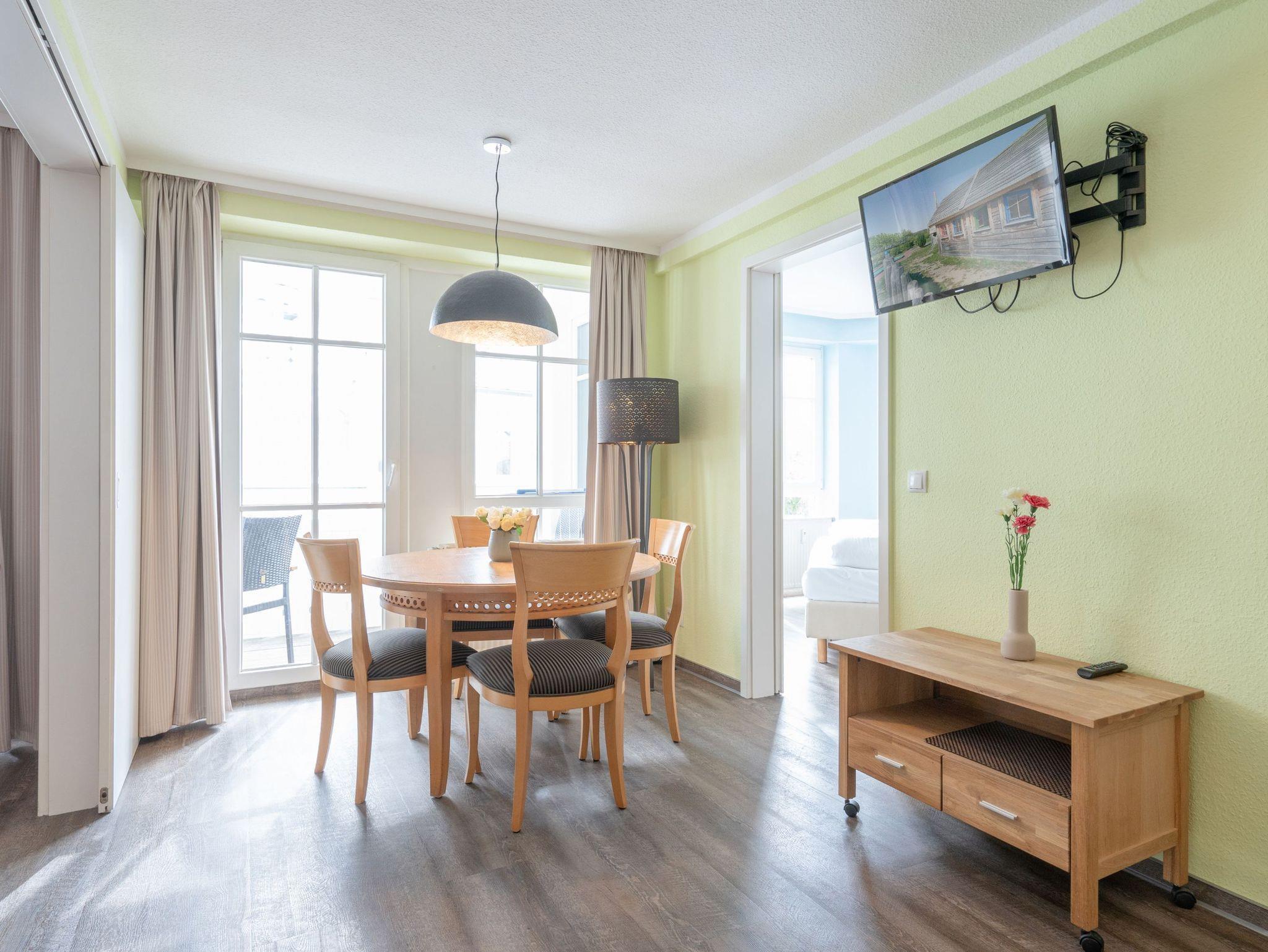 Nach einem erlebnisreichen Urlaubstag können Sie auf dem Balkon in Südostlage Platz nehmen. Der Ausblick und die Sitzgruppe sorgen hier für ein wunderbares Urlaubsgefühl. Im Nichtraucher-Apartment sind keine Haustiere gestattet.