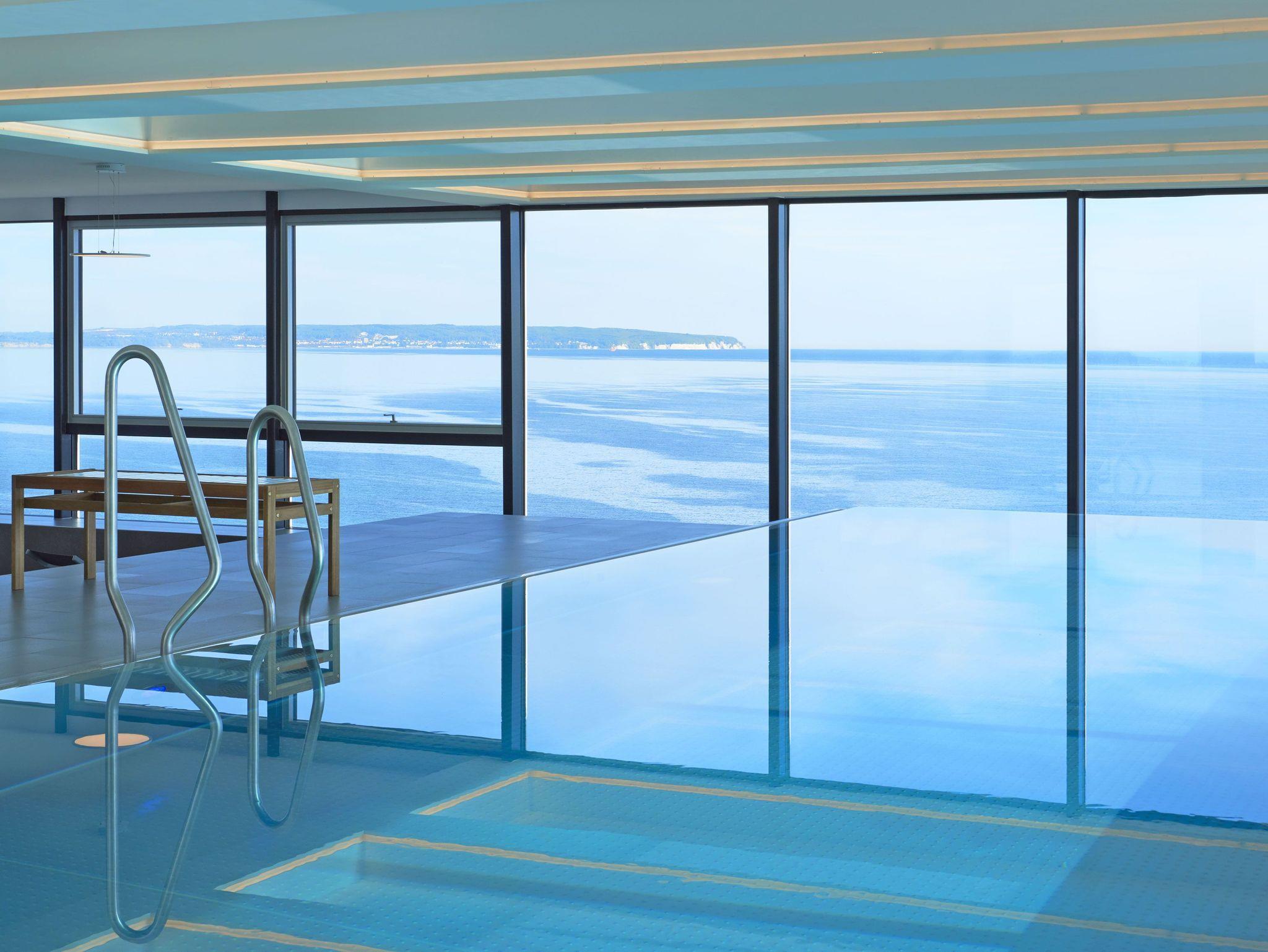 Über den eigenen Zugang oder den Fahrstuhl gelangen Sie direkt auf die großzügige Hotel Dachterrasse mit Strandkörben, Sonnenliegen, Saunen und einem[nbsp]Sky-Pool mit dem Sie die Badesaison über den Sommer hinaus verlängern können.