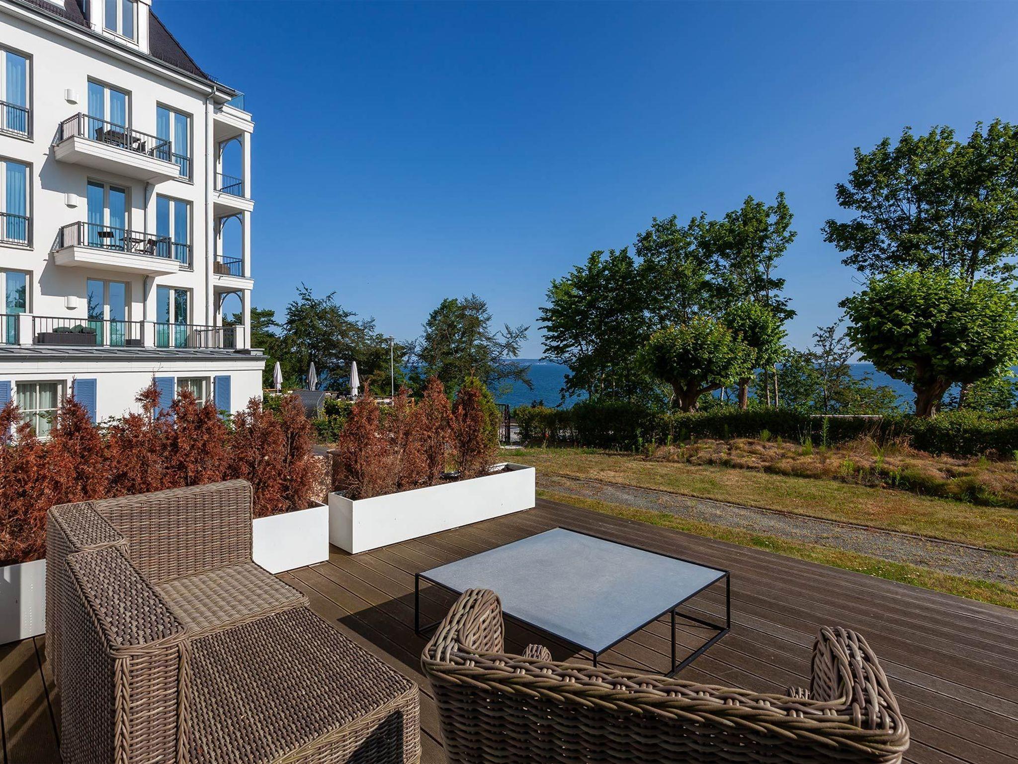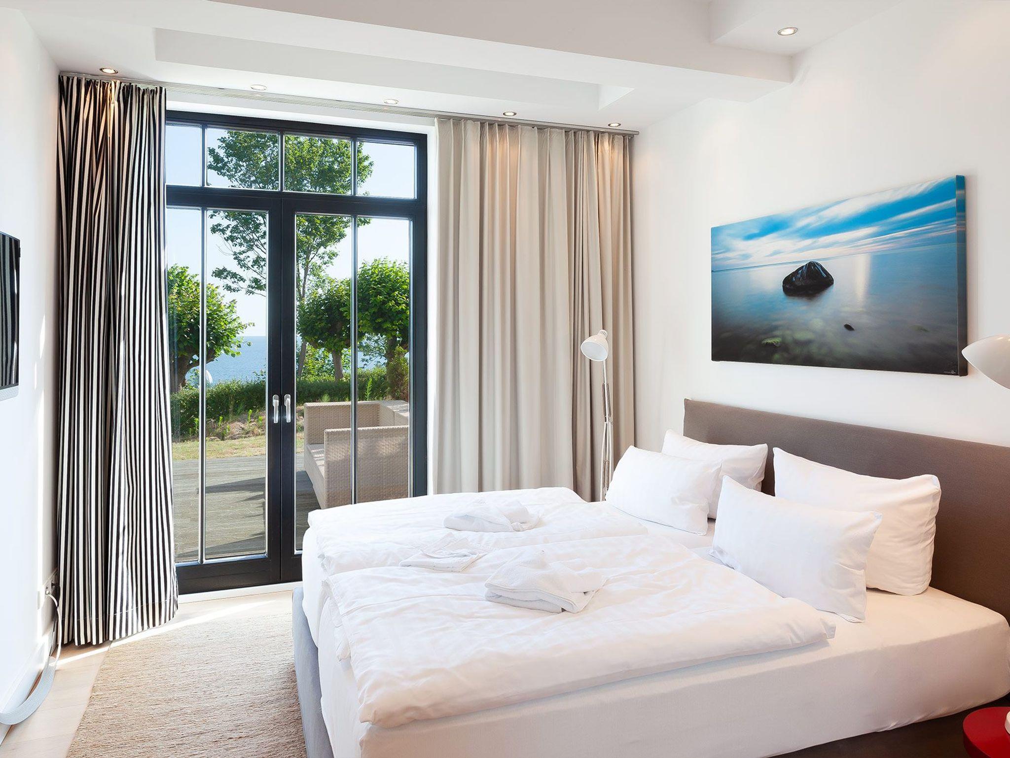 Rügen-Urlaub deluxe auf 178 Quadratmetern! Das Appartement Nr. 017 begrüßt Sie im Erdgeschoss der Villa Philine mit zwei freundlichen Schlafzimmern, die Ihnen durch ihre bodentiefen Fenster einen sehr schönen Blick auf die Ostsee bis hinüber zu den Kreidefelsen Jasmunds ermöglichen. Zwei stilvolle Ensuite-Badezimmer mit ebenerdiger Dusche bzw. Badewanne, ein Gäste-WC und die private Finnische Sauna nebst kleiner Ruhezone komplettieren diese Etage. Sogar an einen separaten Zugang zum Pool im Außenbereich wurde gedacht, so dass Sie auch ganz kurzentschlossen ein erfrischendes Bad (saisonal) genießen können.