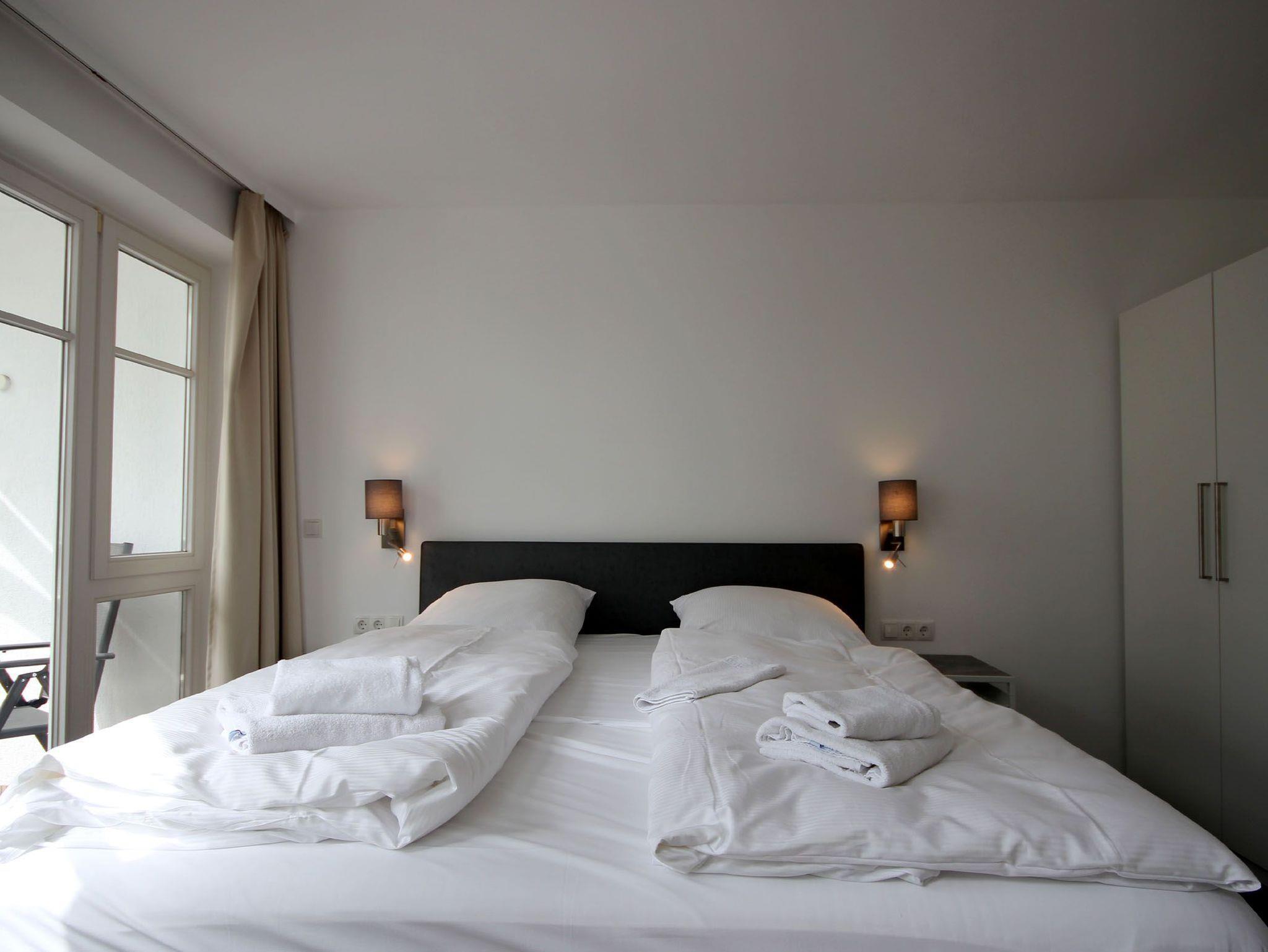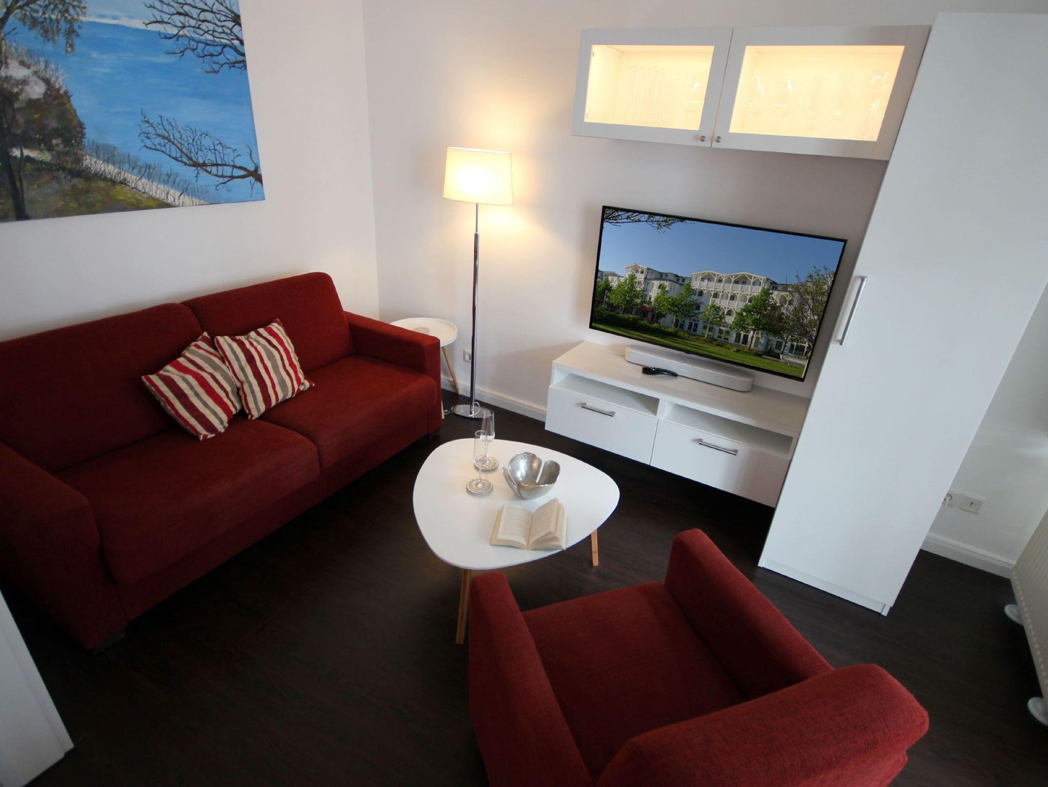 Im schönen Wohnraum finden Sie neben dem gemütlichem Schlafsofa, welches Platz für die 3. u. 4. Person bietet, einen Smart-TV unter anderem zur Nutzung der bekannten Streaming-Dienste, WLAN, ein SONOS Soundsystem mit Alexa-Funktion, einen kleinen Kleiderschrank sowie einen direkten Zugang zum großen Balkon. Im separaten Schlafzimmer mit bequemen Doppelbett, Kleiderschrank und Verdunklungsmöglichkeiten befindet sich zudem ein Zugang zum zweiten Balkon.[nbsp] Die neue und hochwertige Wohnküche mit Cerankochfeld, Geschirrspüler, Backofen, Mikrowelle, Kühlschrank, Kaffeemaschine, Wasserkocher, Toaster sowie diversen anderen Küchenhelfern lädt zum Kochen und gemeinsamen Essen ein. Darüber hinaus gibt es zwei SMART-TVs, WLAN und eine Stereoanlage. Ein Badezimmer mit Badewanne inklusive Duschvorrichtung und Waschbecken sowie eine separate Gäste-Toilette steht Ihnen zur Verfügung. Rundum eine sehr schöne Wohnung zum Abschalten vom Alltag.