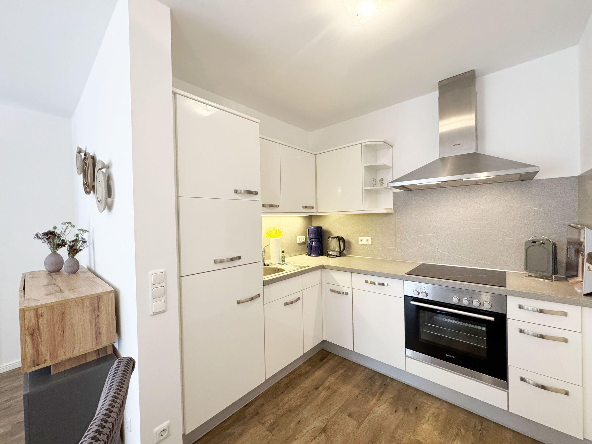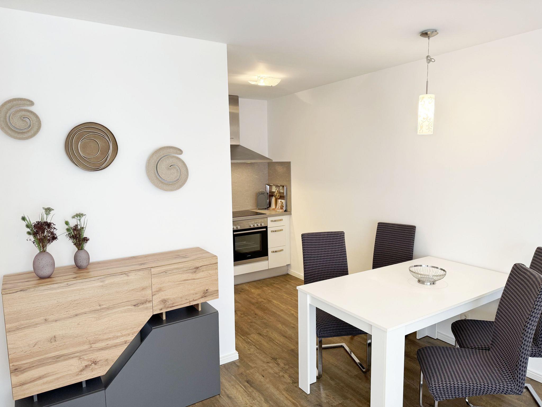 Unsere gemütliche FeWo 07 ?Aurora? in der Villa Rosa liegt zentral inmitten der Selliner Wilhelmstraße entfernt. Mit ihren ca. 54 m² ist unsere Nichtraucherwohnung ideal für 2 Erwachsene + 1 Kleinkind bis 3 Jahre im Kinderreisebett. Das gemütliche Wohnzimmer mit angrenzender Küchenzeile und Esstisch ist in dezenten Erdtönen gehalten. Hier befindet sich eine Couch, einen Couchtisch, einem Sideboard, ein DAB-Radio, einen WLAN-Zugang, eine Flachstrecke mit einem Smart-TV (65 Zoll), der nach einem ereignisreichen Tag zu entspannten Stunden vor dem Fernseher einlädt. Oder Sie verbringen den Abend in gemütlicher Atmosphäre mit einem Buch aus unserer reichhaltigen Bibliothek oder bei einem kurzweiligen Gesellschaftsspiel, von denen wir ebenfalls eine Auswahl für Sie vorhalten. Vom Wohnbereich oder vom Schlafzimmer gelangen Sie auf Ihren bestuhlten Südwest Balkon - hier können Sie den Tag gemütlich bei einer Flasche Wein ausklingen lassen und Pläne für Ihre nächsten Ausflüge in und um Sellin schmieden. Selbstverständlich müssen Sie auch bei uns nicht auf den gewohnten Komfort einer Küchenzeile verzichten: eine Mikrowelle, ein Geschirrspüler, ein Herd mit Cerankochfeld und ein Kühlschrank mit Gefrierfach stehen ebenso zur Verfügung wie ein Toaster, eine Kaffeemaschine und ein Wasserkocher. Sie verfügt über ein separates Schlafzimmer mit einem Doppelbett (2,00m x 2,00m), verstellbaren Lattenrosten, eine angrenzende Ankleide mit Safe und direktem Zugang zum innenliegenden Badezimmer. Bei der Badezimmerausstattung punktet unsere FeWo ?Aurora? mit Funktionalität: die ebenerdige Dusche ist extra groß, der wandgroße Spiegel ist umlaufend beleuchtet und der Waschtisch bietet ausreichend Ablagefläche, um Ihre Badutensilien jederzeit griffbereit zu haben. Für zusätzlichen Komfort sorgt der beheizbare Handtuchhalter sowie ein WC und ein Fön. Ihre Koffer können Sie bequem im Abstellraum unterbringen. Hier stehen Ihnen zusätzlich ein Bügeleisen, ein Bügelbrett, ein Staubsauger und ein Wäscheständer zur Verfügung. Haustiere sind nicht erlaubt. Die moderne Fußbodenheizung lässt sich bequem je Zimmer regulieren und sorgt dafür, dass Sie sich auch außerhalb der Sommermonate bei uns wohlfühlen können. Dazu trägt auch unser hauseigener Wellnessbereich (Sauna kostenpflichtig) im Kellergeschoss + Dampfbad bei. Die Wertmarken können Sie auf Nachfrage während Ihres Urlaubes erwerben. Auch ein kleiner Garten hinter dem Haus lädt zum Verweilen ein. Der Parkplatz Nr. 07 (Einfahrtshöhe 2,00 m) befindet sich in der Tiefgarage (Doppelparker: bis 1,80m Höhe, 5,00m Länge sowie 2 t Gewicht) und ist für PKWs und Kombis (bis 1,80 m Höhe und 1,90 m Breite) geeignet. Von der Tiefgarage haben Sie einen direkten Zugang zu unserem abschließbaren Fahrradkeller, in dem Sie gerne Ihre mitgebrachten oder geliehenen Fahrräder unterstellen können. Die Erstausstattung eines Wäschepaketes (komplette Bettwäsche, 1 Duschhandtuch, 2 kleine Handtücher) können Sie bis 14 Tage vor Anreise gegen einen Aufpreis dazu buchen oder durch eigenes Ergänzen. Ab 2 gebuchten Paketen erhalten Sie einmalig 1 Geschirrhandtuch und 1 Duschvorleger hinzu.