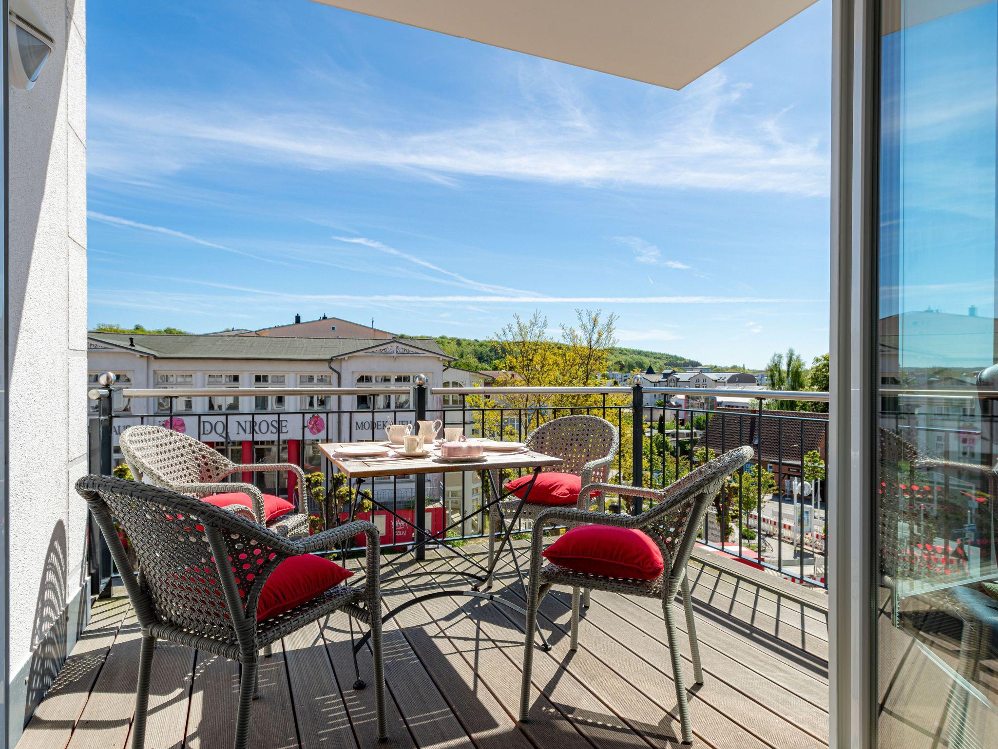 Seit 2016 erwarten Sie im Appartement WILHELMINE auf rund 79 m² Wohnfläche für max. 2 bis 3 Erwachsene + 1 Kleinkind bis 3 Jahre im Kinderreisebett, nicht nur drei liebevoll eingerichtete Zimmer, sondern gleich zwei möblierte Balkone mit herrlichem Blick auf die Linden-gesäumte Wilhelmstraße sowie auf das Hügelland rund um den Selliner See. Die modern und stilvoll eingerichtete Nichtraucher-Ferienwohnung überzeugt durch ihre klare Aufteilung sowie helles und hochwertiges Mobiliar. Im Wohnbereich laden 2 elegante Ledersofas, eine Leselampe, ein Couchtisch, ein Leder-Loungesessel mit Fußhocker zum Entspannen ein, während man ein gutes Buch liest oder einfach nur die Ruhe des Urlaubs genießt. Eine kleine Auswahl an Lektüre steht Ihnen zur Verfügung. Ein 48-Zoll-Smart-TV, Blu-Ray Player eine Mini-Stereoanlage mit CD-Player sowie kostenfreies WLAN sorgen für Unterhaltung. Die angrenzende Küchenzeile, ausgestattet mit Cerankochfeld, Backofen, Kühlschrank mit Gefrierfach, Spülmaschine, Kaffeemaschine, Espressokocher, Toaster, Wasserkocher sowie umfangreiche Küchenutensilien, macht Lust mal wieder den eigenen Kochkünsten freien Lauf zulassen. Ein großer Esstisch ergänzt die Ausstattung. Das 1. Schlafzimmer ist mit einem Hülsta Boxspringbett (1,80m x 2,00m), einem Kleiderschrank, Nachttischablagen und einem TV-Gerät ausgestattet. Das 2. Schlafzimmer verfügt über ein Boxspringbett (1,20m x 2,00m), einen Kleiderschrank, und einen Sessel mit Tisch. Auch ein Kinderreisebett kann hier auf Anfrage dazu gestellt werden. Für einen angenehmen Schlafkomfort sorgen in beiden Schlafzimmern Gesundheitsmatratzen (Härtegrad 3/hart), Plissees sowie Verdunklungsgardinen. Das Tageslicht-Bad bietet Ihnen eine Dusche mit Rainshower, ein Bidet, ein Kosmetikspiegel, ein WC, eine Handtuchheizung, einen Fön sowie einen Waschtisch mit beleuchtetem Spiegel. Zusätzlich rundet ein separates Gäste-WC die Wohnungsausstattung ab. Um den einmaligen Blick auf die historischen Häuser und Lindenbäume zu genießen gelangen Sie einmal vom Wohnbereich und vom kleineren Schlafzimmer auf die bestuhlten Balkone (NO & SO). Hier können Sie in Ruhe den Tag ausklingen lassen. Ein in der Wohnung befindender Abstellraum hält Staubsauger, Wäscheständer, Bügelbrett und ?eisen, Reinigungsutensilien sowie Sitzkissen für die Balkonmöbel bereit. Für unsere kleinen Gäste steht ein Hochstuhl sowie ein Kinderreisebett (ohne Zusatz Matratze) zur Verfügung. Unter dem hellen Echtholzparkett verbirgt sich eine flächendeckende Fußbodenheizung, die ganzjährig für ein angenehmes Raumklima sorgt. Im geräumigen, abschließbaren Gemeinschafts-Fahrradkeller sind Ihre Räder sicher untergebracht. Ein Fahrstuhl bringt Sie in das 2. Obergeschoss. Haustiere sind nicht erlaubt. Ein PKW-Stellplatz (Nr.08) befindet sich direkt hinter dem Haus, welcher mittels einer Schranke gesichert ist. Die Erstausstattung eines Wäschepaketes (komplette Bettwäsche, 1 Duschhandtuch, 2 kleine Handtücher) können Sie bis 14 Tage vor Anreise gegen einen Aufpreis dazu buchen oder durch eigene ergänzen. Ab 2 gebuchten Paketen erhalten Sie einmalig 1 Geschirrhandtuch und 1 Duschvorleger hinzu.
