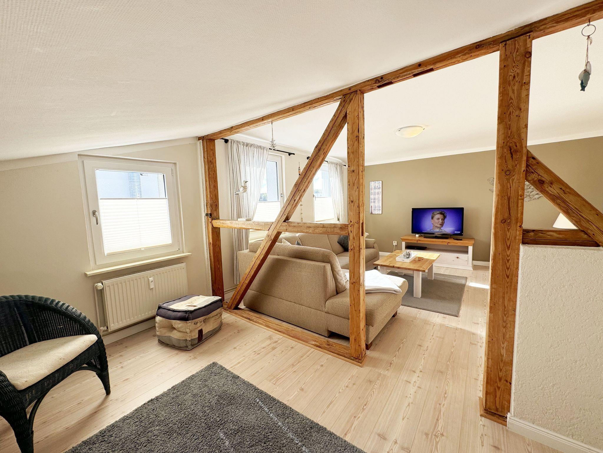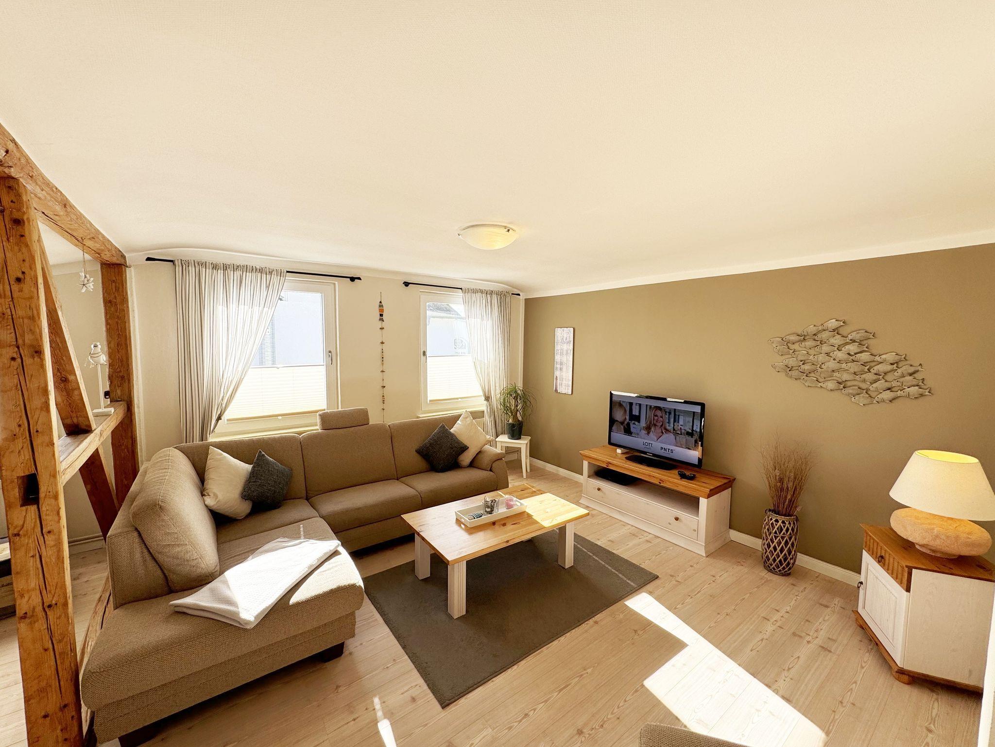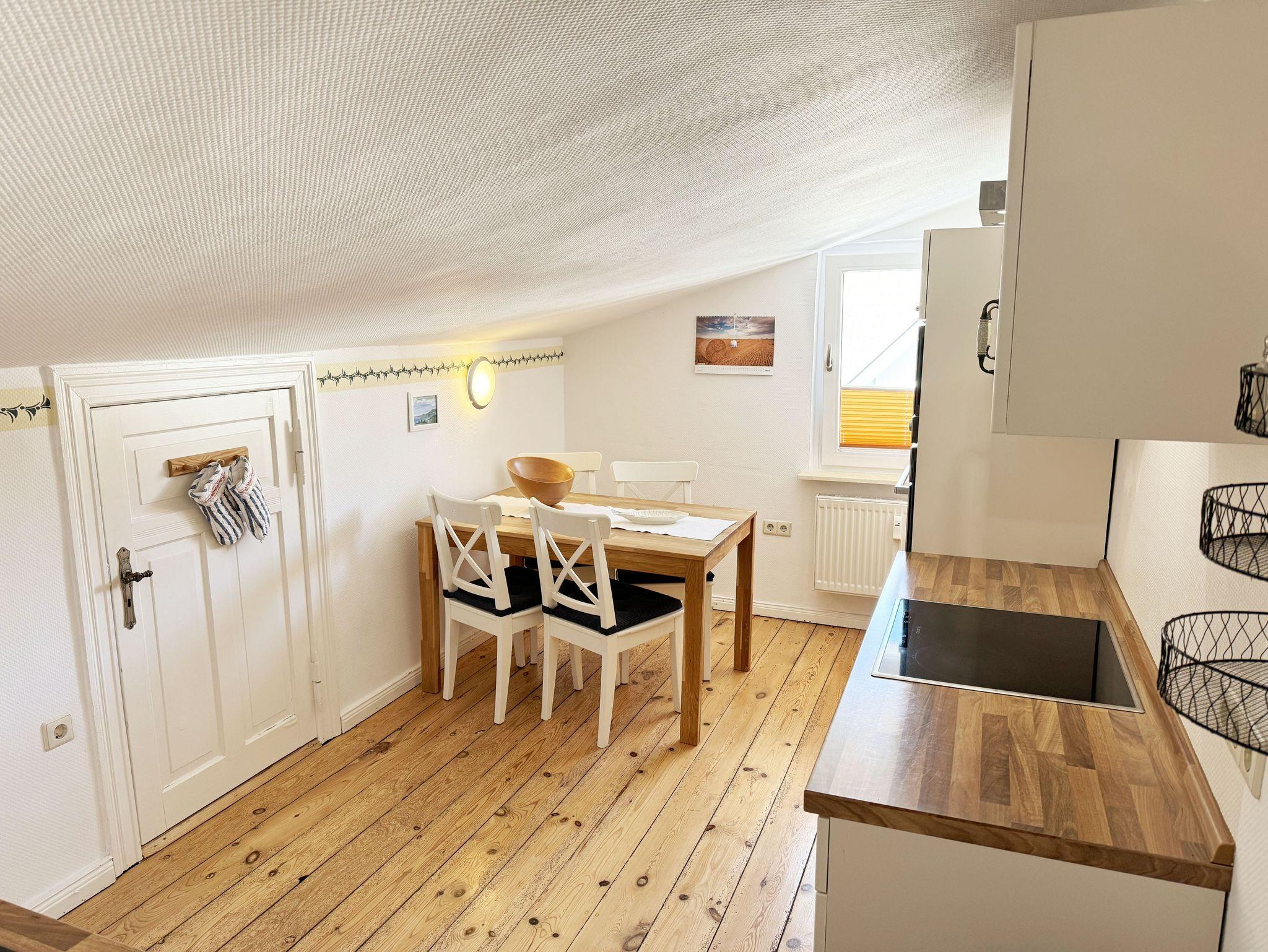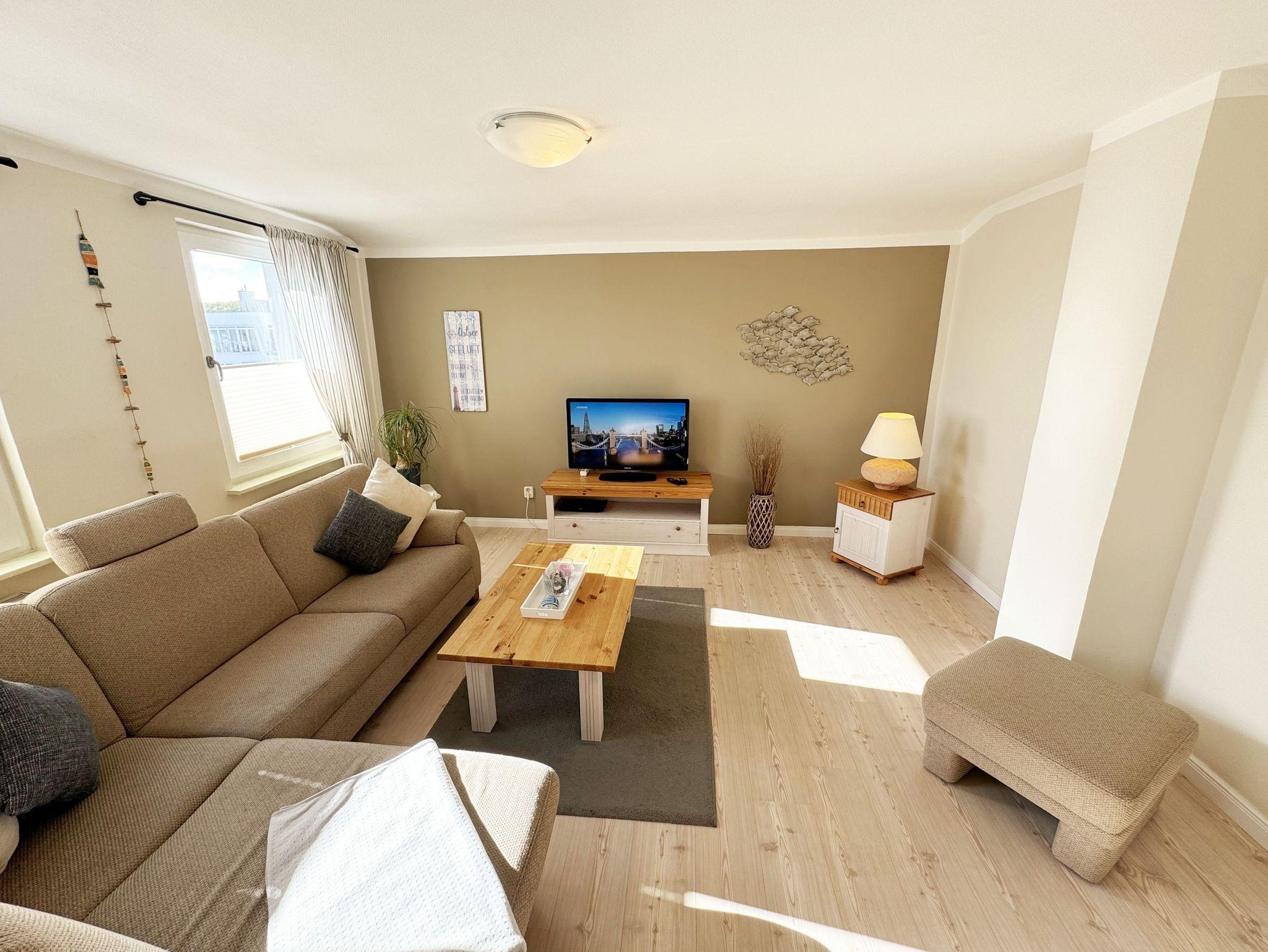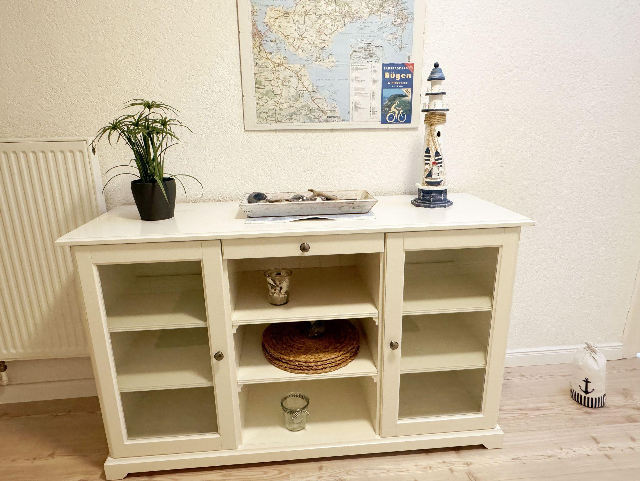 Über einen großzügigen hellen Flur gelangt man in die Ferienwohnung 4. Die Ferienwohnung befindet sich im Dachgeschoss des Hauses. Auf ca. 85 m² bietet sie ausreichend Platz für maximal 4 Erwachsene + 2 Kleinkinder bis 3 Jahre im Kinderreisebett. Die maritim eingerichtete Nichtraucherferienwohnung besteht aus einem großzügigen Wohnraum mit einer gemütlichen Couch, Couchtisch sowie ein TV-Board mit Flachbild-TV und DVD-Player. Diverse DVDs und Gesellschaftsspiele stehen Ihnen zur Verfügung. Auch auf einen Internetanschluss (WLAN) müssen Sie nicht verzichten. Dieser ist für Sie inklusive. Die separate Küche verfügt über eine Einbauküche mit einem Herd mit Cerankochfeld, einem Backofen, einem Kühlschrank, einem Gefrierschrank, einer Spülmaschine, einer Mikrowelle, einem Toaster, einer Kaffeemaschine und einem Wasserkocher. Ein gemütlicher Essplatz rundet den Raum ab. In dieser Ferienwohnung befinden sich zwei getrennte Schlafräume. Im ersten Schlafraum befindet sich ein Doppelbett (1,80m x 2,00m), verstellbare Lattenroste, Nachttischablagen mit Beleuchtung und ein großer Kleiderschrank mit Ganzkörperspiegel. Im zweiten kleineren Schlafzimmer befinden sich zwei massive Einzelbetten (1,00m x 2,00m), welche auch als Doppelbett gestellt werden können, verstellbare Lattenroste, Nachttischablagen mit Beleuchtung sowie eine Wäschekommode. In beiden Schlafzimmern sorgen ein Insektenschutzgitter sowie eine Verdunklungsmöglichkeit für einen angenehmen Schlaf. Das Tageslicht-Bad befindet sich direkt neben dem ersten Schlafzimmer und verfügt über einen Waschplatz, ein WC, einen Handtuchtrockner, eine Badewanne mit Handbrause, einen Kosmetikspiegel sowie einen Fön. Weiterhin haben Sie einen geräumigen Flur mit Garderobe und einen Abstellraum. Hier befinden sich unteranderem Reinigungsutensilien, sowie einen Staubsauger und einen Wäscheständer. Für unsere kleinen Gäste stehen Ihnen ein Kinderreisebett sowie ein Hochstuhl inklusive zur Verfügung. Ein PKW-Stellplatz (Nr.04) und eine abschließbare Fahrradunterstellmöglichkeit befinden sich direkt am Haus. Direkt am Haus, neben dem Parkplatz befindet sich eine kleine Sitzgelegenheit, die gerne zum Entspannen genutzt werden darf. Haustiere sind nicht erlaubt. Die Erstausstattung eines Wäschepaketes (komplette Bettwäsche, 1 Duschhandtuch, 2 kleine Handtücher) können Sie bis 14 Tage vor Anreise gegen einen Aufpreis dazu buchen oder durch eigene ergänzen. Ab 2 gebuchten Paketen erhalten Sie einmalig 1 Geschirrhandtuch und 1 Duschvorleger hinzu. Wir wünschen Ihnen einen traumhaften und angenehmen Urlaub an der Ostsee, erholen Sie sich gut.
