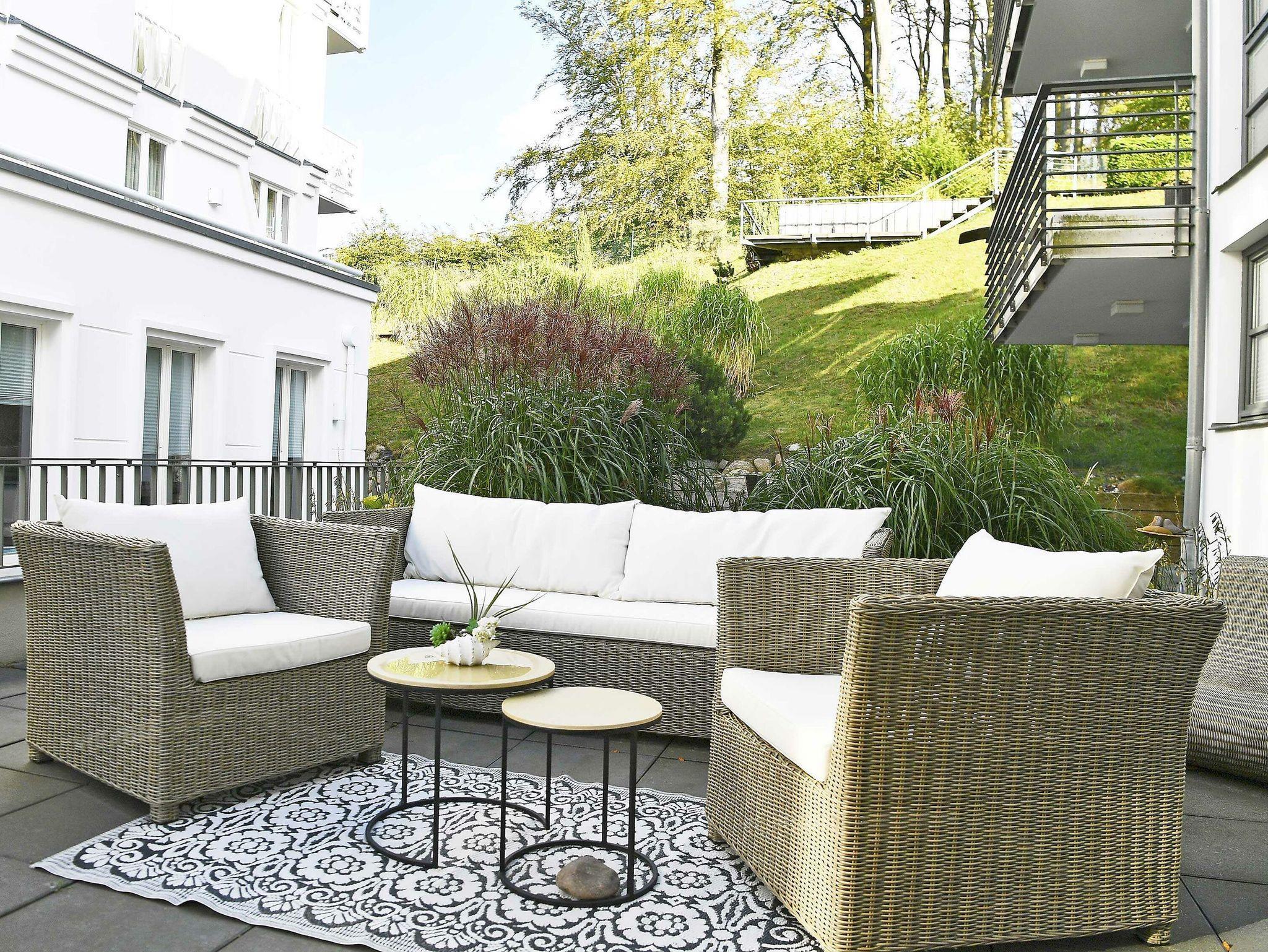 Das großzügige Appartement besitzt einen sehr gemütlichen West-Balkon mit Blick auf die Wilhelmstrasse sowie eine großzügige und sonnige Gartenterrasse. Genießen Sie den Frühling mit einem ausgedehnten Frühstück auf der eigenen Sonnenterasse oder nehmen Sie im villeneigenen Pool ein erfrischendes Bad an warmen Sommertagen. Genießen Sie die ersten Herbststürme am prasselnden Kaminfeuer oder einen herrlich verschneiten Jahreswechsel mit Feuerwerk über dem Meer.