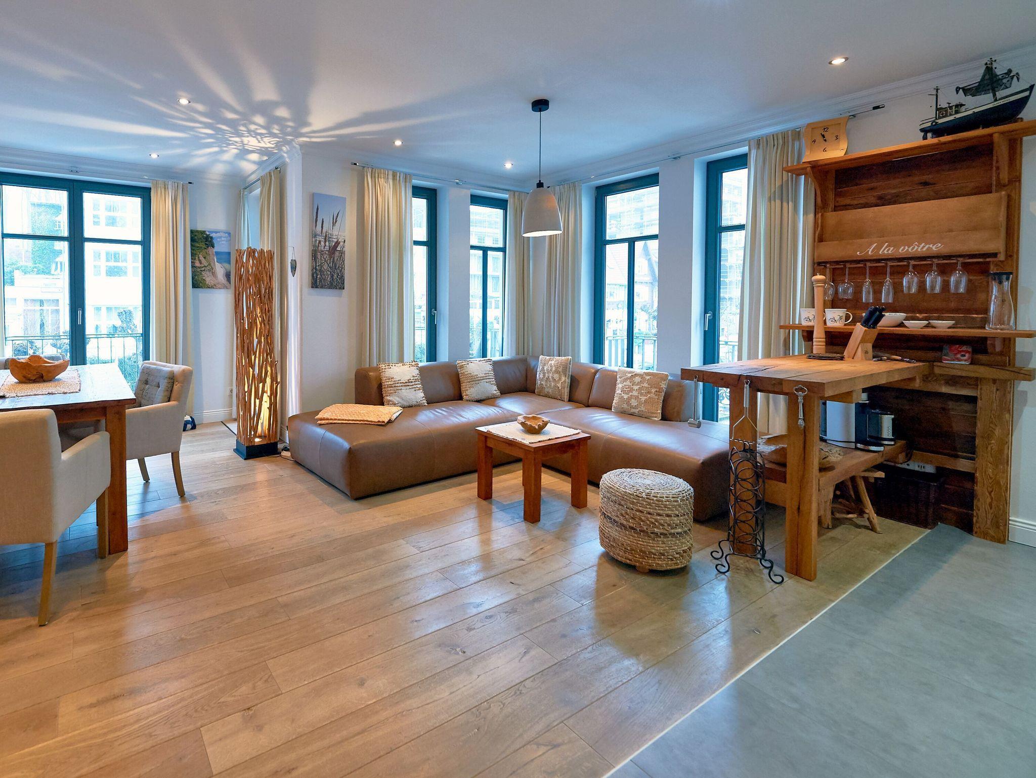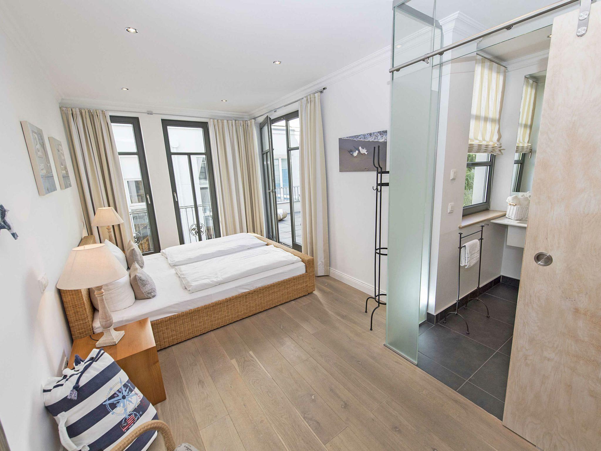 Das 3-Raum-Appartement Findling liegt von der Wilhelmstraße gesehen im 1. Obergeschoss, jedoch ebenerdig zur rückseitigen Grünanlage mit dem beheizten Außenpool (saisonal in Betrieb). Das Appartement wurde vom Eigentümer ausschließlich mit hochwertigen MARKTEX Möbeln ausgestattet. Bei der Einrichtung treffen modern und rustikal aufeinander ein besonderes Wohlfühlambiente ist damit garantiert. Maritime Dekorationselemente runden die exklusive Ausstattung dieses Appartements ab.