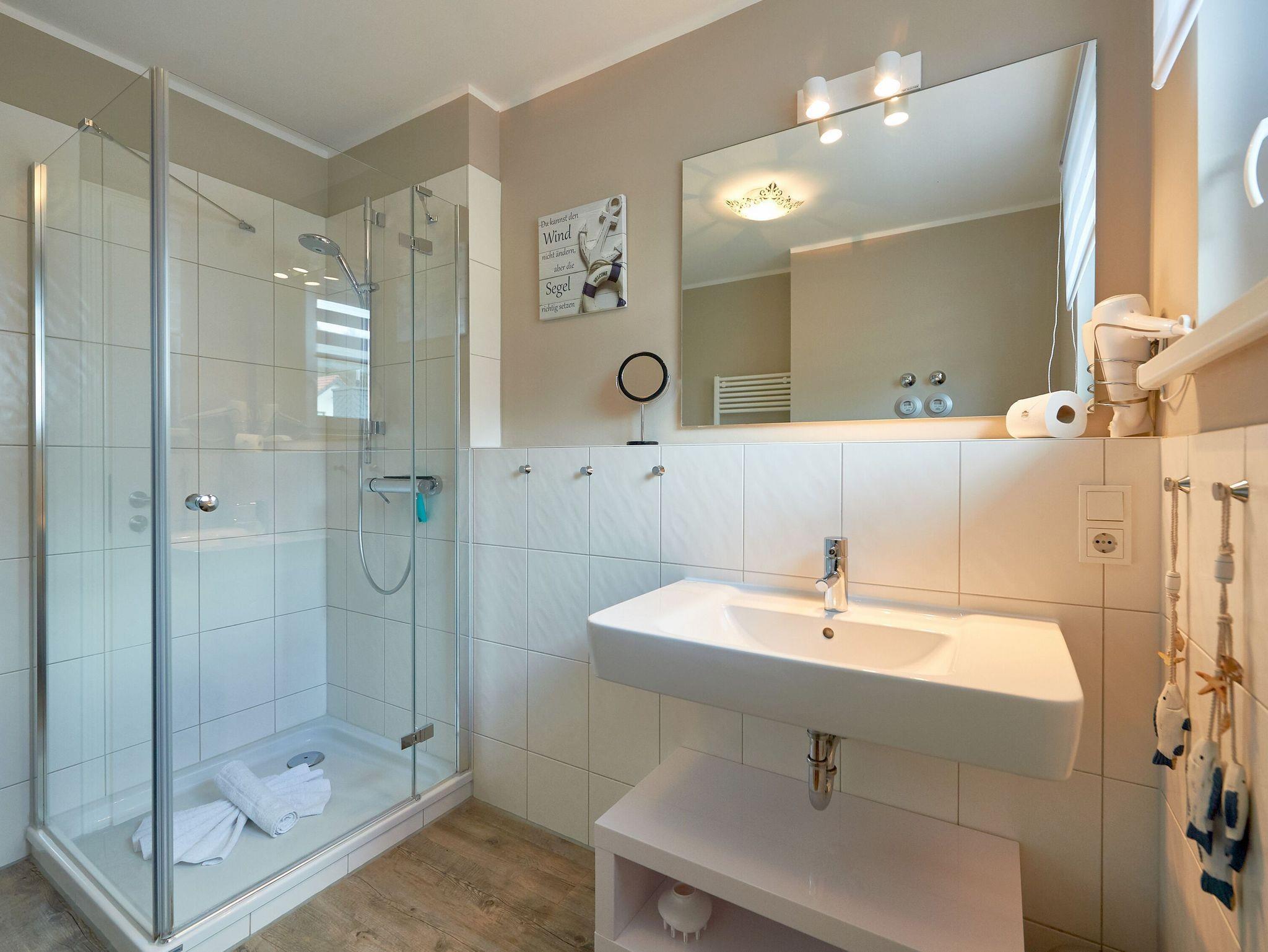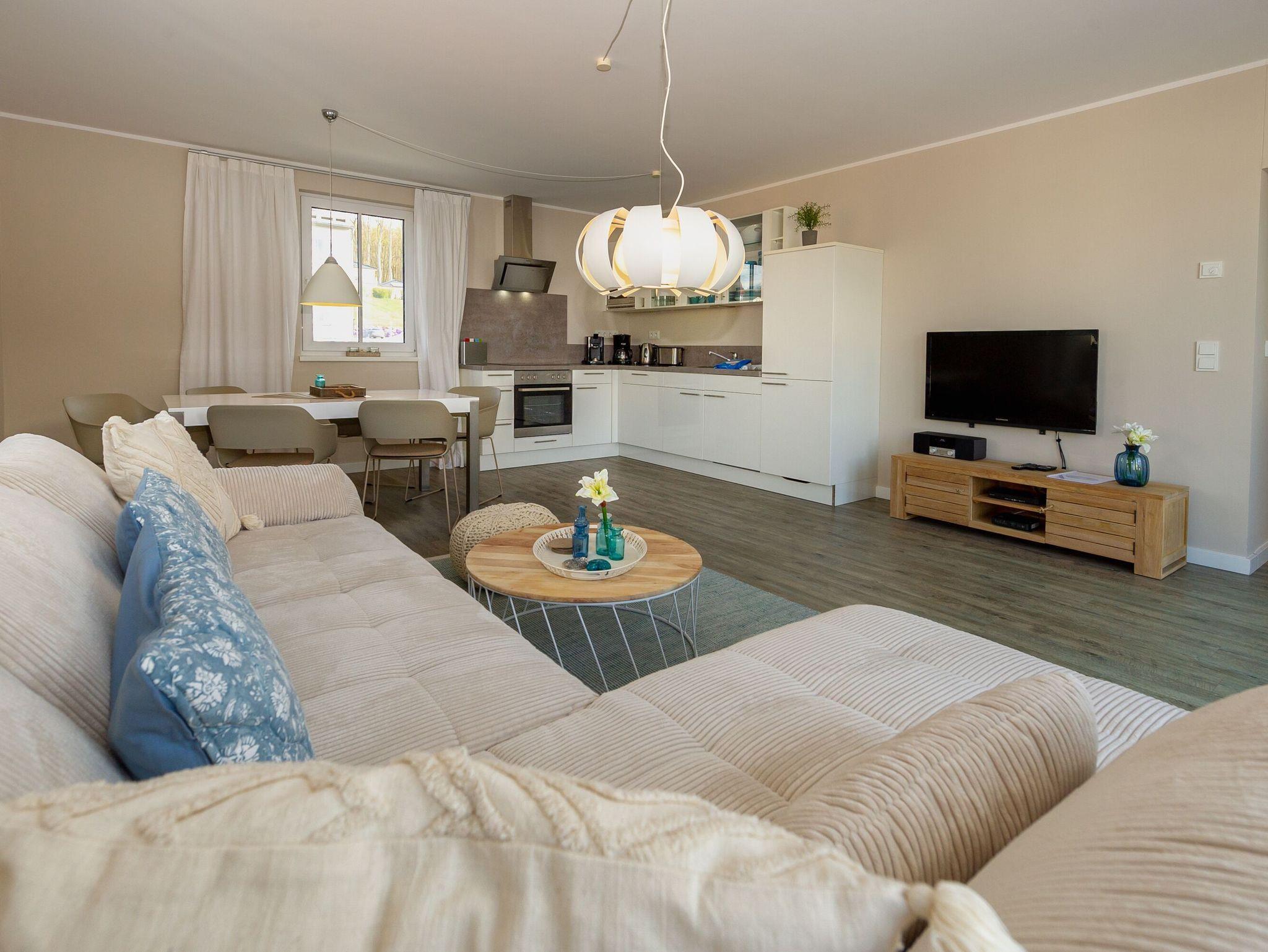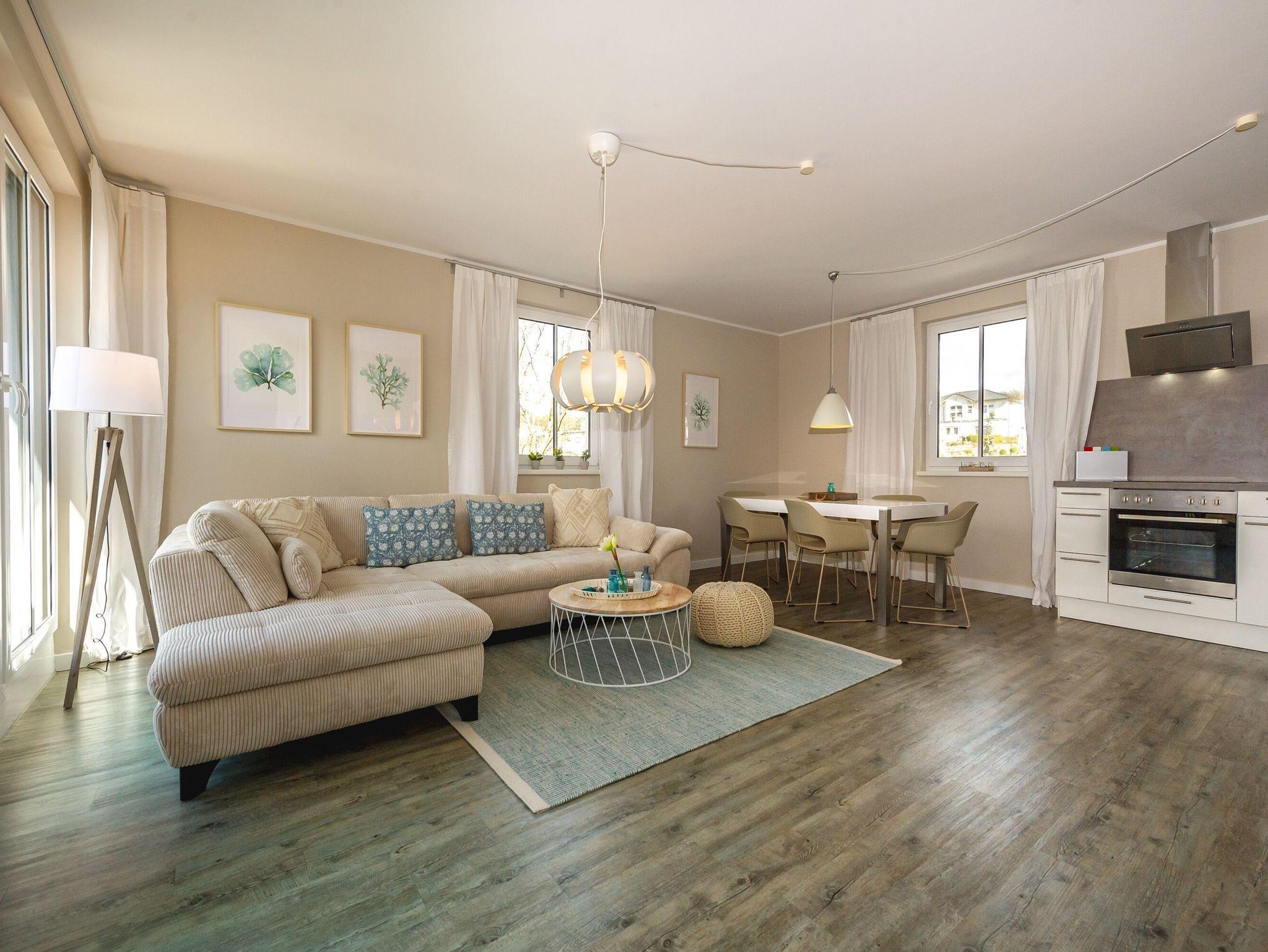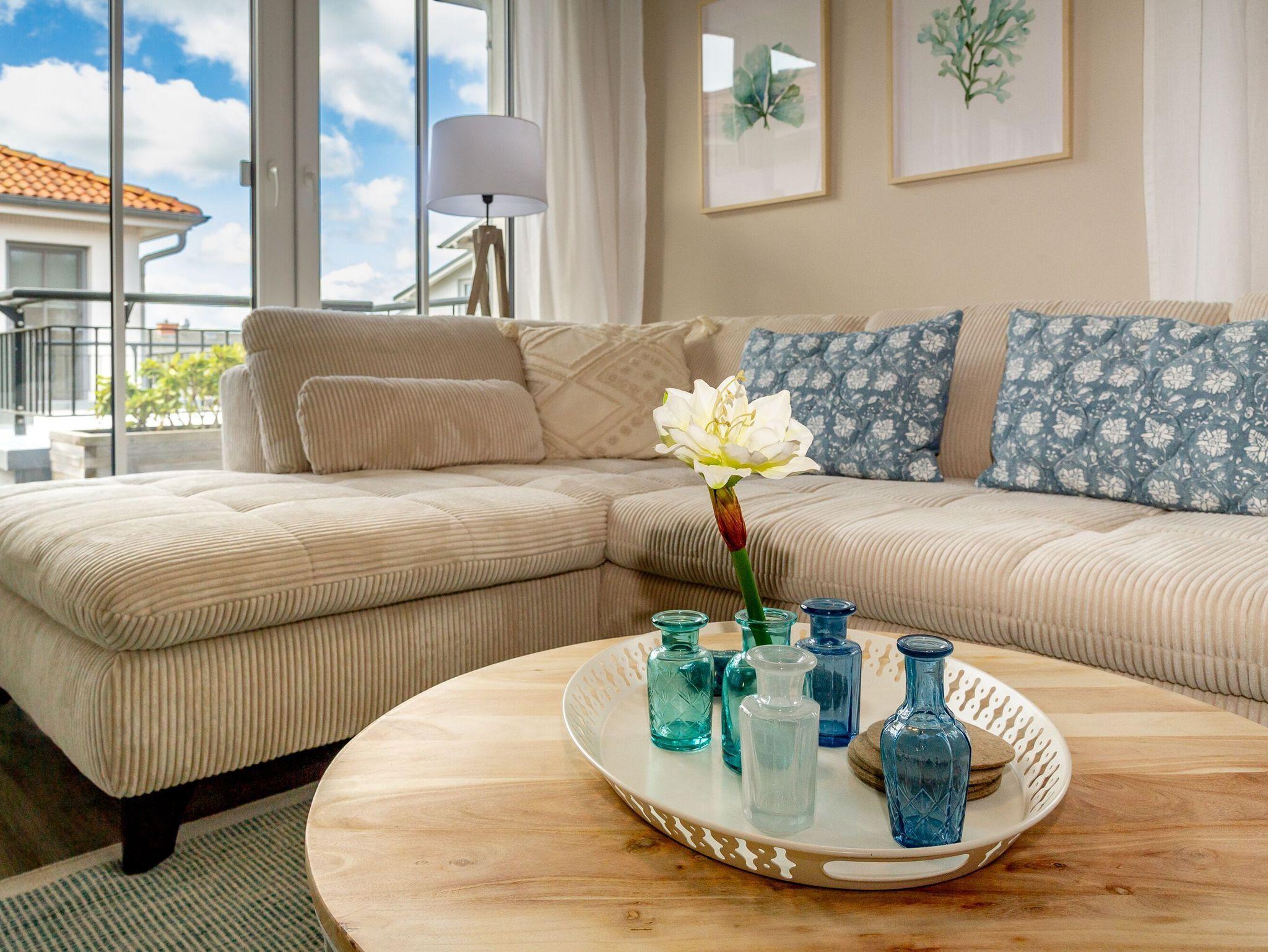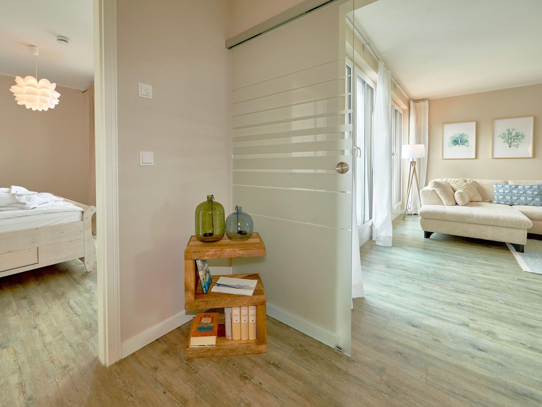 Ihr Appartement hat keine direkten Nachbarn und ist im weißen Landhausstil eingerichtet. Die technische Ausstattung mit flächendeckender Fußbodenheizung, großem Flachbild-TV, DVD-Player, Blu-Ray-Player, Stereoanlage und kostenfreiem W-LAN lässt keine Wünsche offen. Machen Sie es sich auf der herrlich gemütlichen Couch (Aufbettungsmöglichkeit für zwei Personen) bequem und genießen Sie das stilvolle Ambiente Ihres Zuhauses auf Zeit.