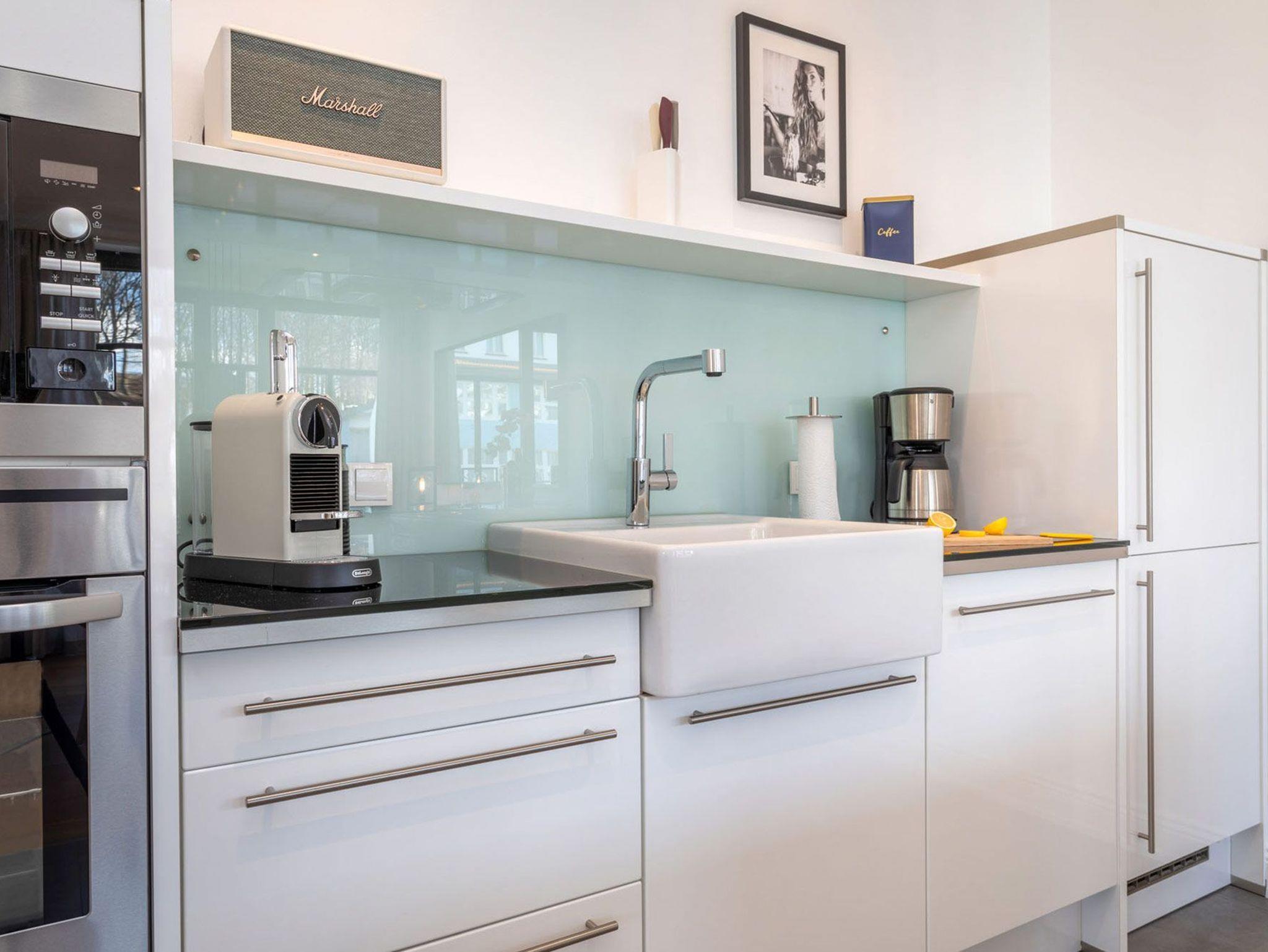 In Ihrem Urlaubsdomizil erwartet Sie ein stilvolles Ambiente durch hochwertige Möbel in exklusivem Design. Zum Wohlfühl-Erlebnis sorgt die flächendeckende Fußbodenheizung und eine wohnungseigene Sauna, die zum Verweilen an kalten Wintertagen einlädt. Die moderne Küchenzeile und -insel im kombinierten Wohn- und Esszimmer wurde mit hochwertigen Markengeräten und allem notwendigen Geschirr ausgestattet und lädt zum gemeinsamen Kochen ein. Hier bleiben keine Wünsche offen.
