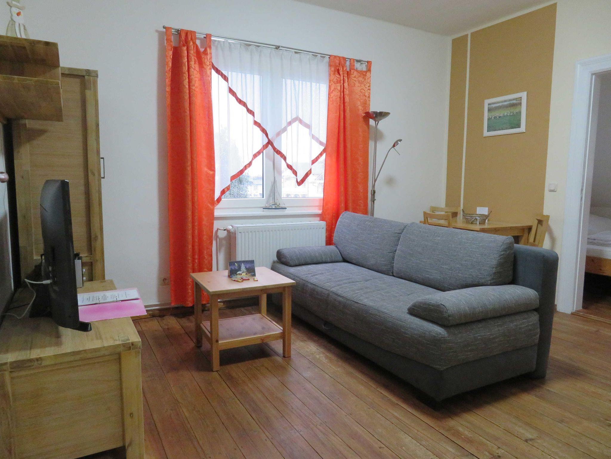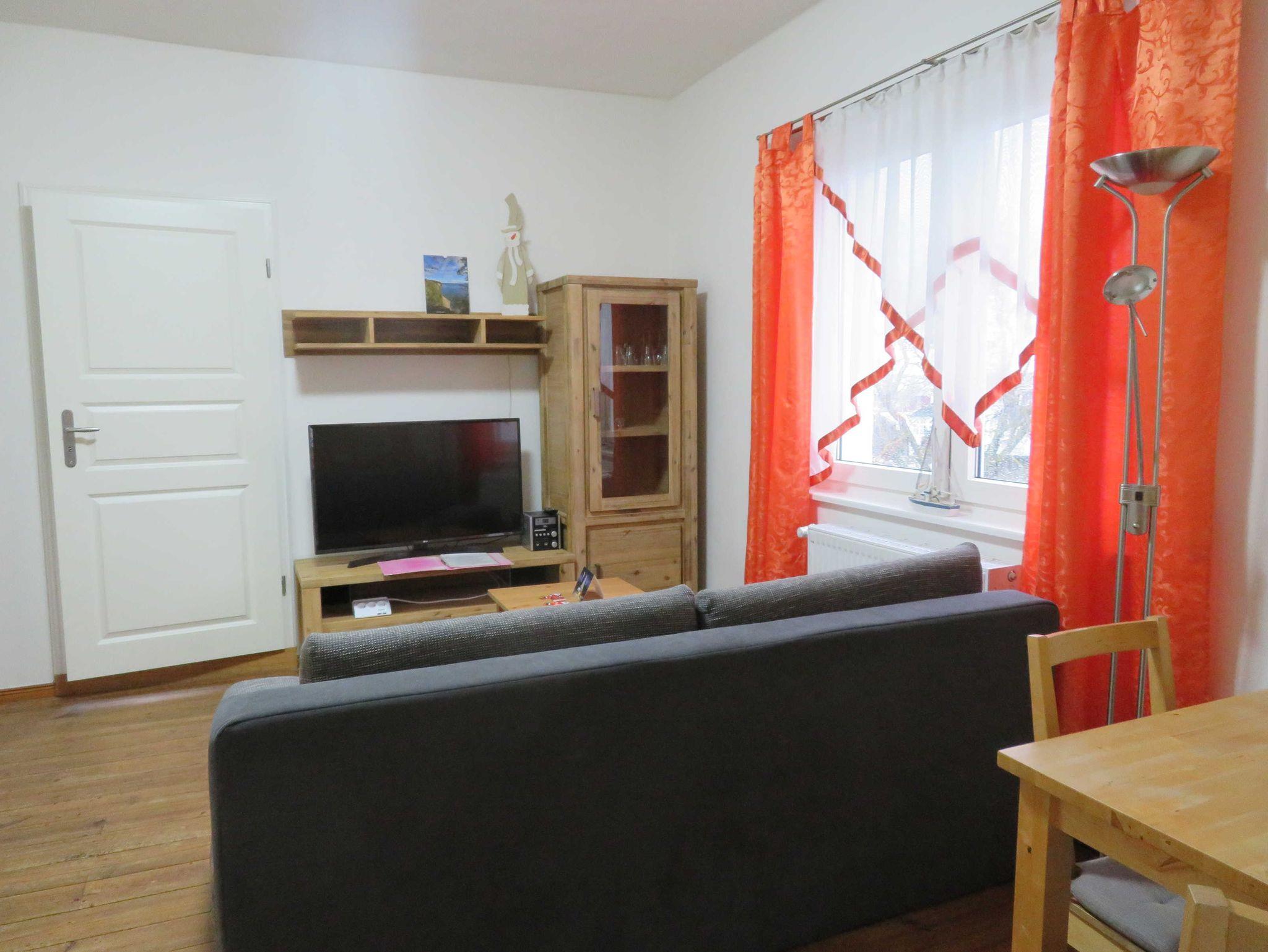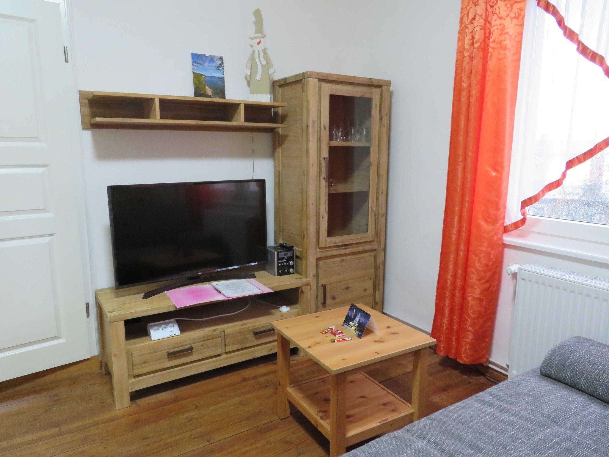 Hier handelt es sich um die kleine 2- Raum- Ferienwohnung Ummanz im Obergeschoss. Diese hat ein Schlafzimmer mit einem Doppelbett unter der Dachschräge und im Wohnzimmer ein Schlafsofa mit zwei weiteren Schlafplätzen. Im Wohnzimmer befindet sich die Küche mit Kühlschrank, Geschirrspülmaschine, Mikrowelle, Kaffeemaschine, Toaster und Wasserkocher. Die Ferienwohnung ist mit Sat- TV ausgestattet und hat einen Balkon, den Sie über den Flur erreichen können.