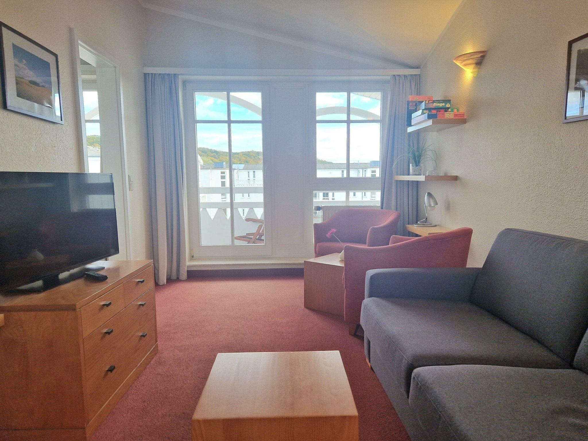 Nach einem erlebnisreichen Urlaubstag können Sie auf dem Balkon in Südostlage Platz nehmen. Der Ausblick und die Sitzgruppe sorgen hier für ein wunderbares Urlaubsgefühl. Im Nichtraucher-Apartment sind keine Haustiere gestattet.