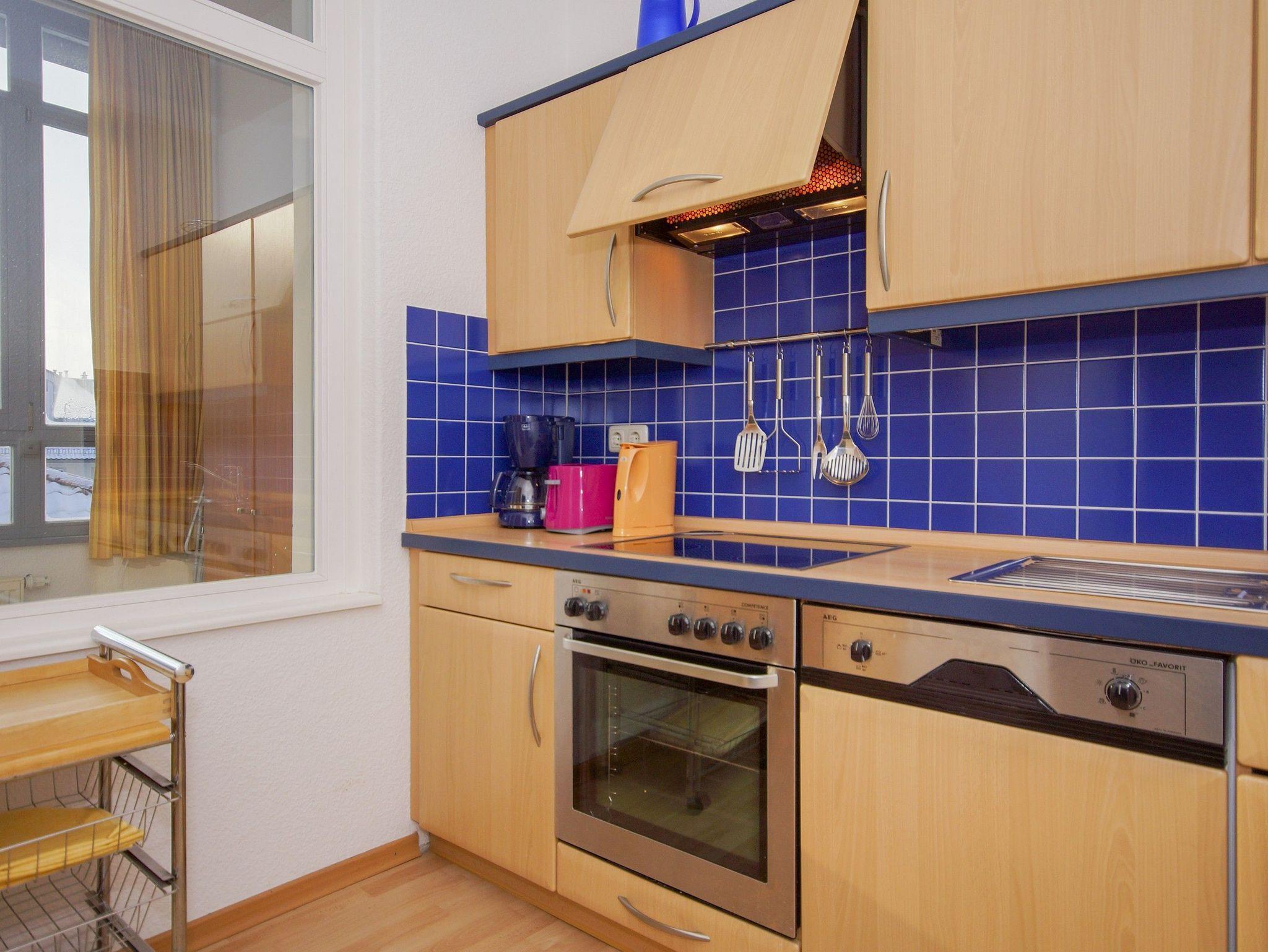 Die Küchenausstattung lässt keine Wünsche offen - neben einem Herd, einem Geschirrspüler und einem Kühlschrank bieten auch diverse Küchenutensilien und Kleingeräte ihren Dienst an.