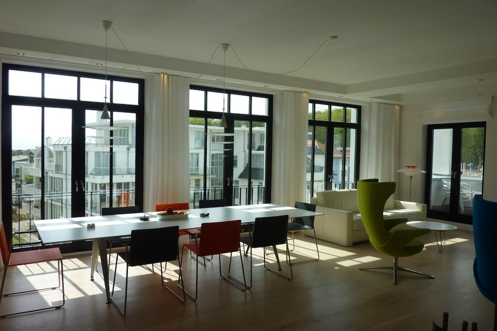 In diesem Apartment residieren Sie in der eleganten Villa Philine in 1. Reihe am Strand von Sellin gelegen. Vom 18 qm großen Balkon sowie von der großen Terrasse und dem Innenpool auf dem Dach des Nachbargebäudes haben Sie einen atemberaubenden Blick auf das Meer. Die Wohnung ist lichtdurchflutet in Süd/ Westausrichtung gelegen mit liebevoll gestalteten Details und ausgesuchten Materialien hochwertig ausgestattet. Ihr eigener Kamin, Aufzug, eine Tiefgarage und auch ein Außenpool inmitten einer Dünenlandschaft werden Ihre Ansprüche erfüllen. Die Wohnung ist komplett mit Designmöbel, -küche und -lampen versehen. In jedem Zimmer haben Sie TV, im Wohnzimmer zusätzlich eine Entertainment Station mit Spielekonsole, DVD/CD Player, Radio etc.