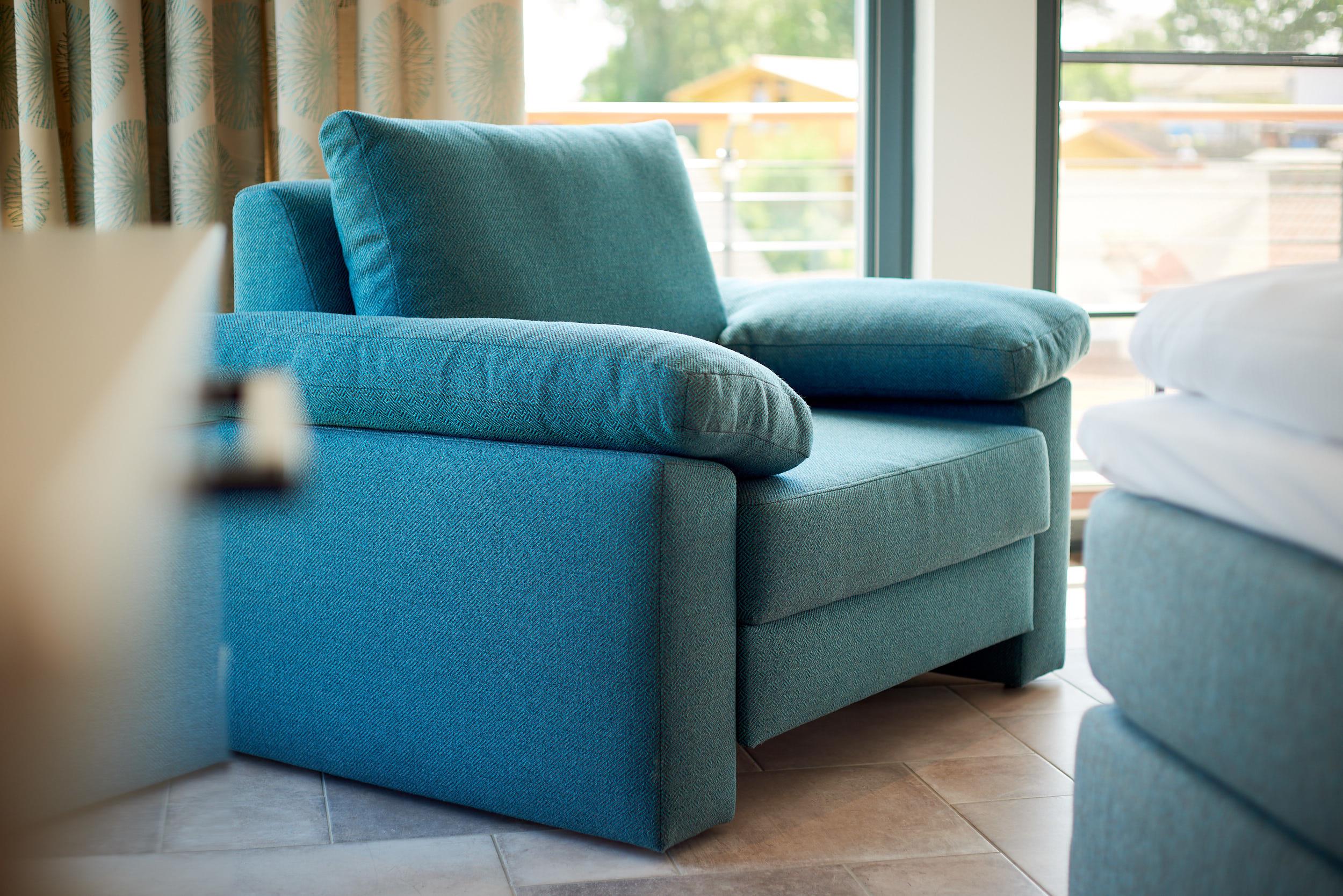 Wohnzimmer: Große gemütliche Couch, 2 Sessel, Couchtisch, Sideboard, Flachbildschirm,