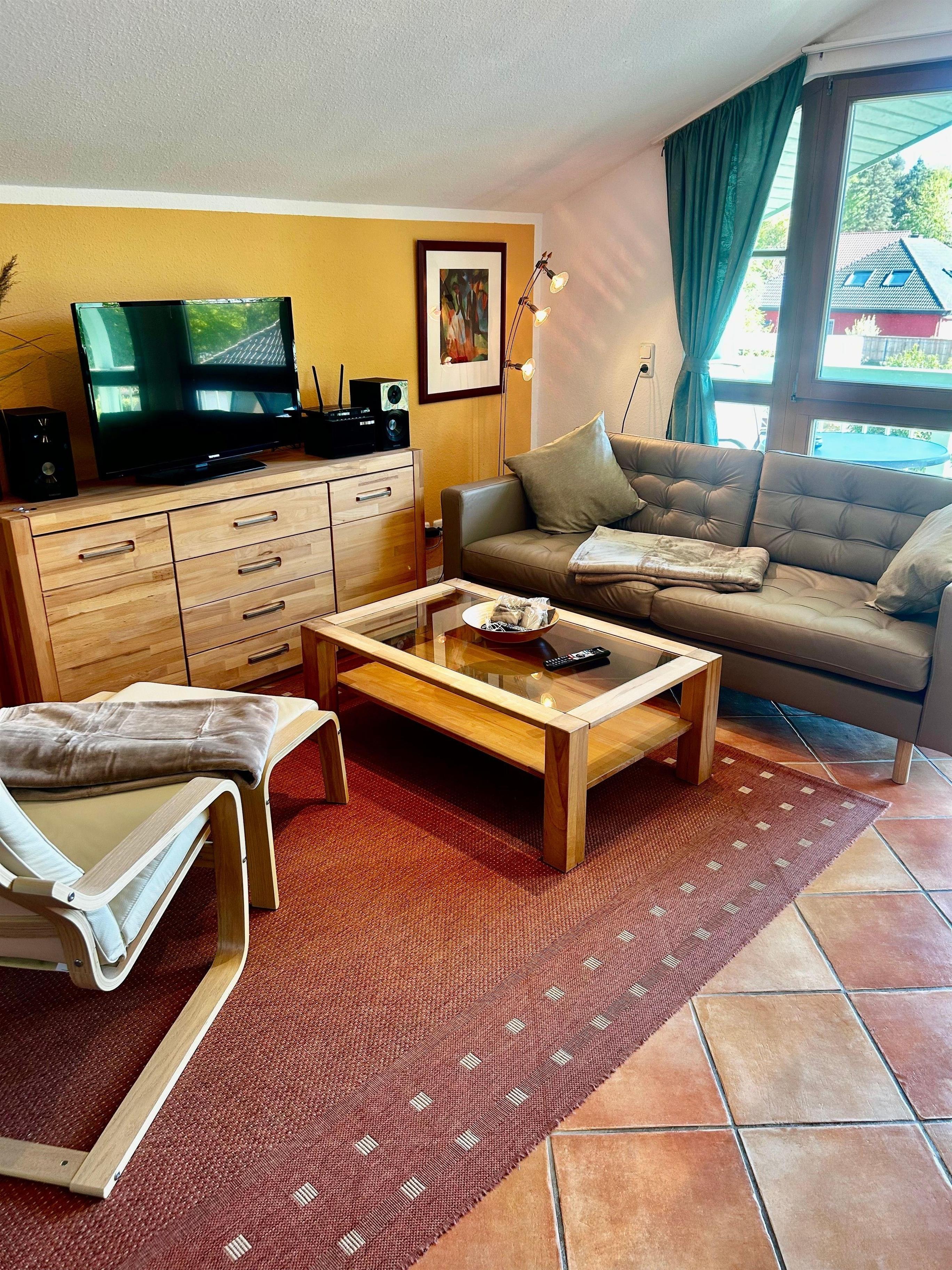Zur Ausstattung gehören neben der komplett eingerichteten Einbauküche (Spülmaschine u. Mikrowelle) selbstverständlich auch ein Flachbildfernseher 32 zoll und eine Stereoanlage mit DVD-Player.
