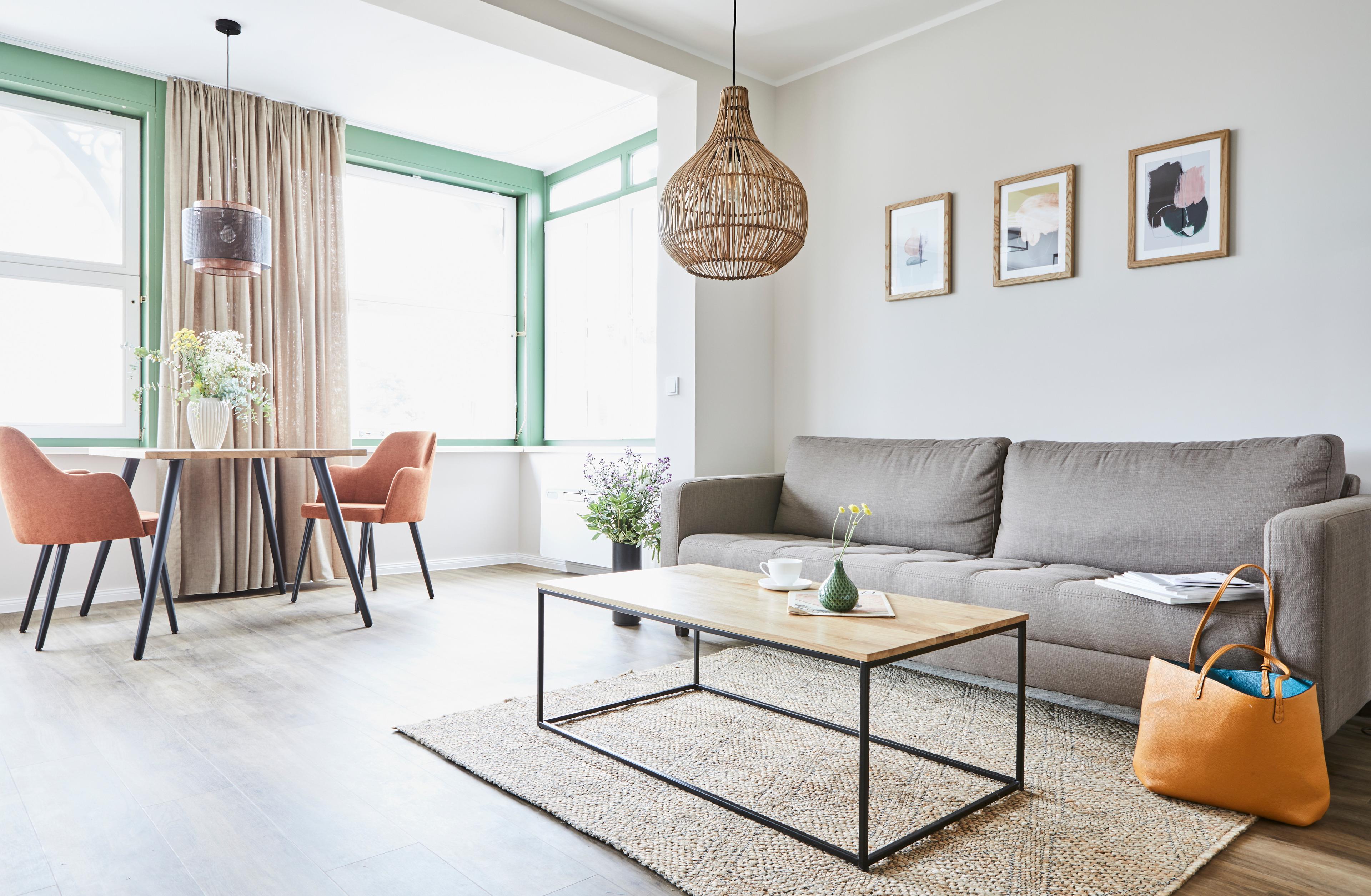 Die Wohnung verfügt über einen großen Wohnraum mit integrierter, moderner Küchenzeile und einem separaten Schlafzimmer. Das Badezimmer mit großzügiger Dusche besticht durch moderne Designelemente. Die Wohnung verfügt zusätzlich über eine Klimaanlage.