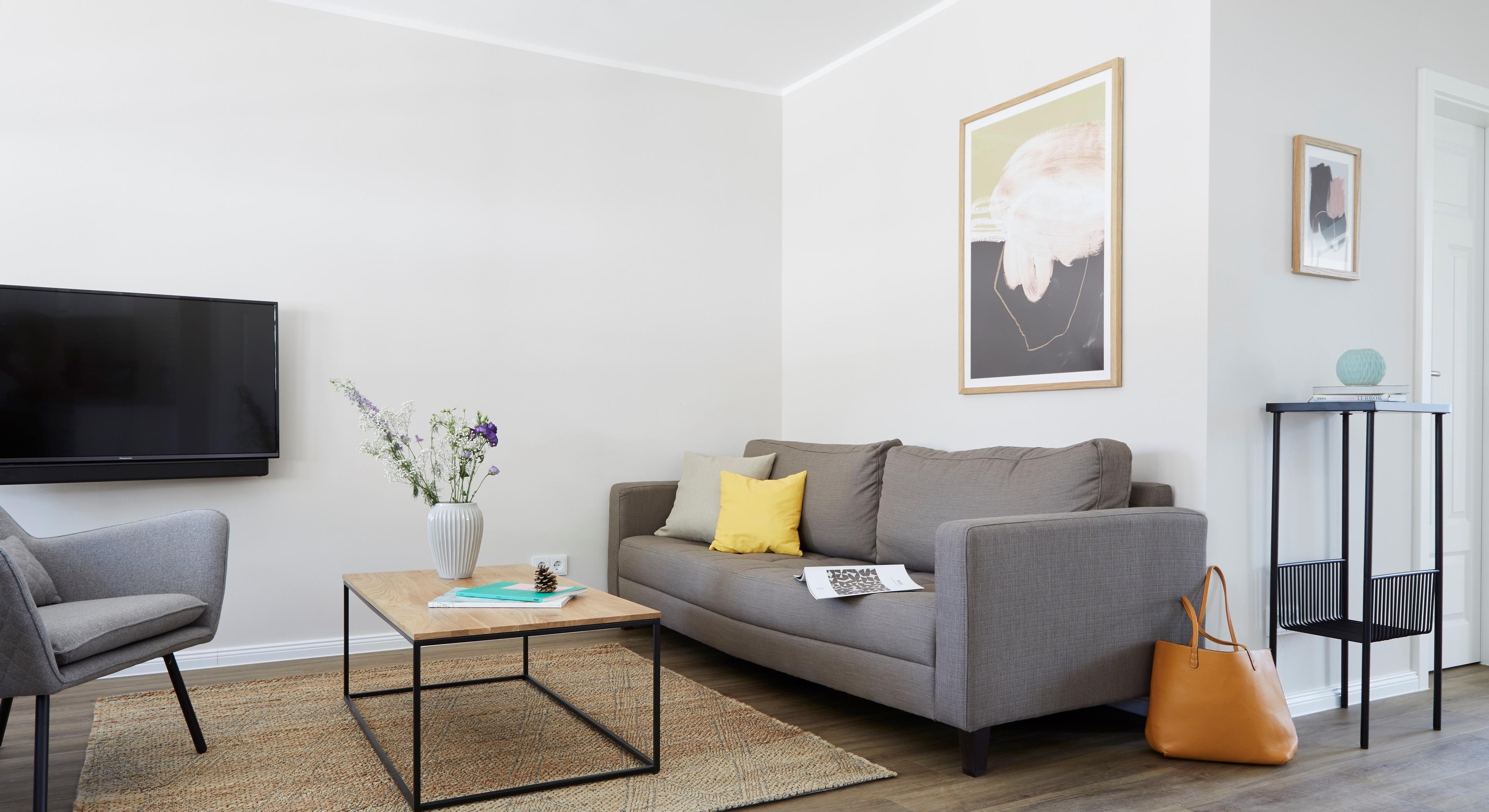 Das Wohnzimmer ist mit einem modernen Flachbildschirm und HD-TV-Satellitenanlage ausgestattet. WLAN steht Ihnen kostenlos zur Verfügung.