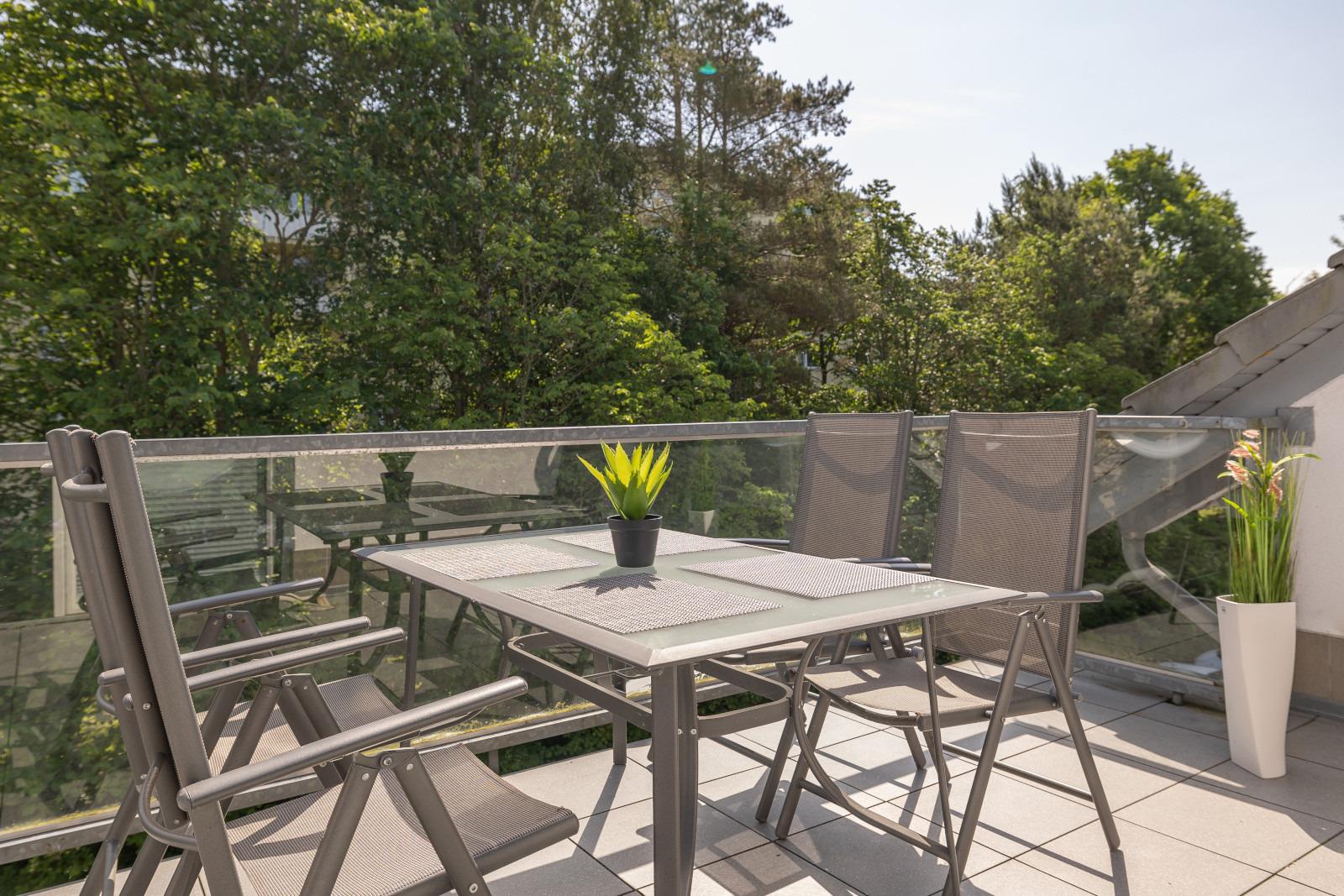 Von der sonnigen Dachterrasse aus genießen Sie die Abendsonne bei einem Glas Wein oder einer Tasse Tee. Auch ein Parkplatz und ein Grillplatz sind direkt am Haus verfügbar.