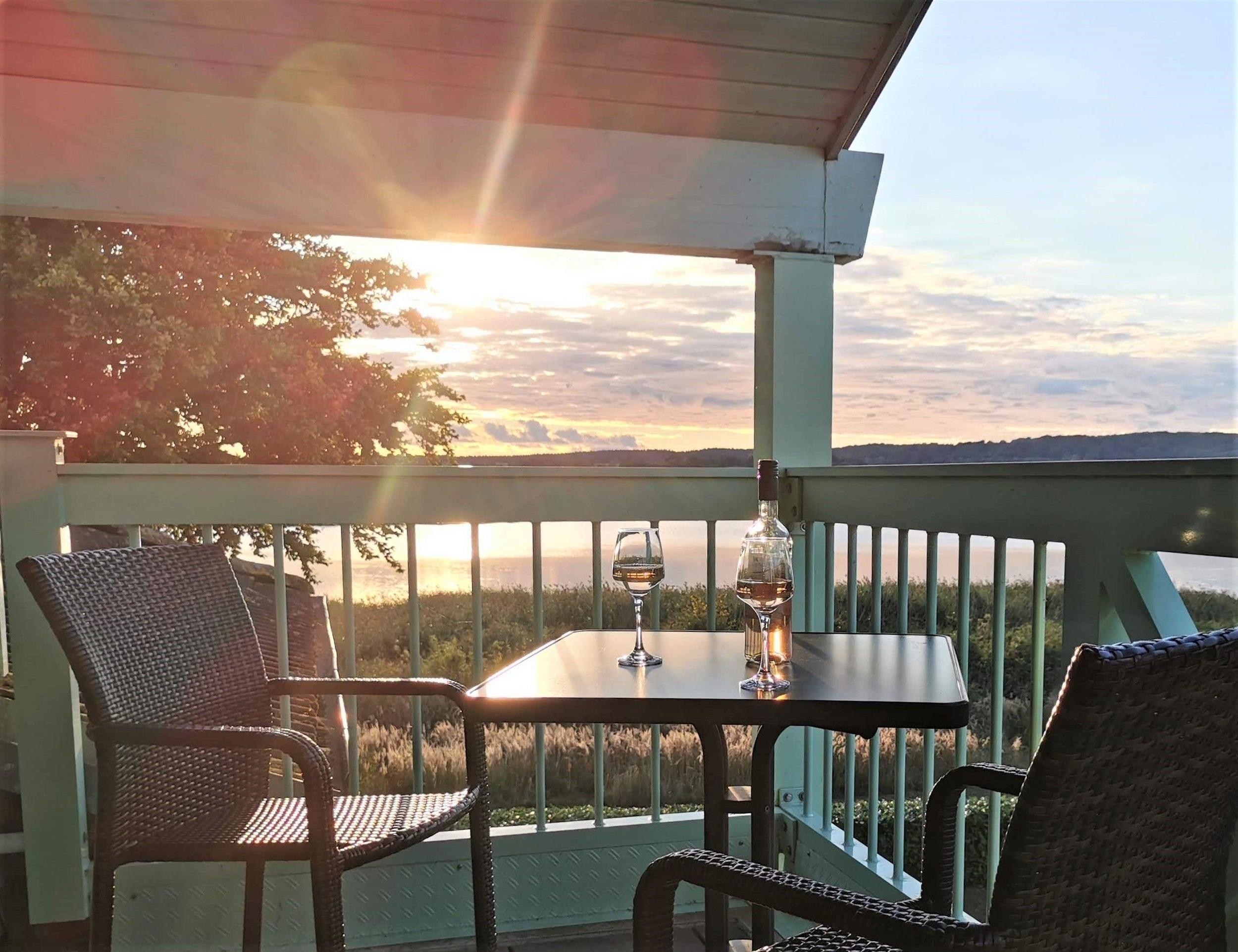 Vom Balkon haben Sie einen herrlichen Blick auf den Neuensiener See und auf das Jagdschloss Granitz. Geniessen Sie die wunderbaren Sonnenuntergänge.