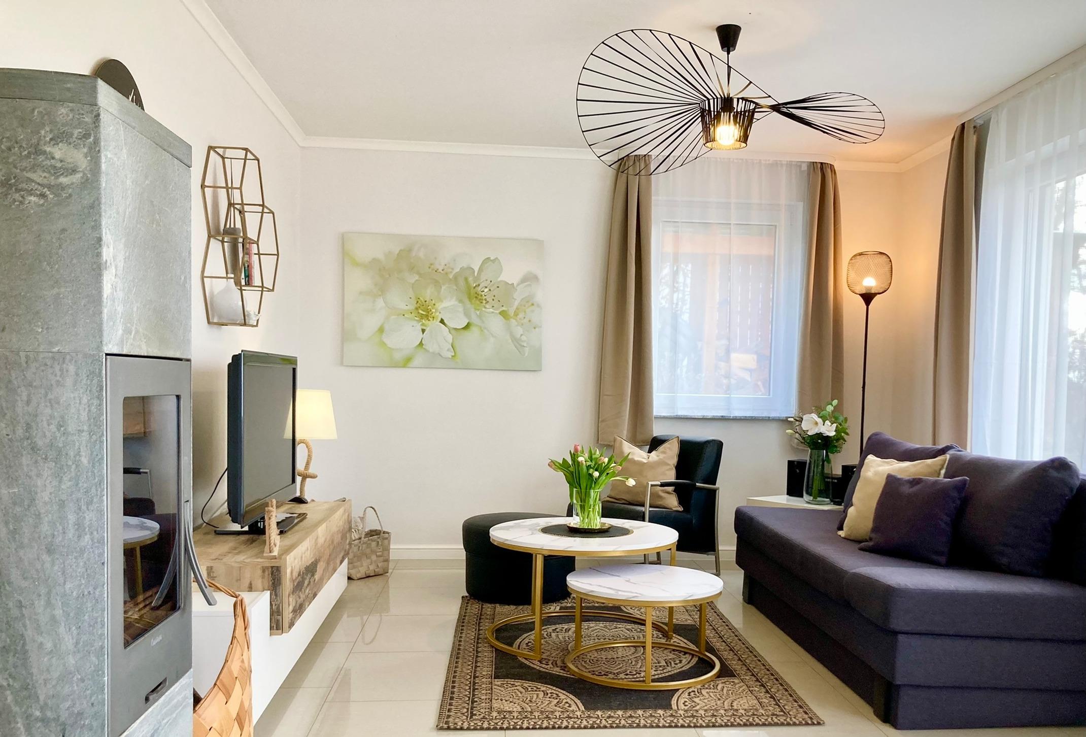 Das Apartment ist hell, hochwertig und freundlich gestaltet. Ein komfortabler Wohnbereich mit Kamin, ein modernes Badezimmer sowie eine voll ausgestattete Küche schaffen eine Wohlfühlatmosphäre, in der es dir an nichts fehlt. Kostenloses WLAN, Flachbild-TV und eine liebevolle Einrichtung sorgen für zusätzlichen Komfort.