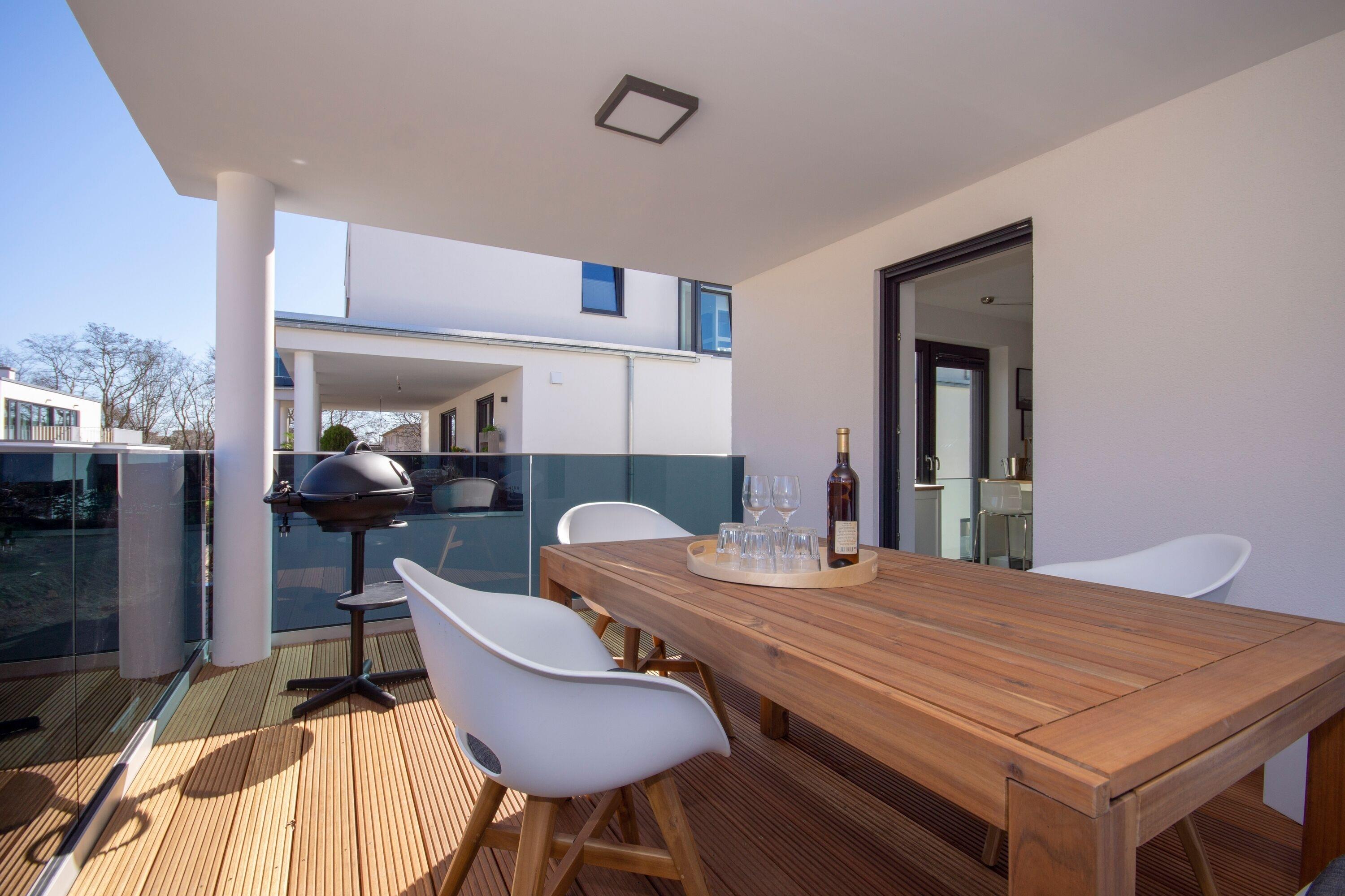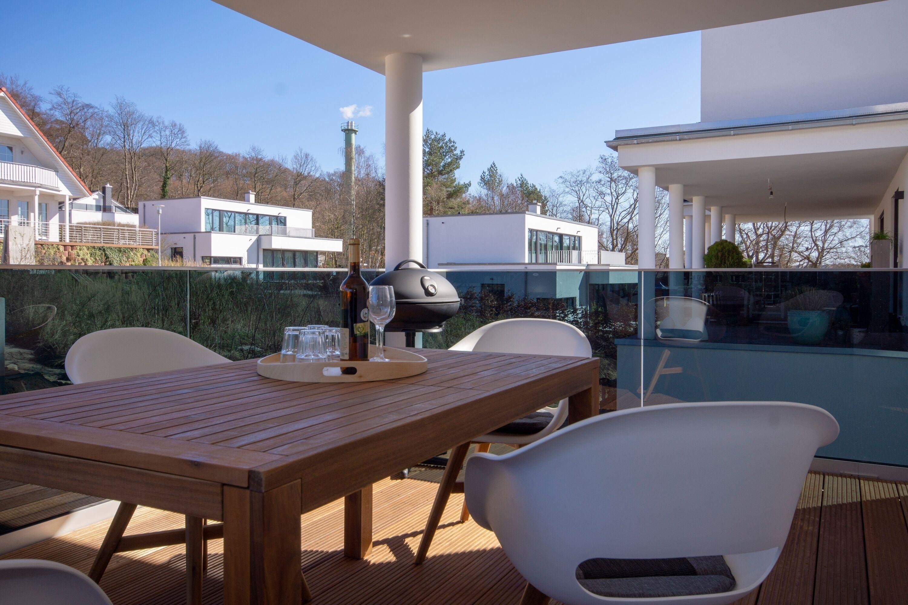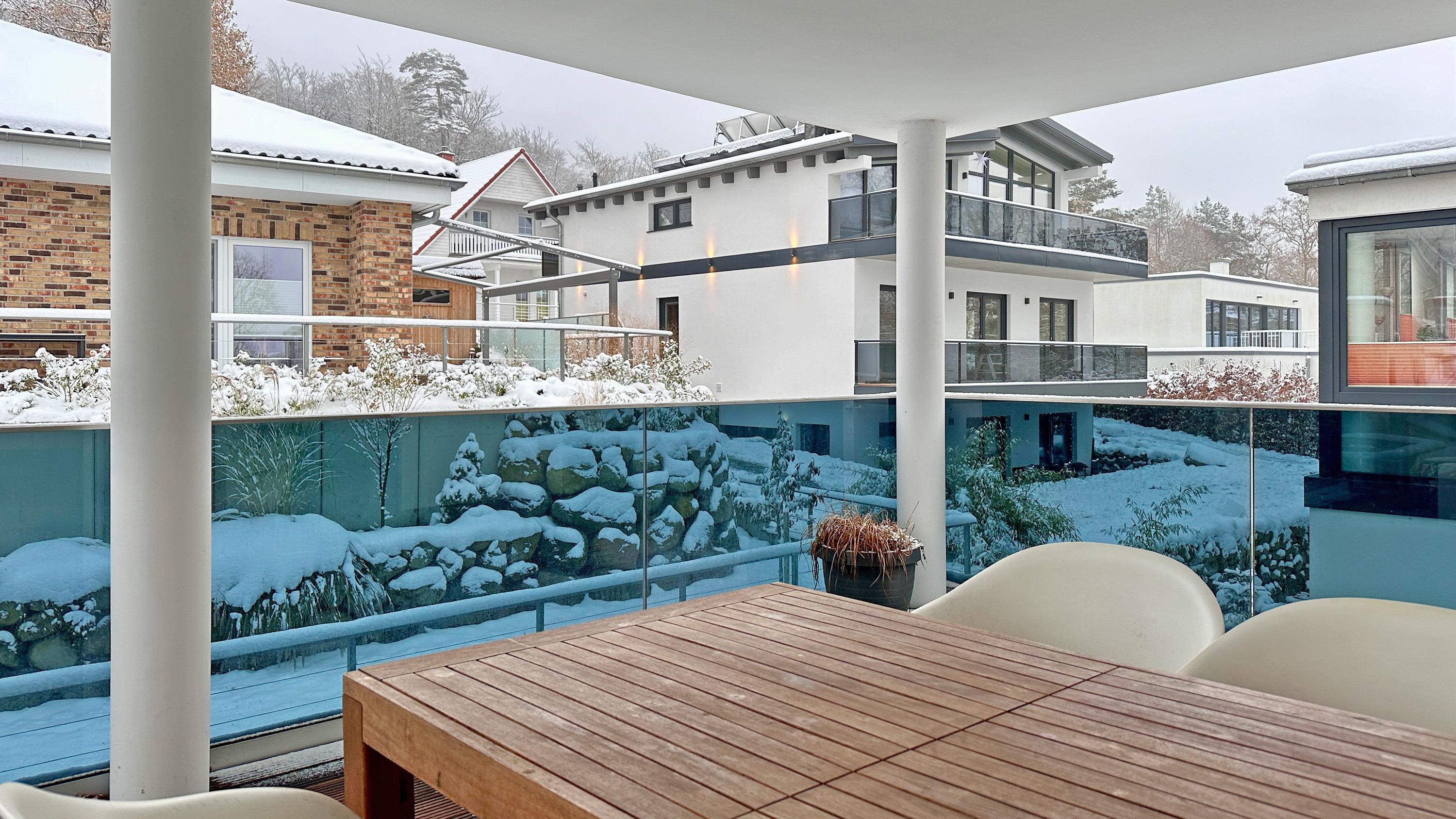 Der ca. 20 qm große Balkon mit komfortablen Gartenmöbeln ist überdacht und rundet das Gesamtangebot für die Ferienwohnung auf Rügen gekonnt ab. Der Tiefgaragenstellplatz zu dieser Unterkunft befindet sich direkt am Haus und wird Ihnen kostenfrei zur Verfügung gestellt.