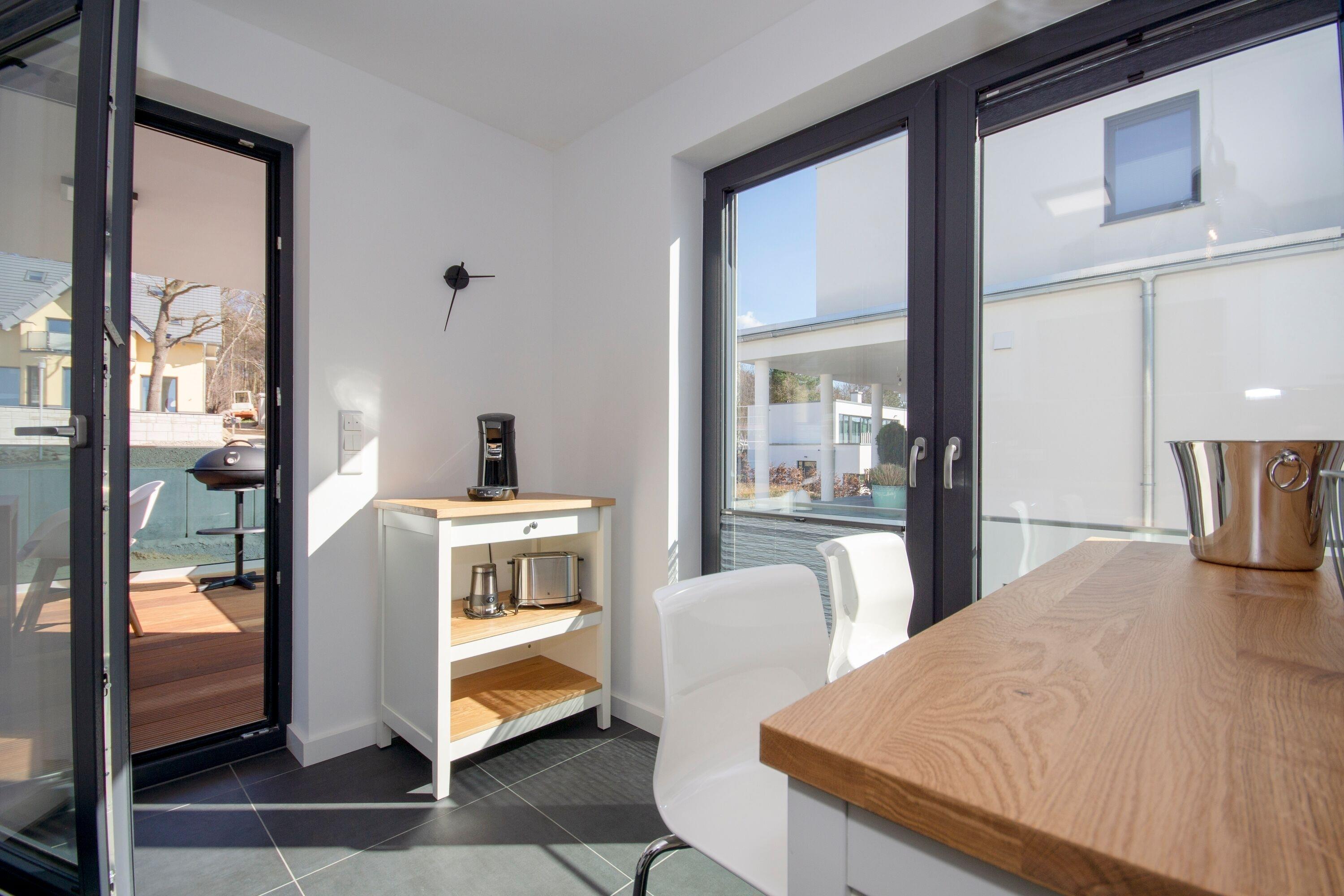 Hier steht für Sie ein Flachbild-TV mit kostenfreien Netflix-Zugang und eine namhafte Bluetooth-Soundanlage bereit. Die offene, hochwertige Küchenzeile lädt Freunde der kulinarischen Unabhängigkeit zu schönen Kochabenden ein. Außerdem finden Sie in der Küche viele exklusive Küchenutensilien wie zum Beispiel einen Senseo-Kaffeeautomaten, eine Moccamaster und eine Kaffeemahlmaschine.