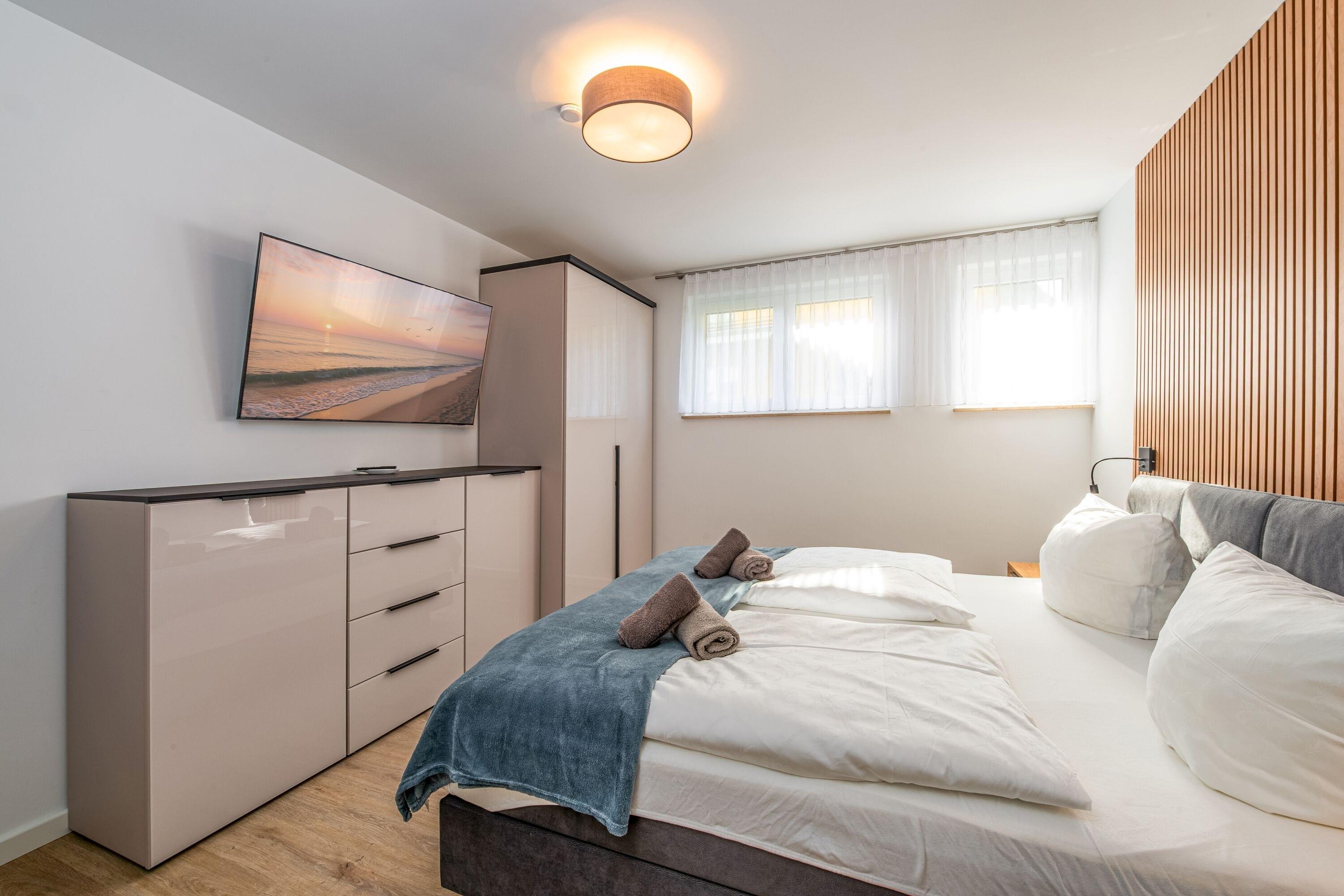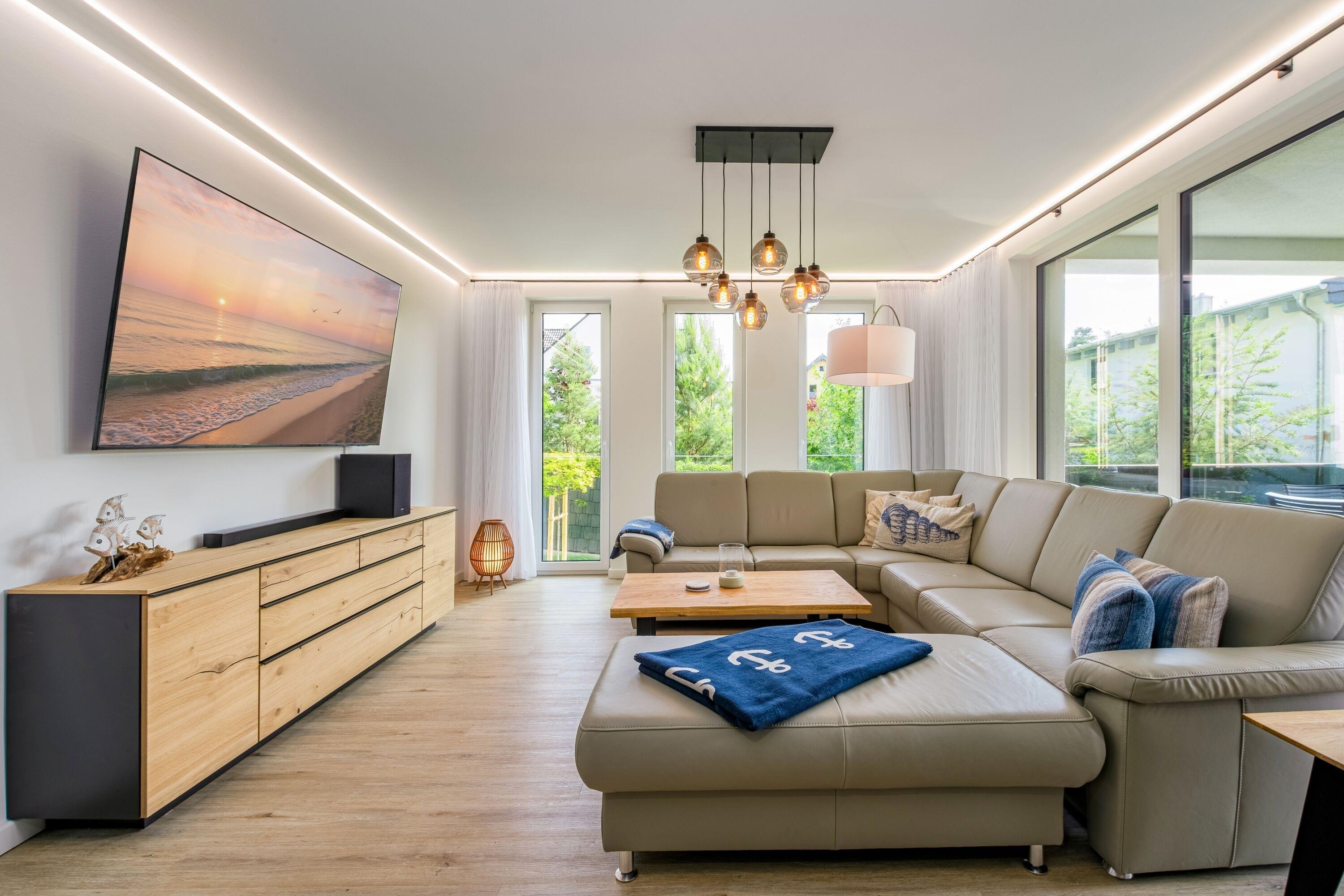 Erleben Sie unvergessliche Tage in der stilvollen Ferienwohnung 1 der Villa “Stella Maris” in Sellin! Mit großzügigen 173 m² bietet sie Platz für bis zu 8 Personen – perfekt für Familien oder Gruppen, die höchsten Komfort suchen. Die Wohnung verfügt über 4 geschmackvoll eingerichtete Schlafzimmer, von denen jedes mit einem eigenen Fernseher, einem modernen Badezimmer mit Dusche und einem Sonnenschutz ausgestattet ist. Ein Schlafzimmer befindet sich im Erdgeschoss – ideal für Gäste, die kurze Wege bevorzugen – während sich die drei weiteren Schlafzimmer sowie die private Sauna im ruhig gelegenen Untergeschoss befinden. Dies garantiert jedem Gast maximale Privatsphäre und höchsten Komfort.